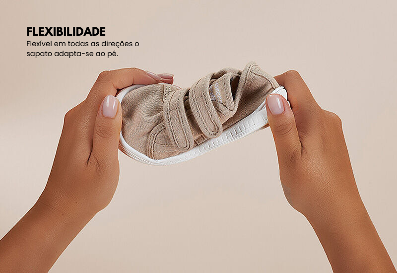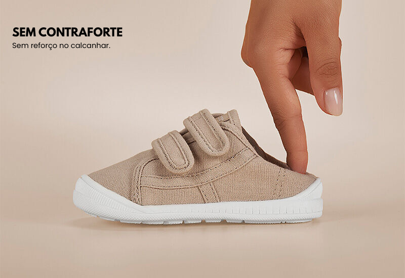 - Palmilha sem apoio plantar: para fazer o pé trabalhar, desenvolver a musculatura e, assim, criar o arco pé de forma natural.