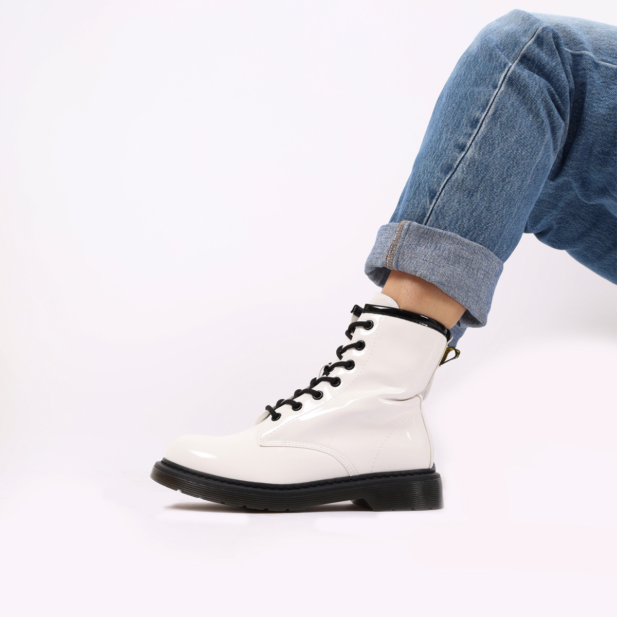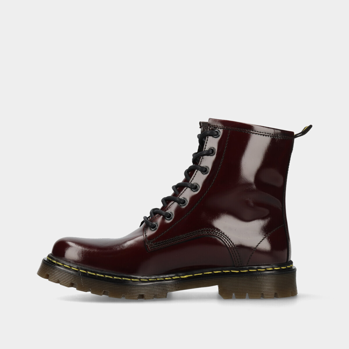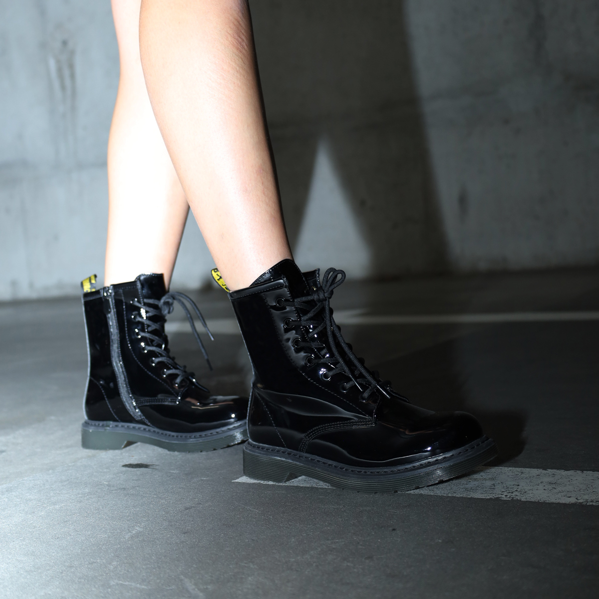 BOTA ESTILO MILITAR COM EFEITO VERNIZ DE CORDÃO E FECHO
