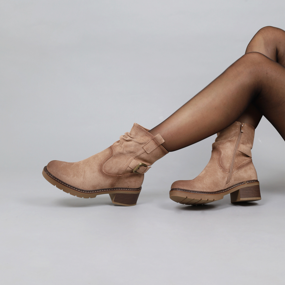 BOTIM DE CUNHA COM FIVELA DECORATIVA E FECHO