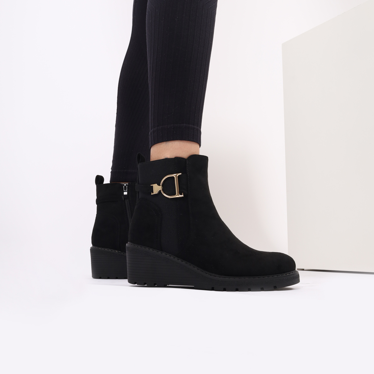BOTIM DE CUNHA COM FIVELA DECORATIVA E FECHO