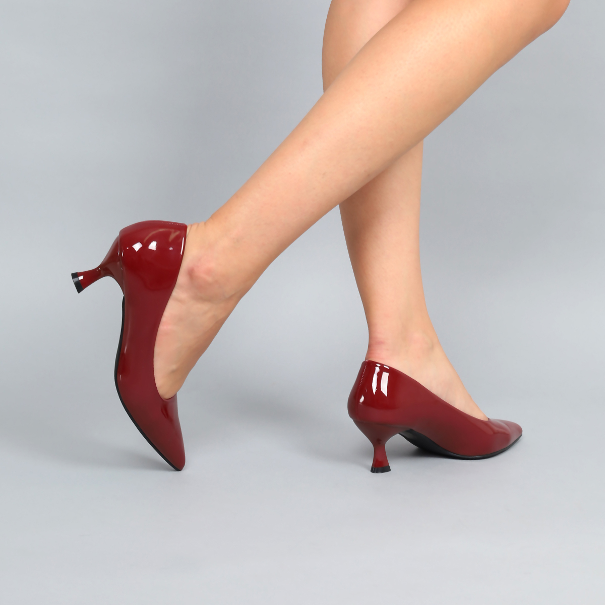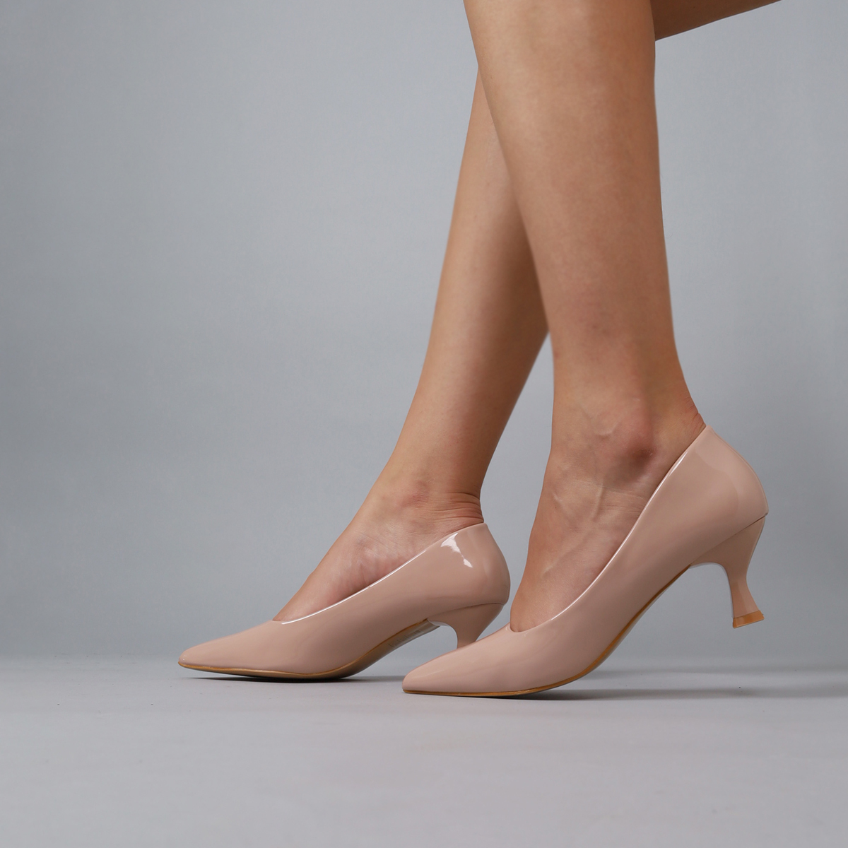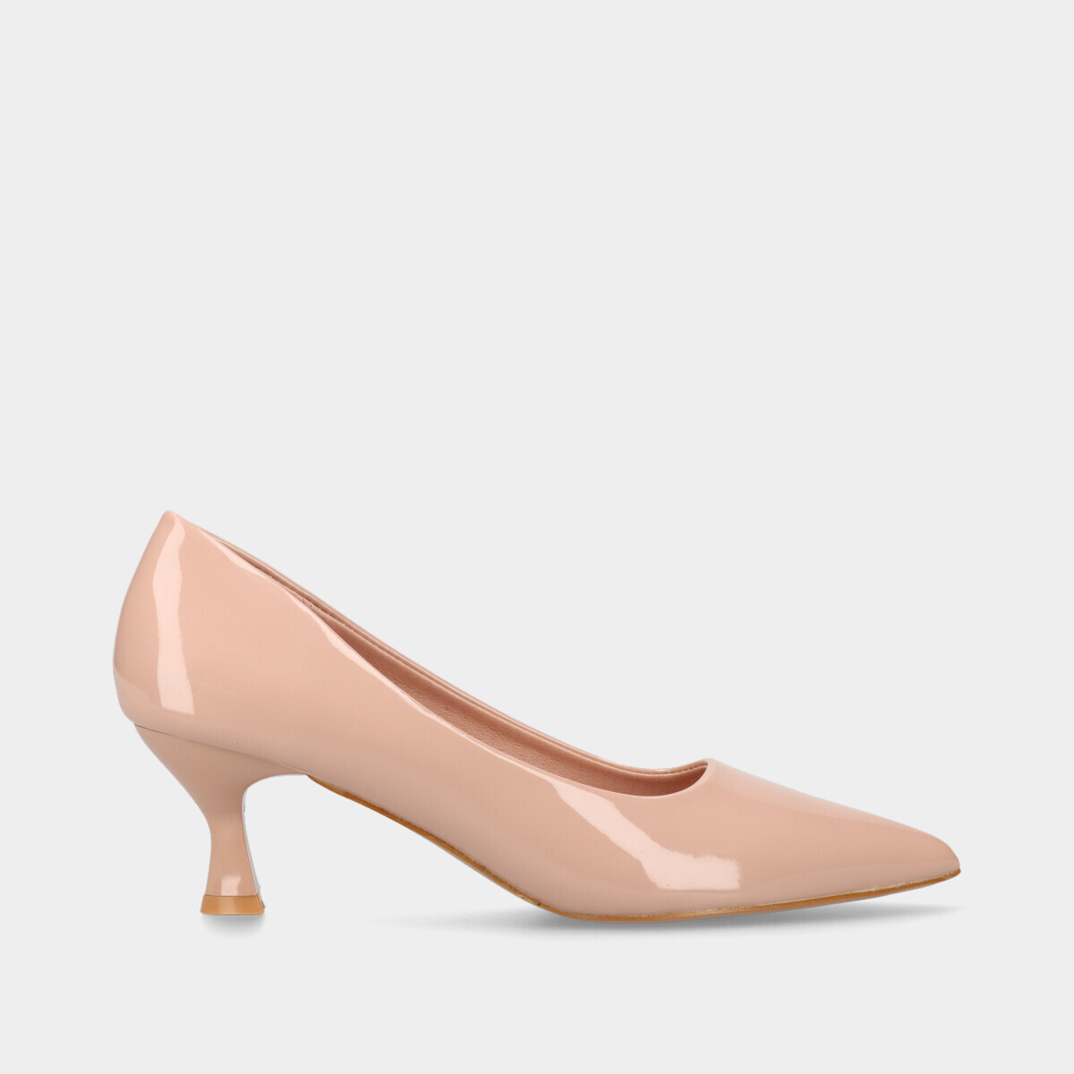 SAPATO DE SALTO COM EFEITO VERNIZ E APLICAÇÃO
