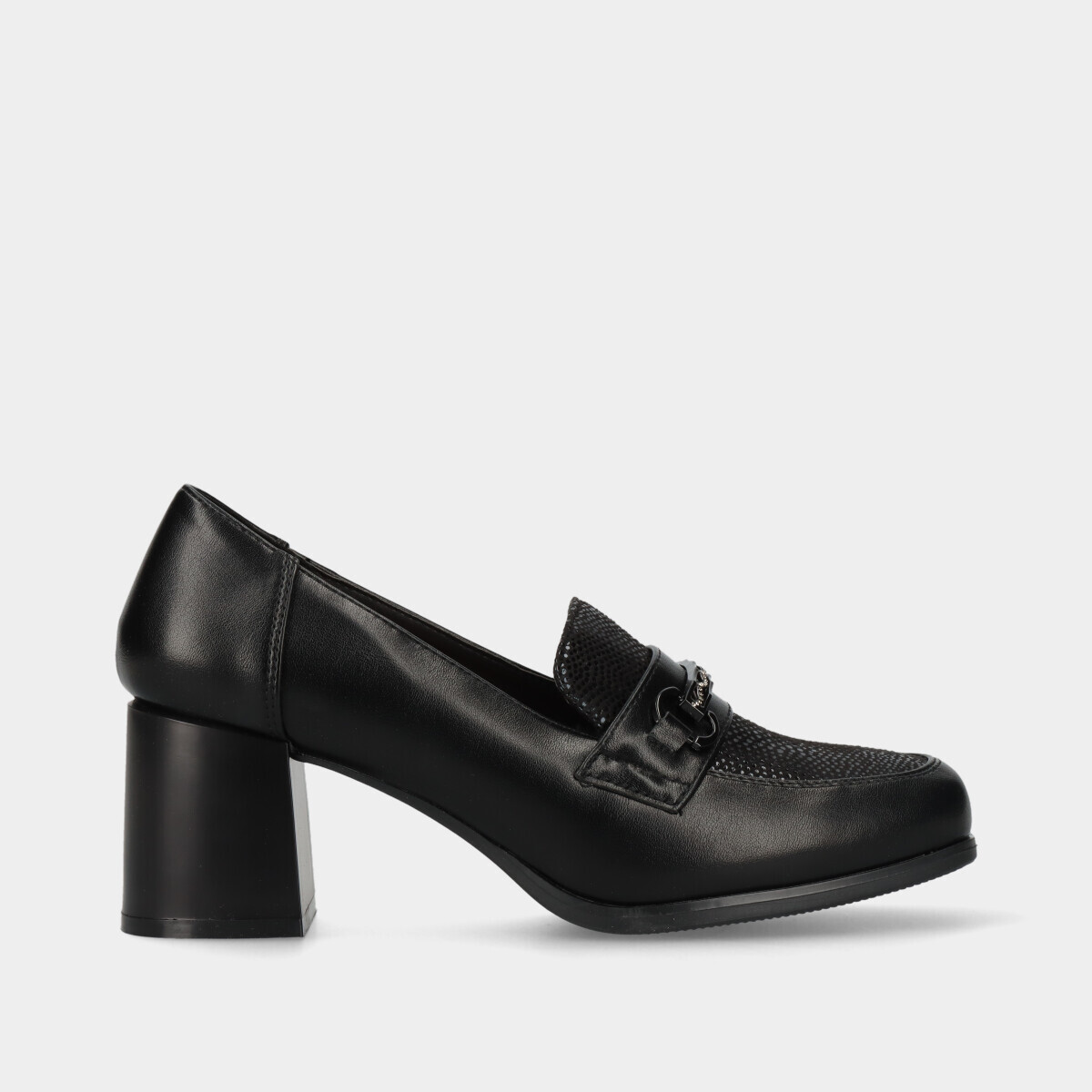 SAPATO DE SALTO COM EFEITO PELE E FIVELA