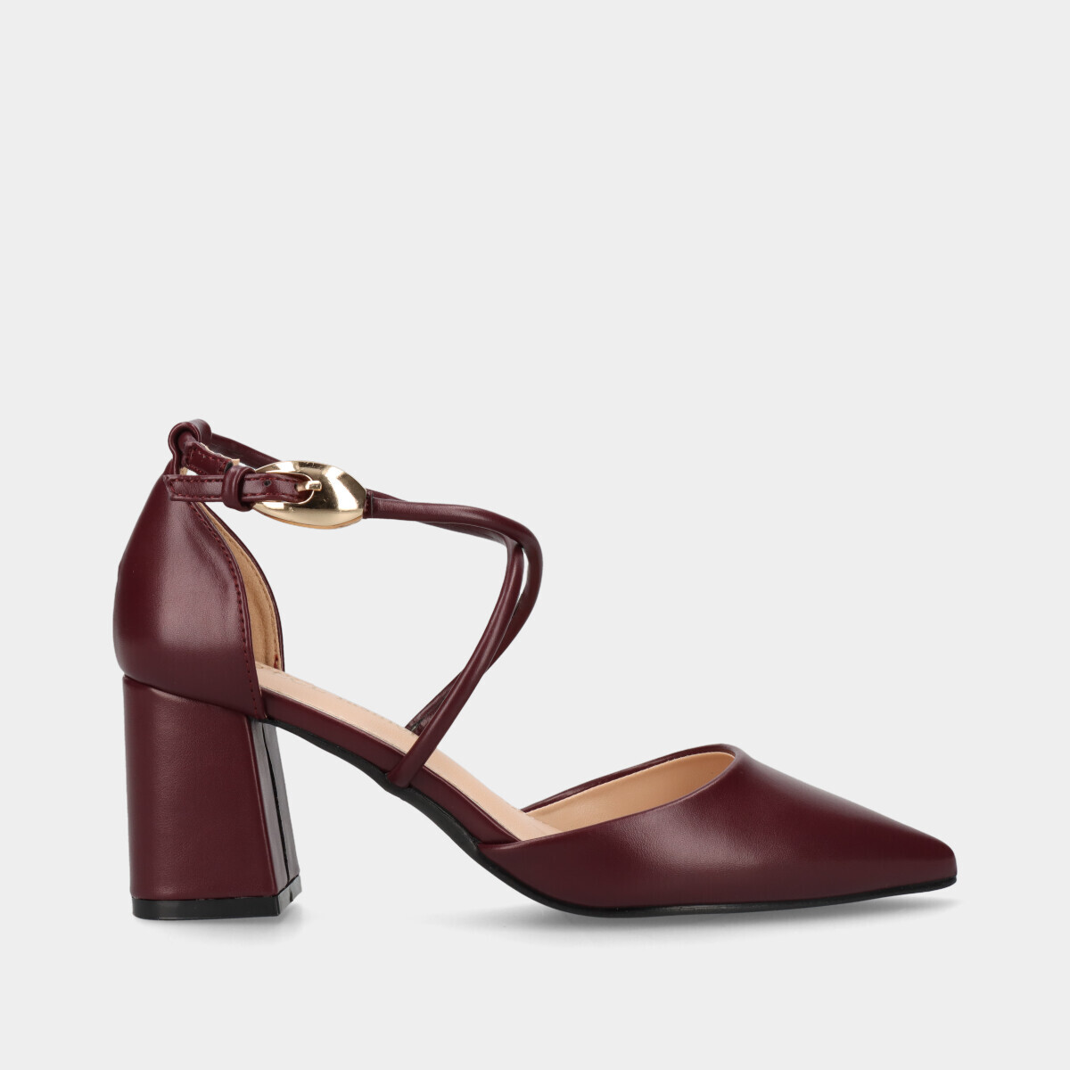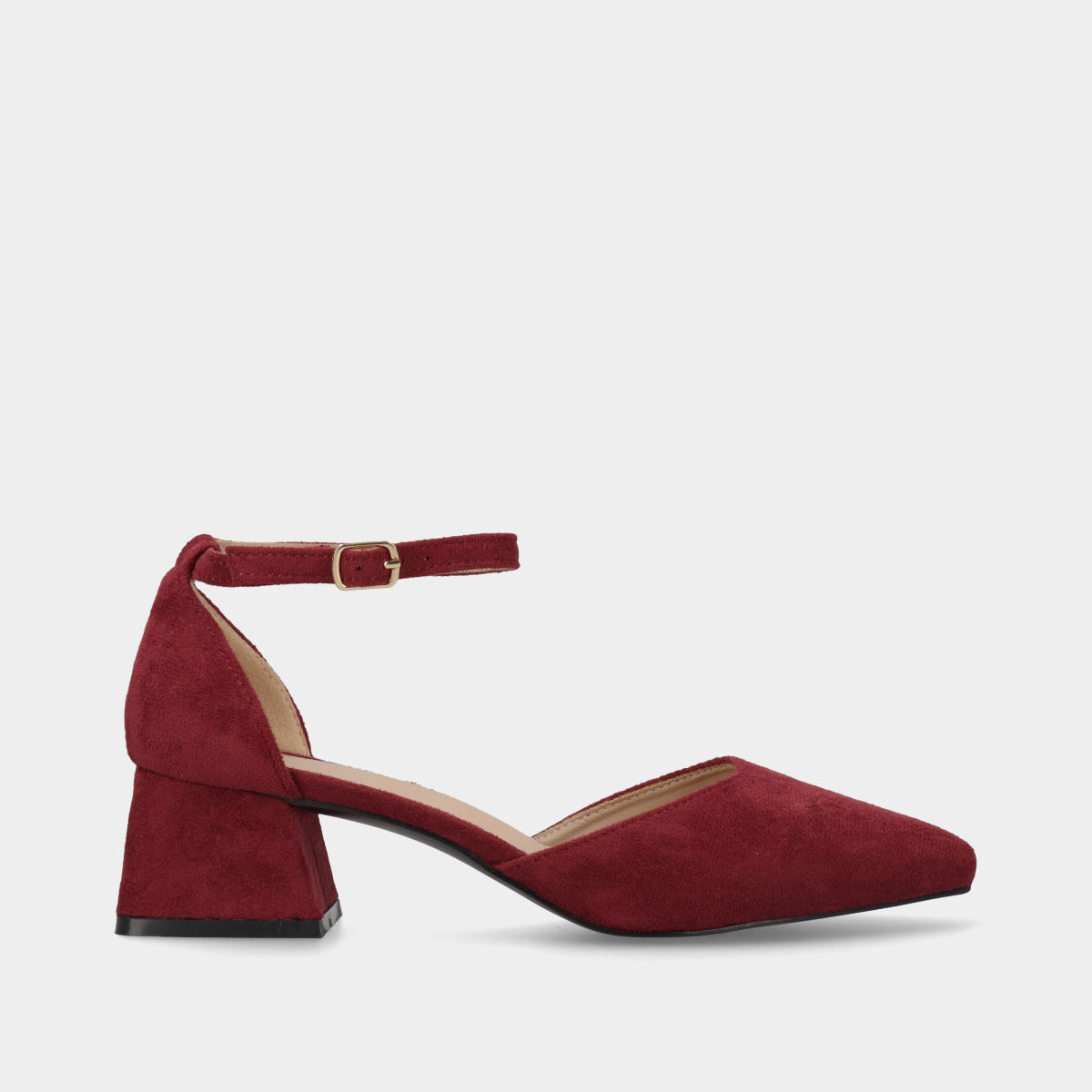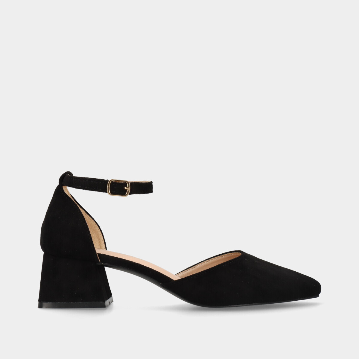 SAPATO DE SALTO COM EFEITO CAMURÇA E FIVELA