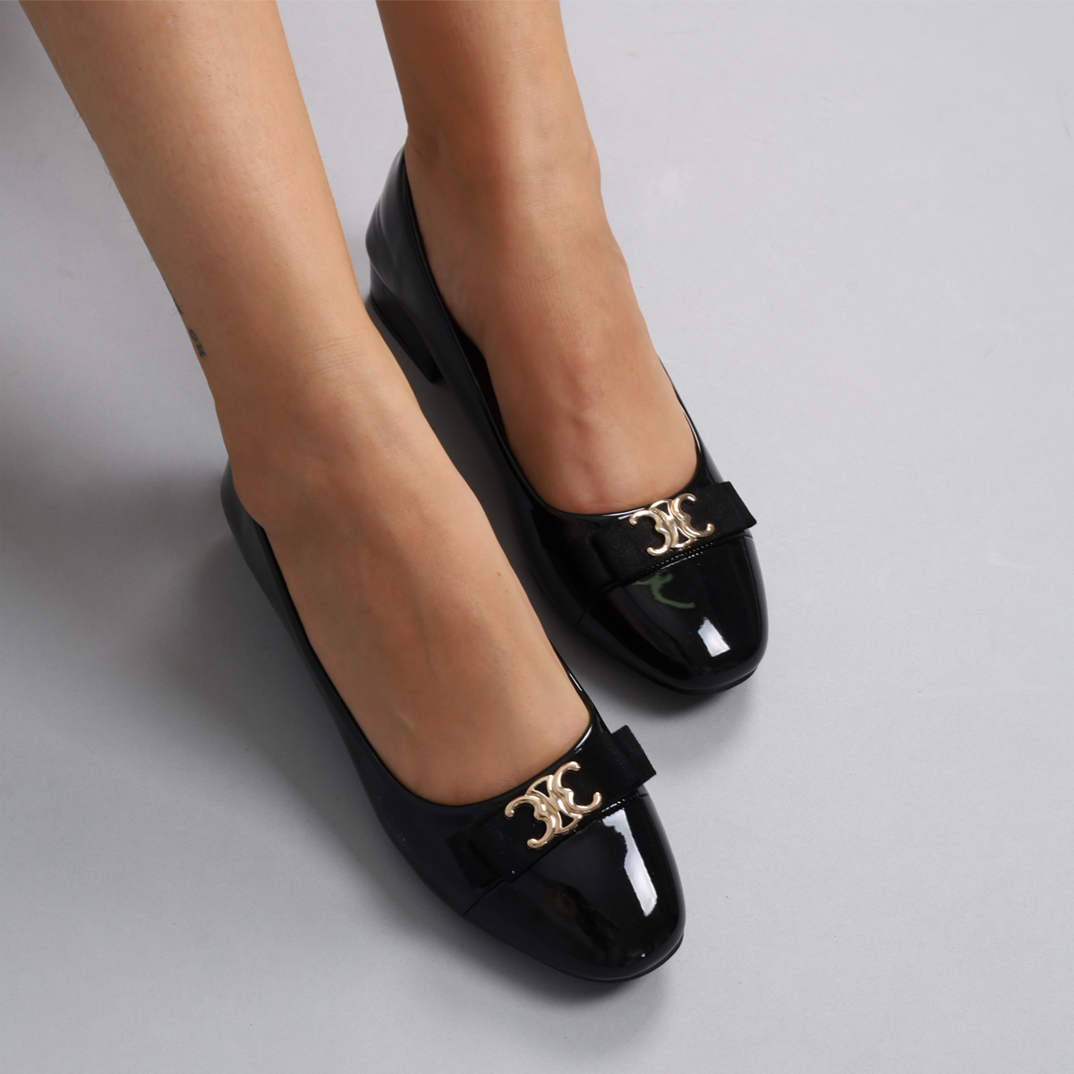 SAPATO COM EFEITO VERNIZ E APLICAÇÃO DE LAÇO