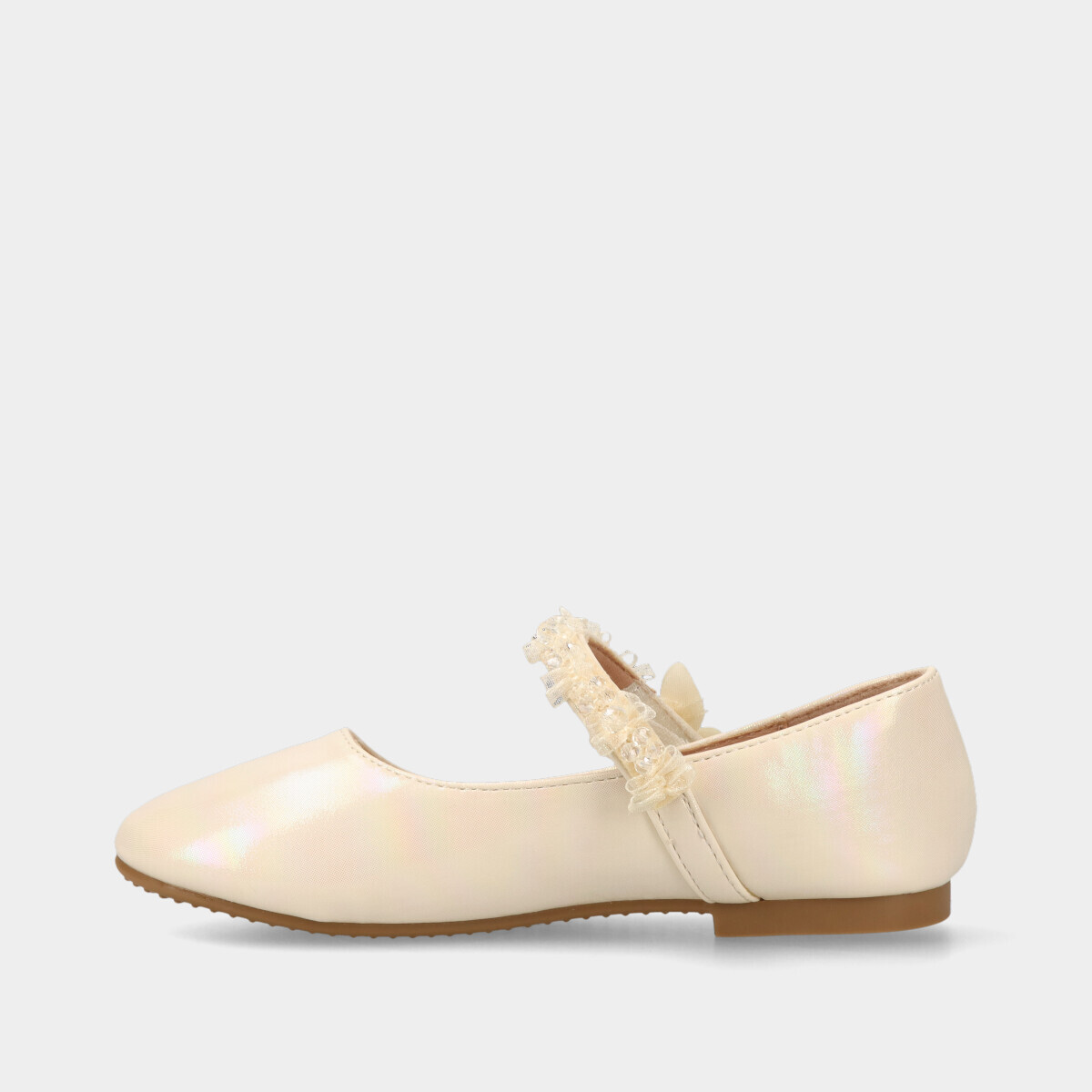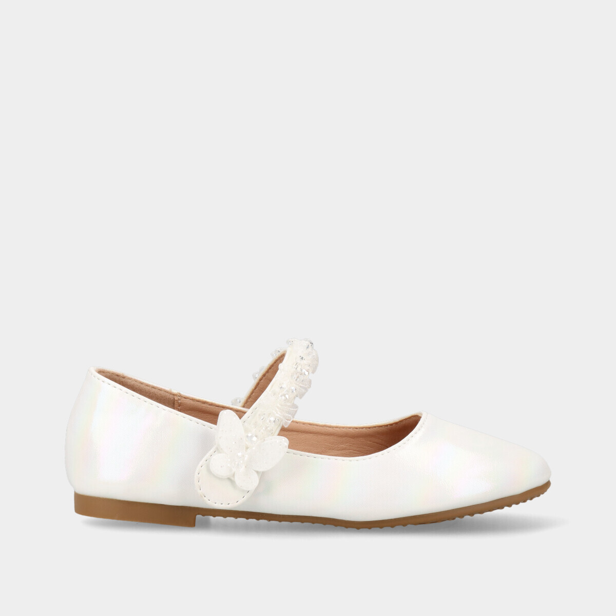 24,99 €22,49 €Sabrinas para menina com efeito holográfico, biqueira redonda e tira em velcro no peito do pé, com aplicações delicadas. Leves e flexíveis, com palmilha confortável… -