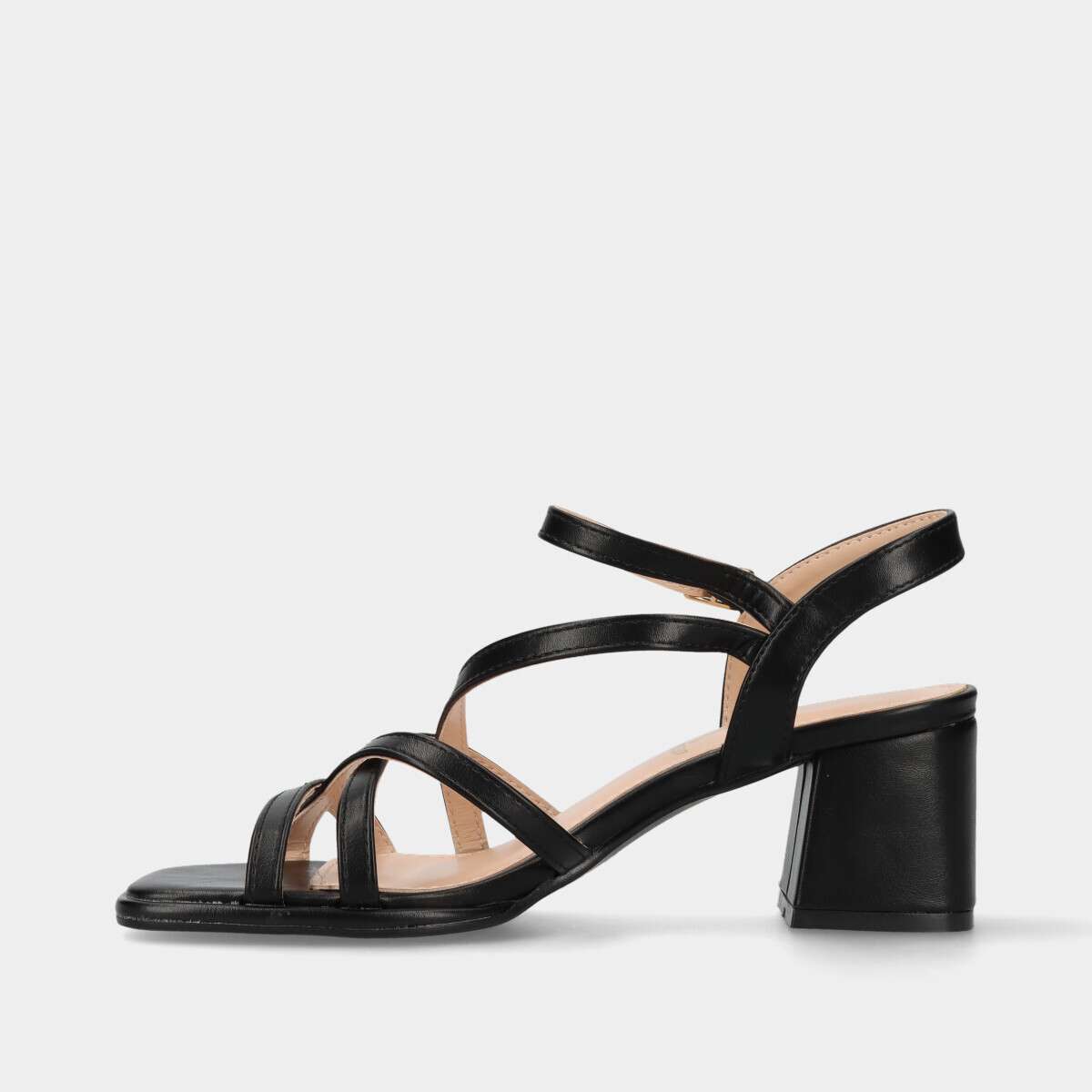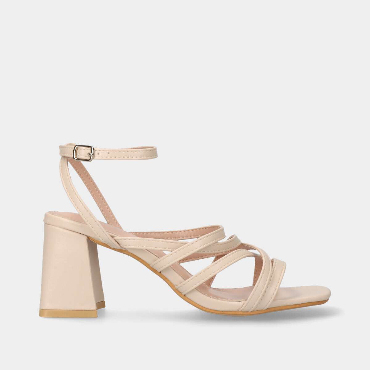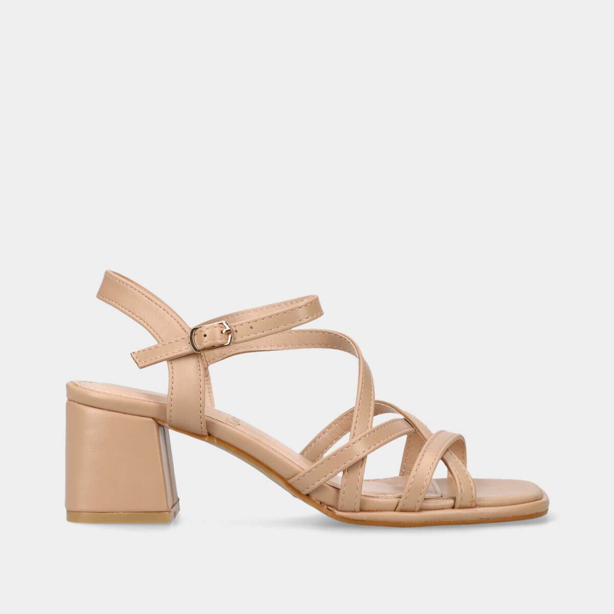 SANDÁLIA DE SALTO COM TIRAS CRUZADAS E FIVELA
