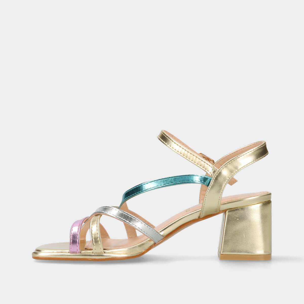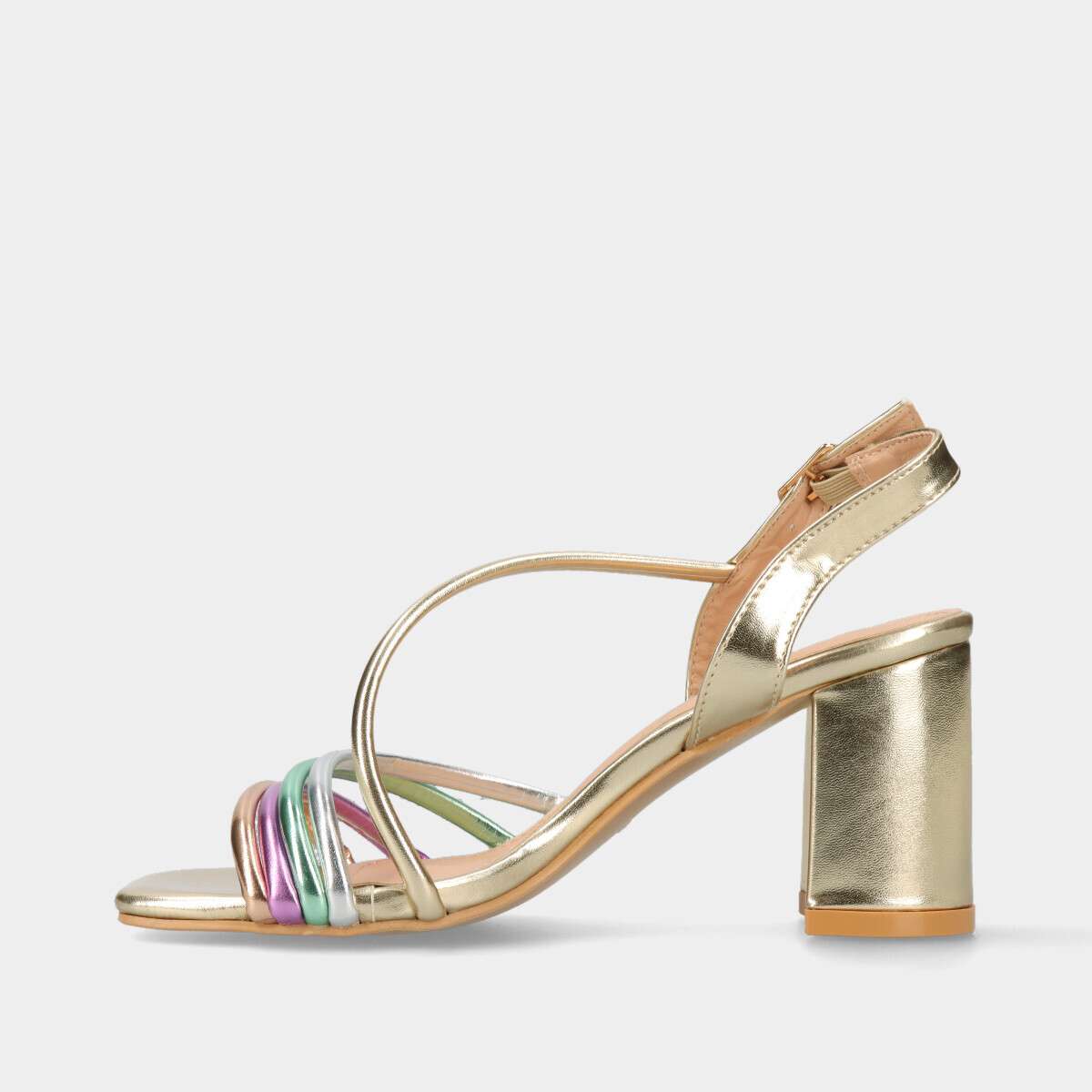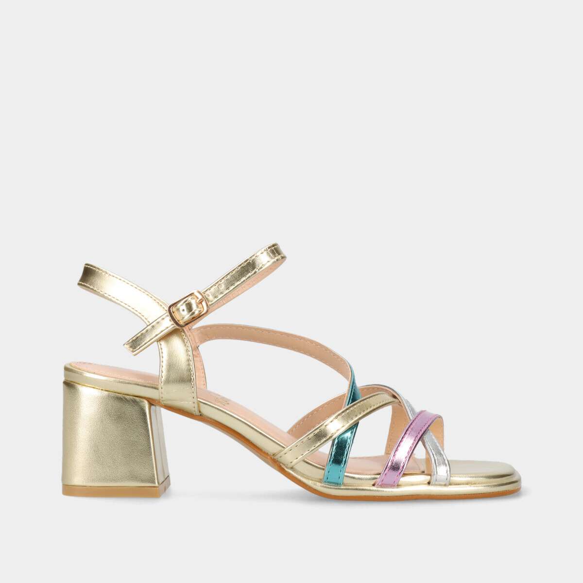 SANDÁLIA DE SALTO COM TIRAS CRUZADAS E FIVELA