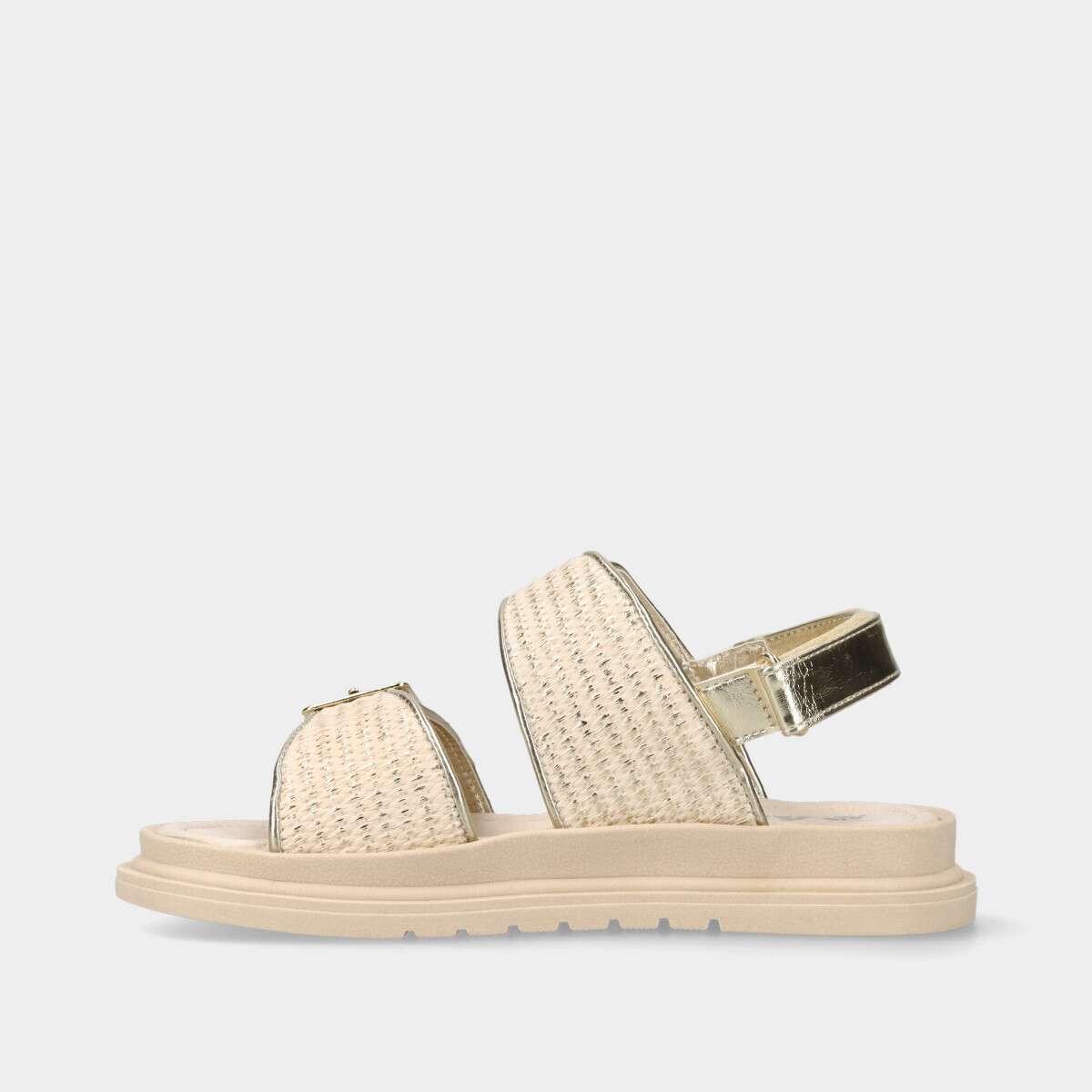 SANDÁLIA COM EFEITO PALHA DE VELCRO E FIVELAS