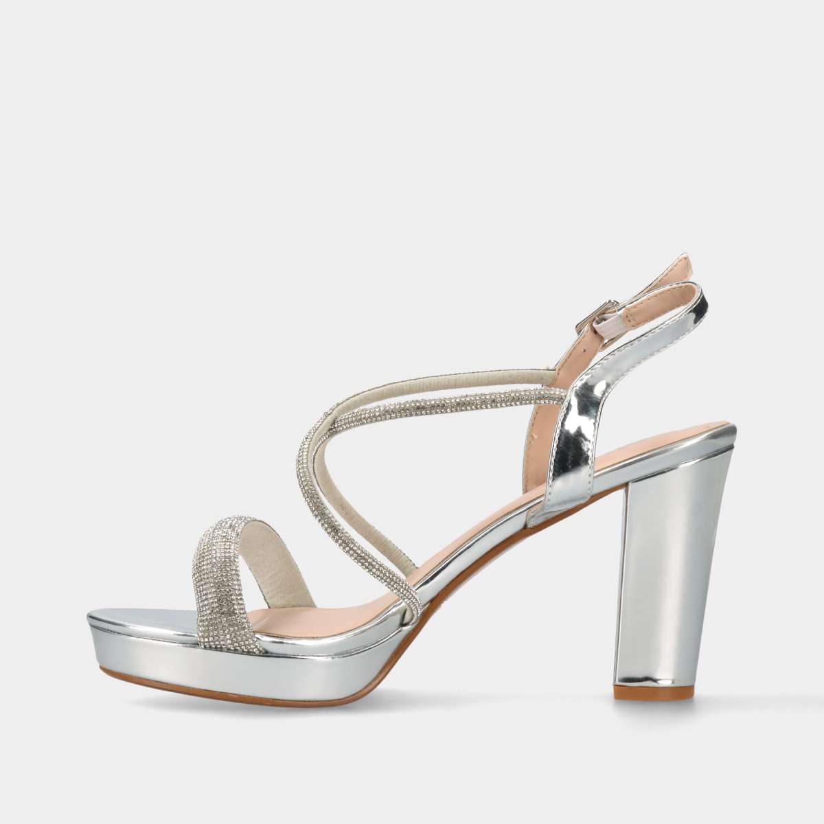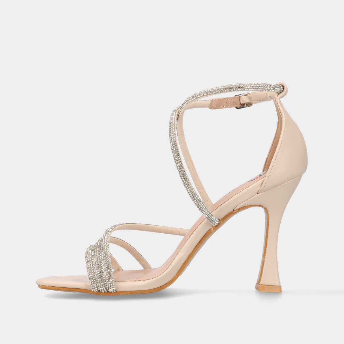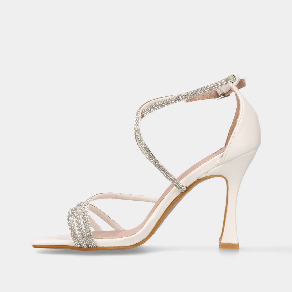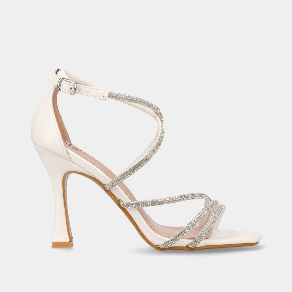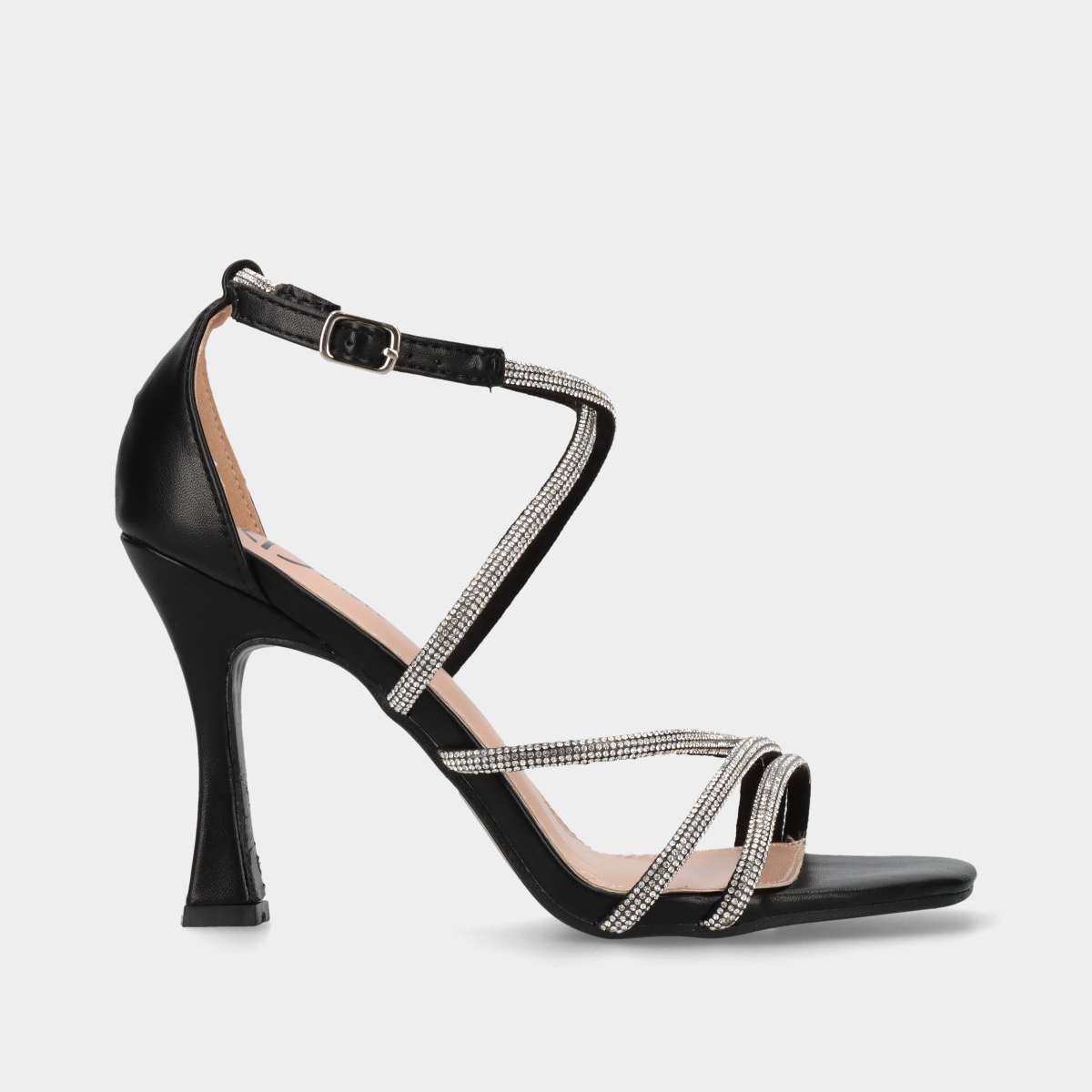 SANDÁLIA DE SALTO COM TIRAS EM CRISTAIS