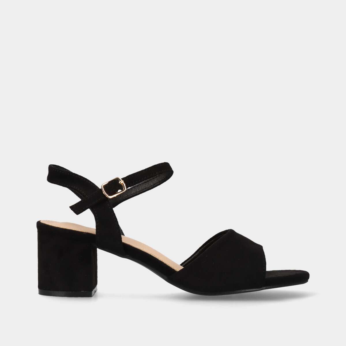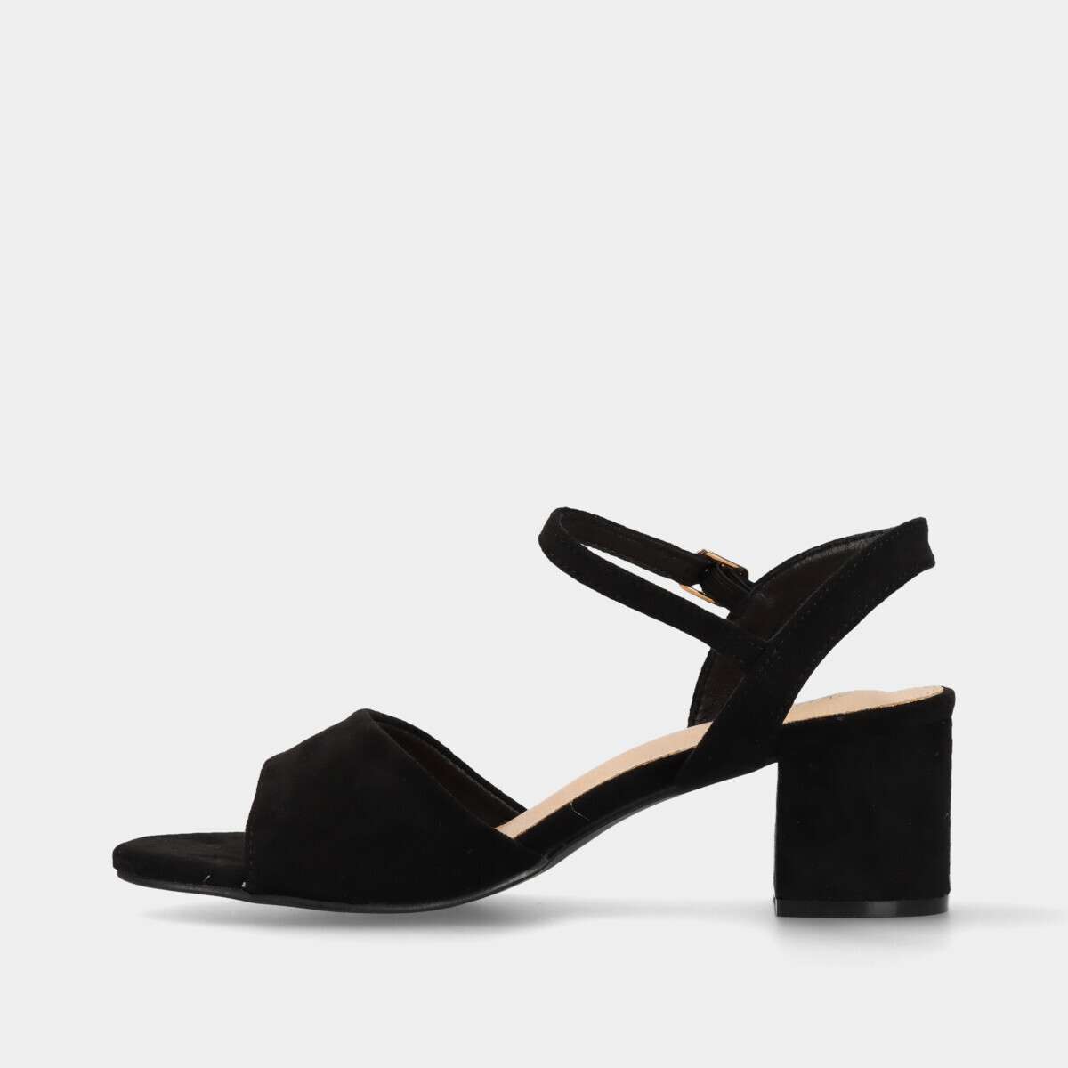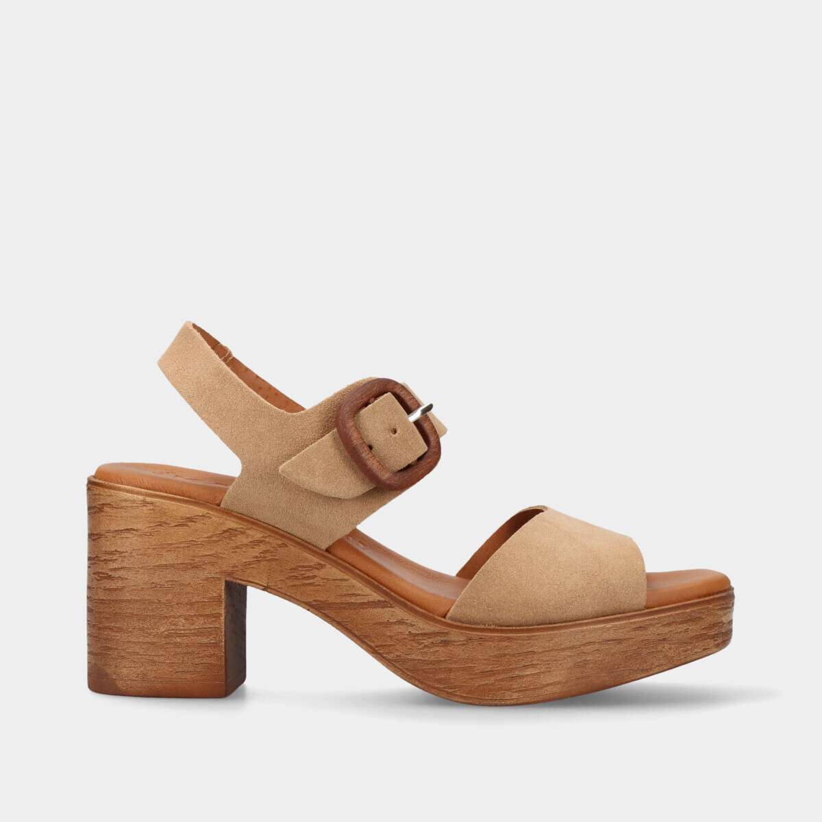 SANDÁLIA DE SALTO EM PELE CAMURÇA COM FIVELA