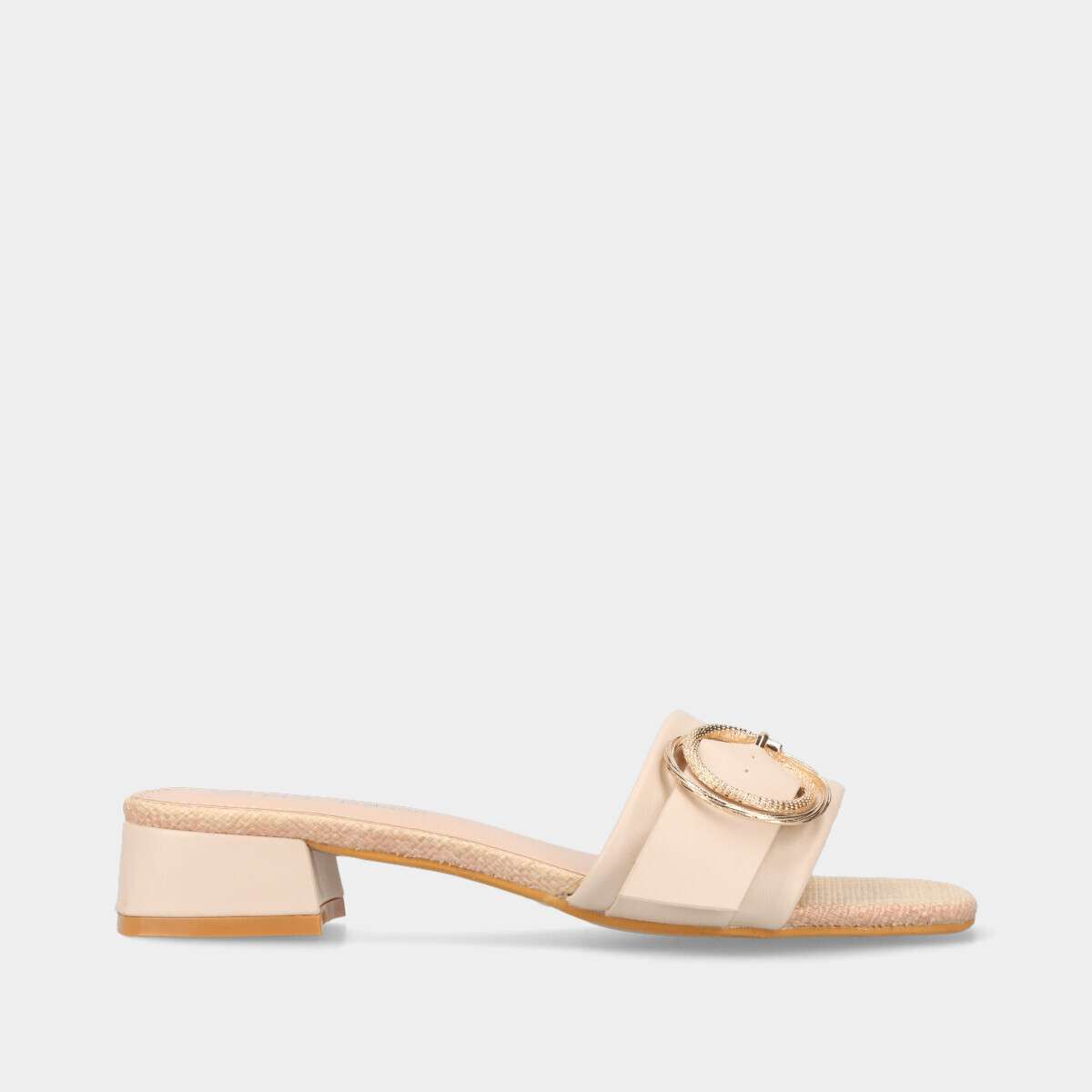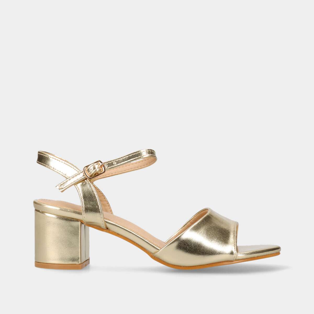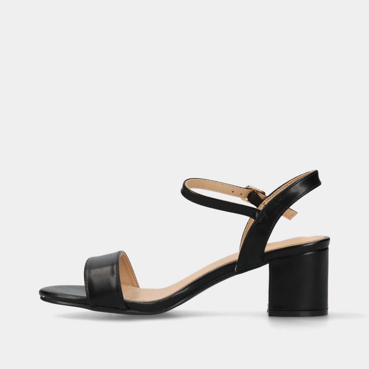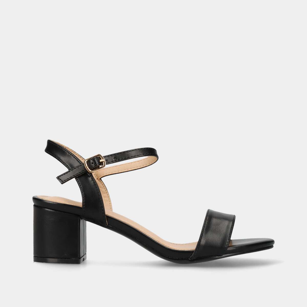 SANDÁLIA DE SALTO EM PELE COM FIVELA