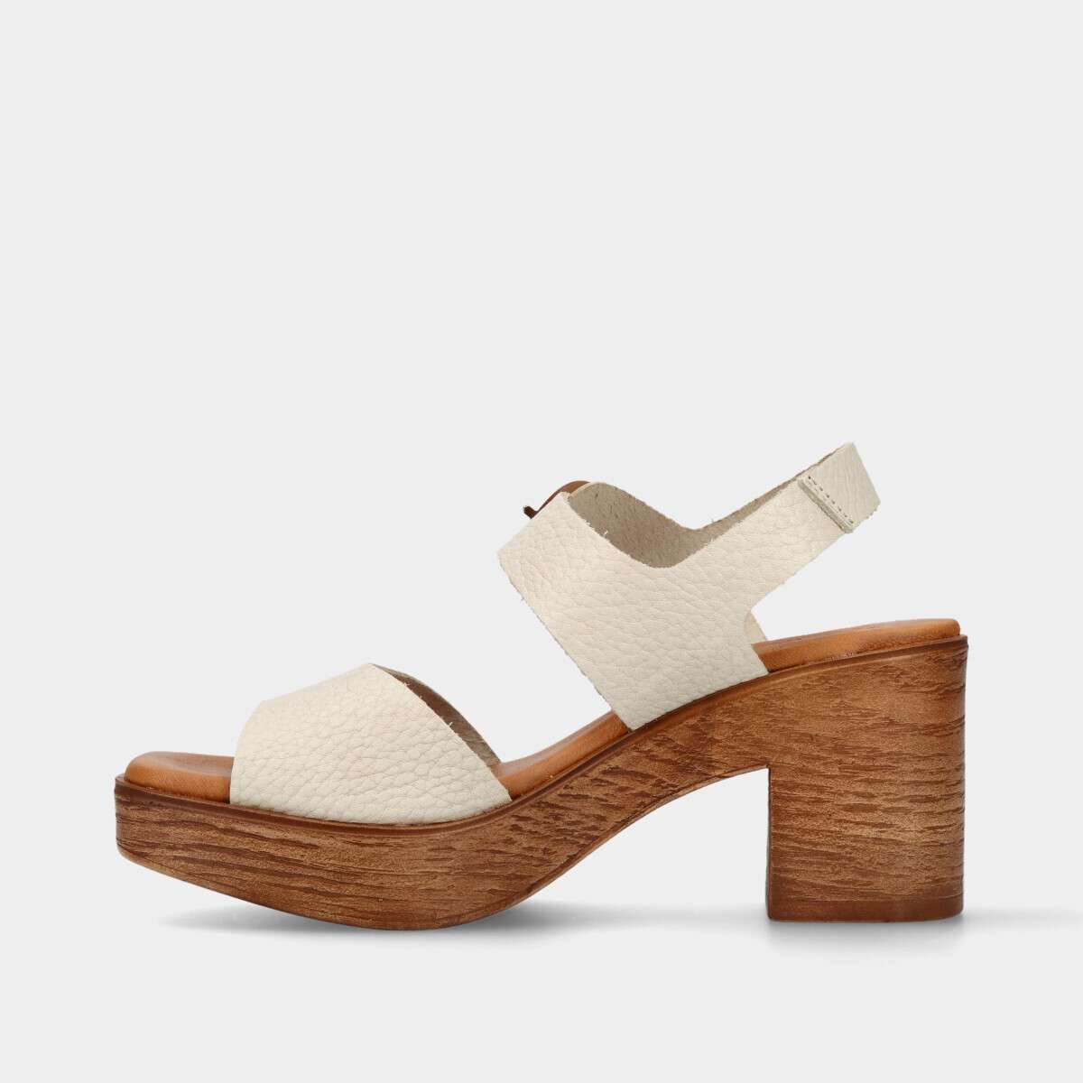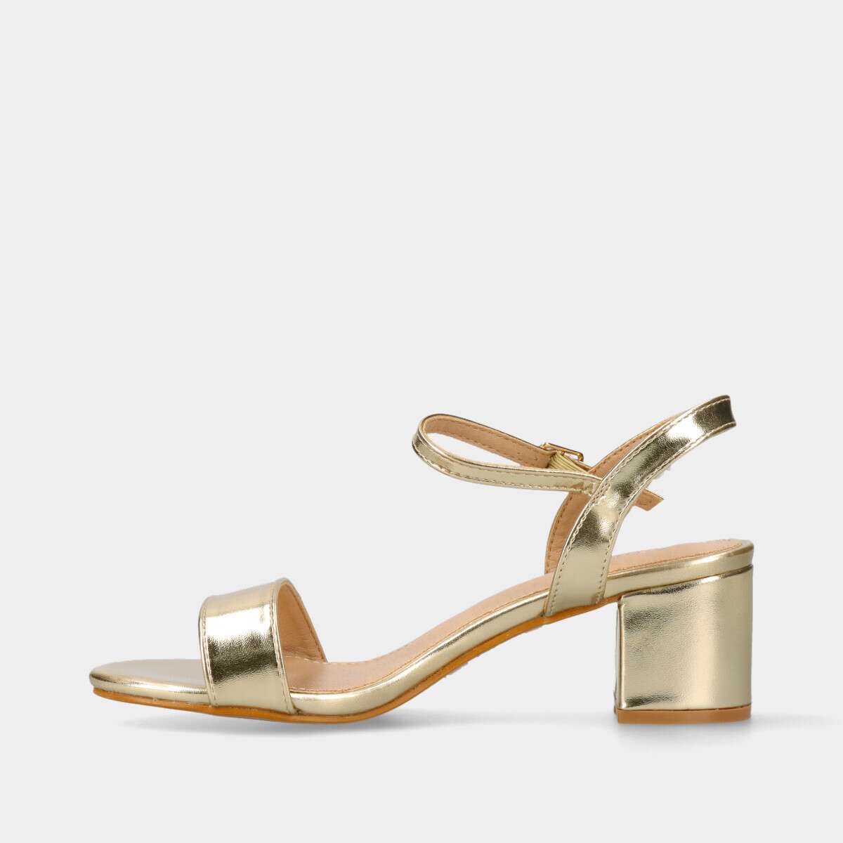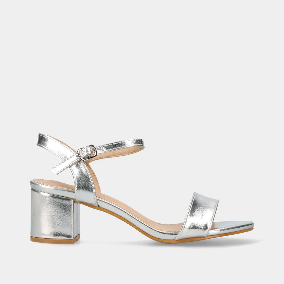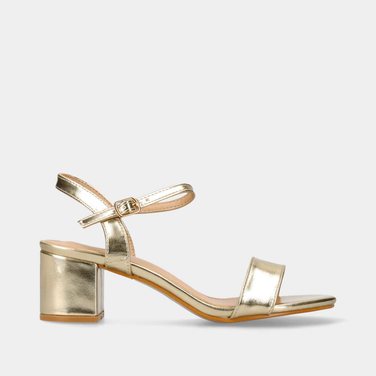 SANDÁLIA DE SALTO EM PELE COM FIVELA