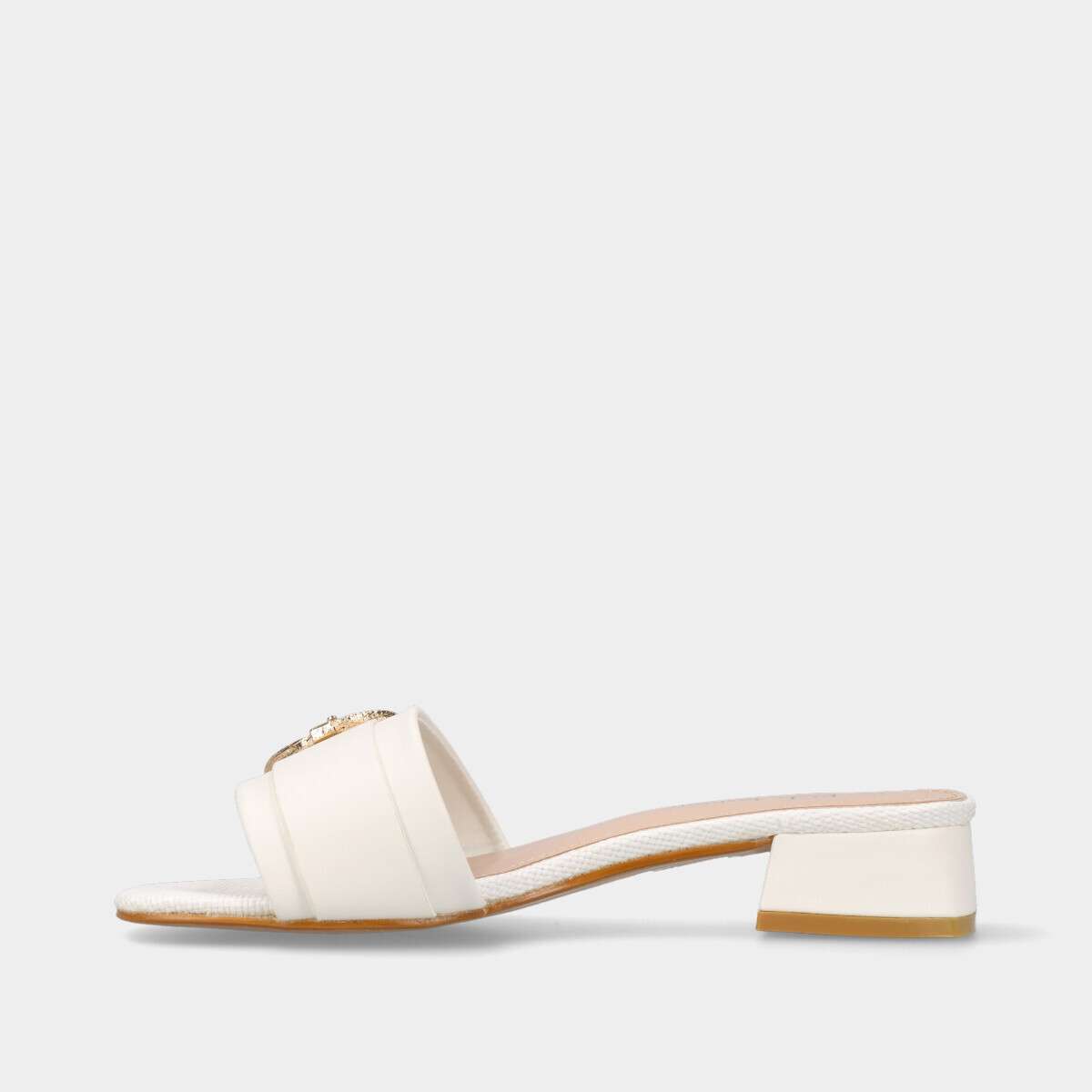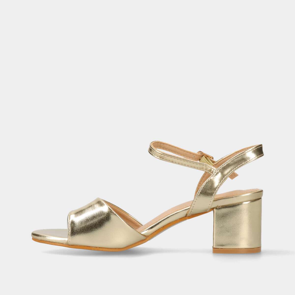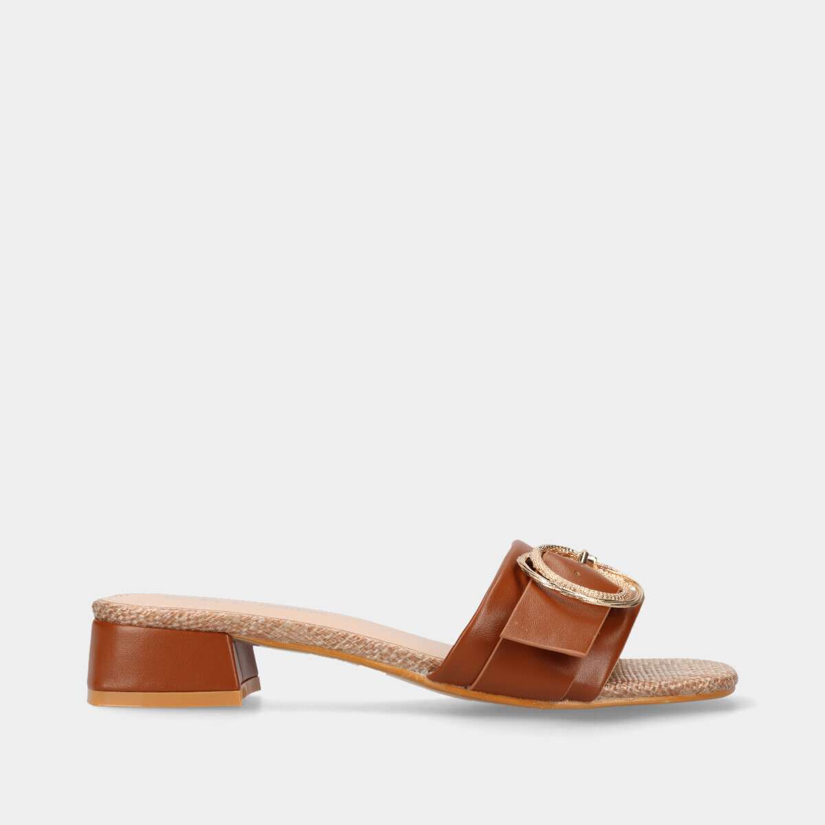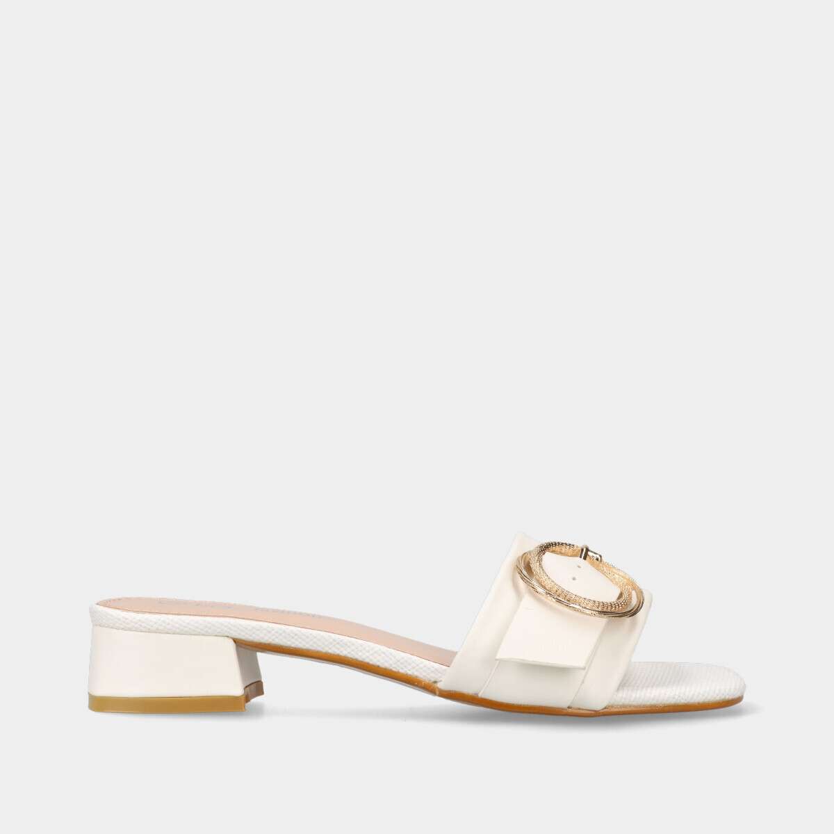 SANDÁLIA DE SALTO EM PELE COM FIVELA