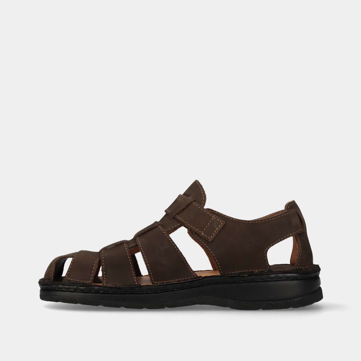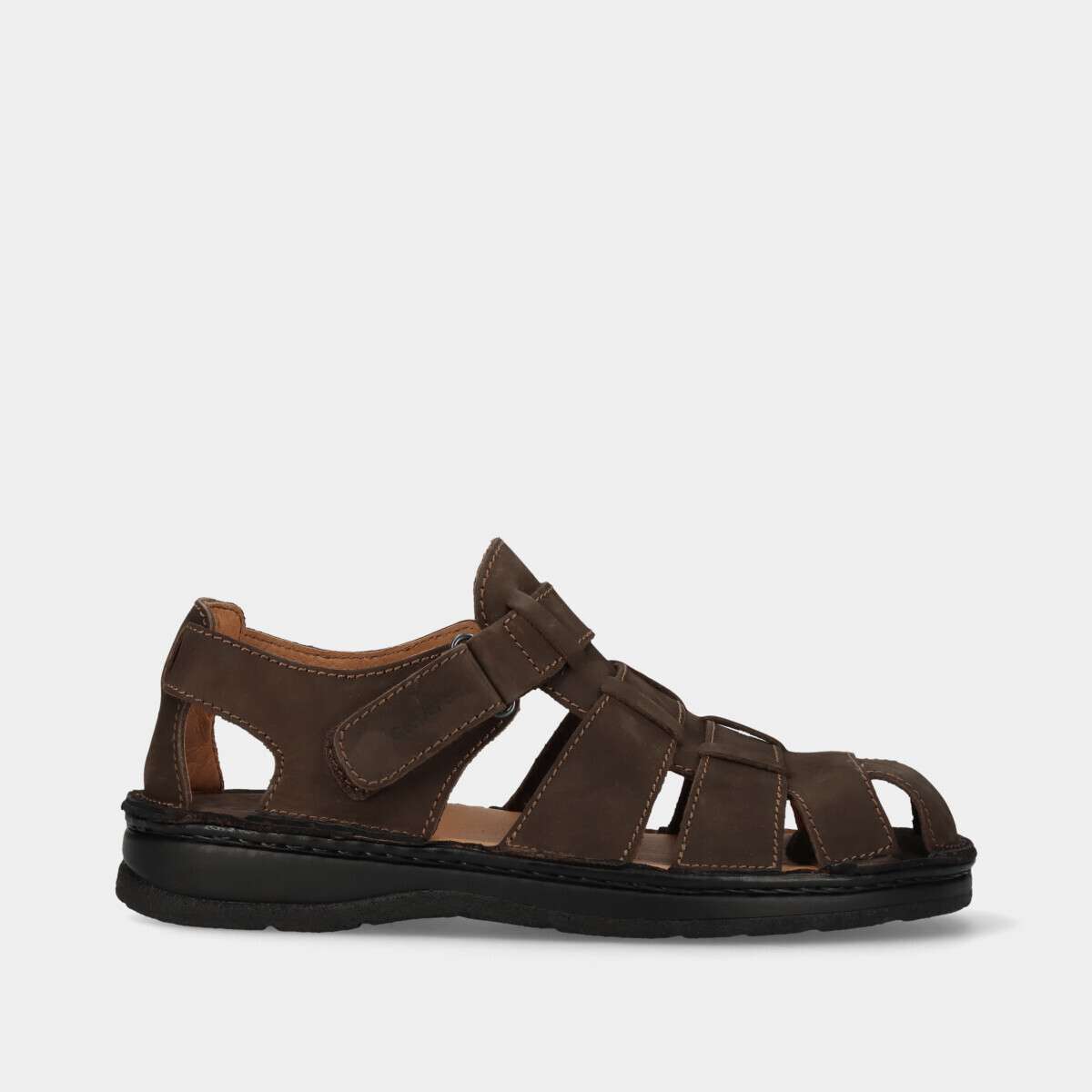SANDÁLIA EM PELE NOBUCK DE CONFORTO COM VELCRO