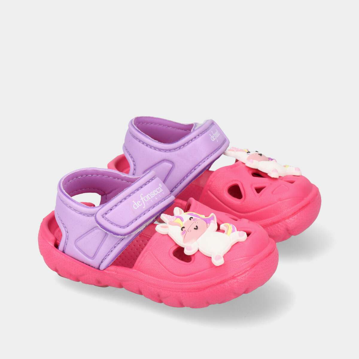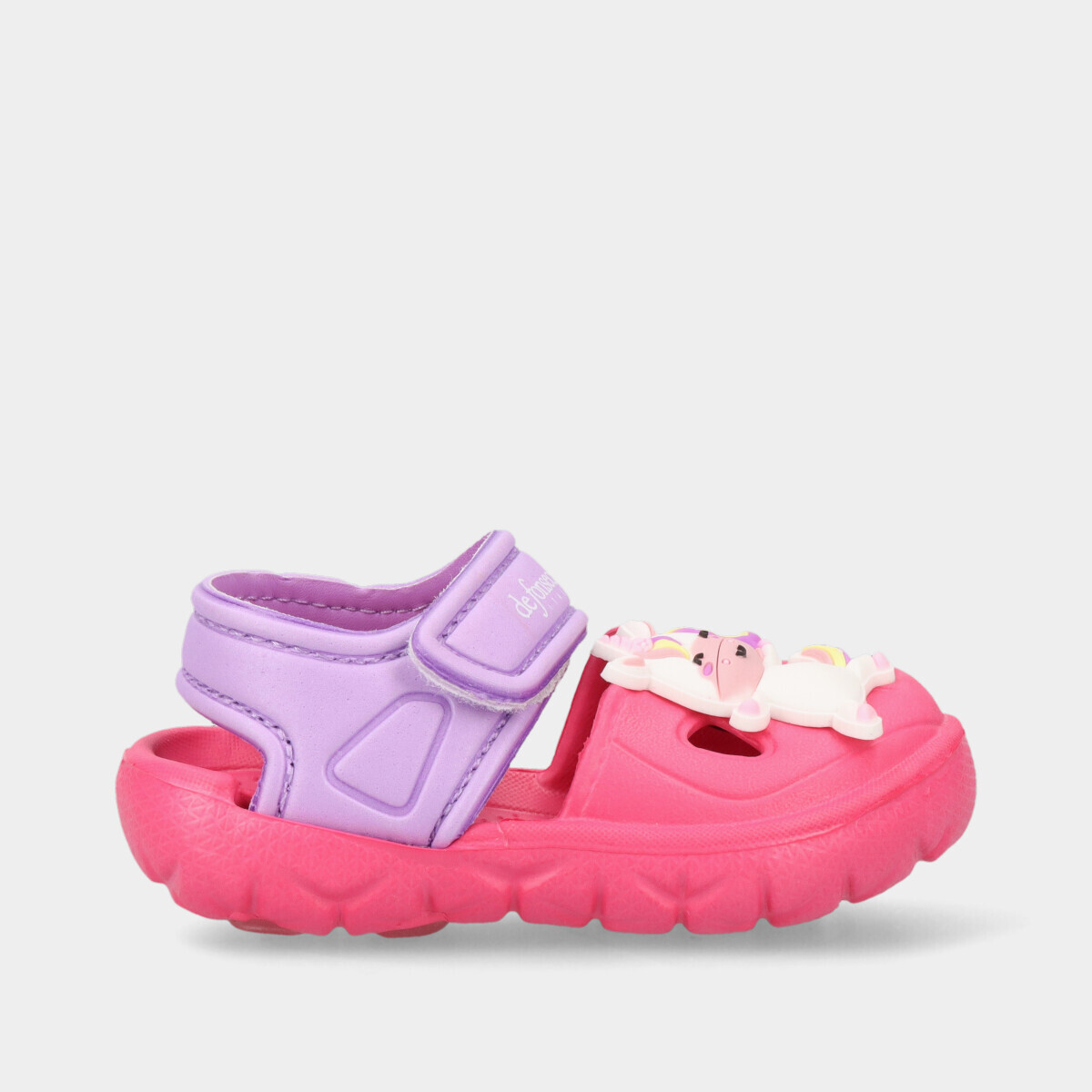 SANDÁLIA ESTILO CLOGS DE VELCRO COM UNICÓRNIO