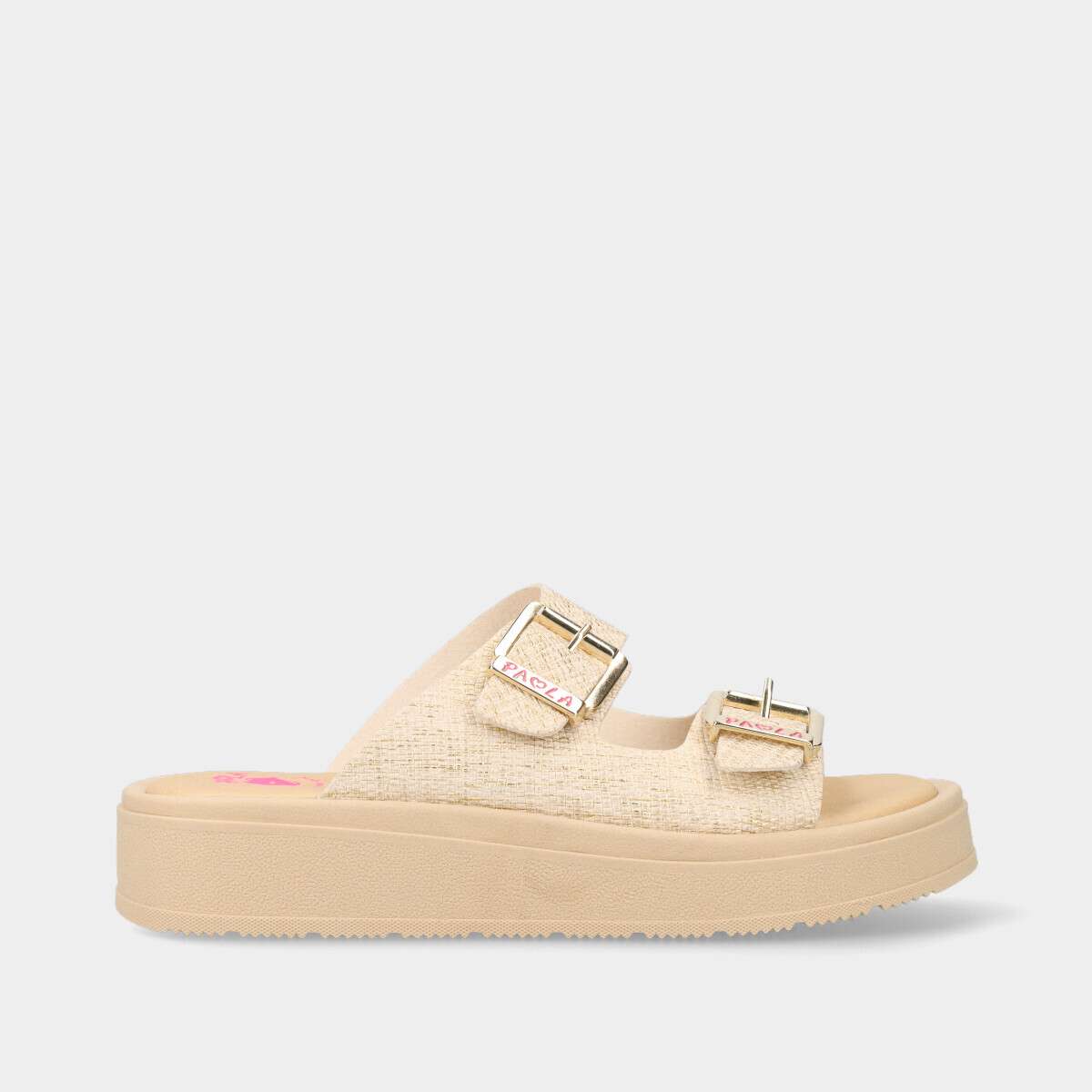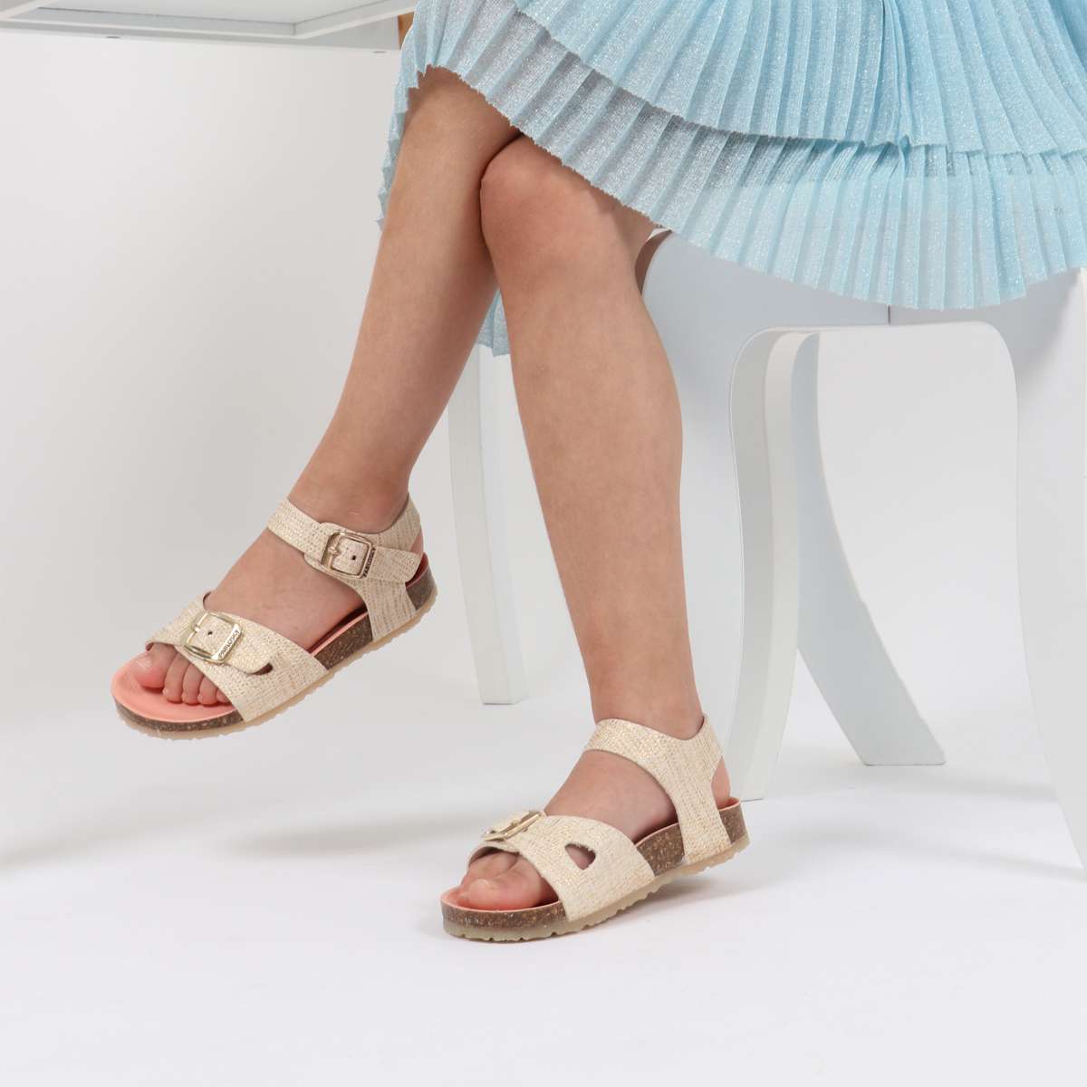 SANDÁLIA DE DEDO COM APLICAÇÃO METÁLICA E FIVELA