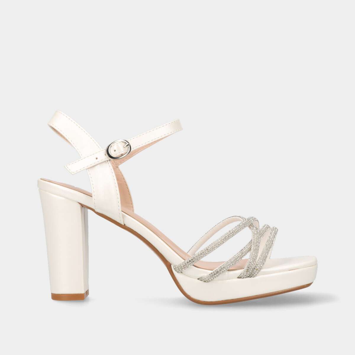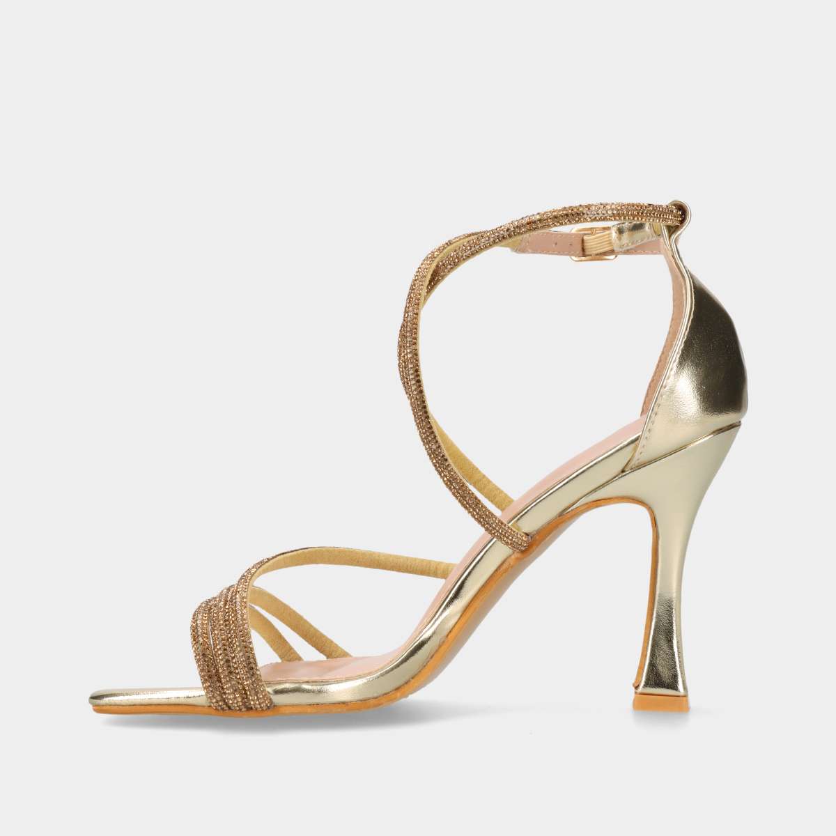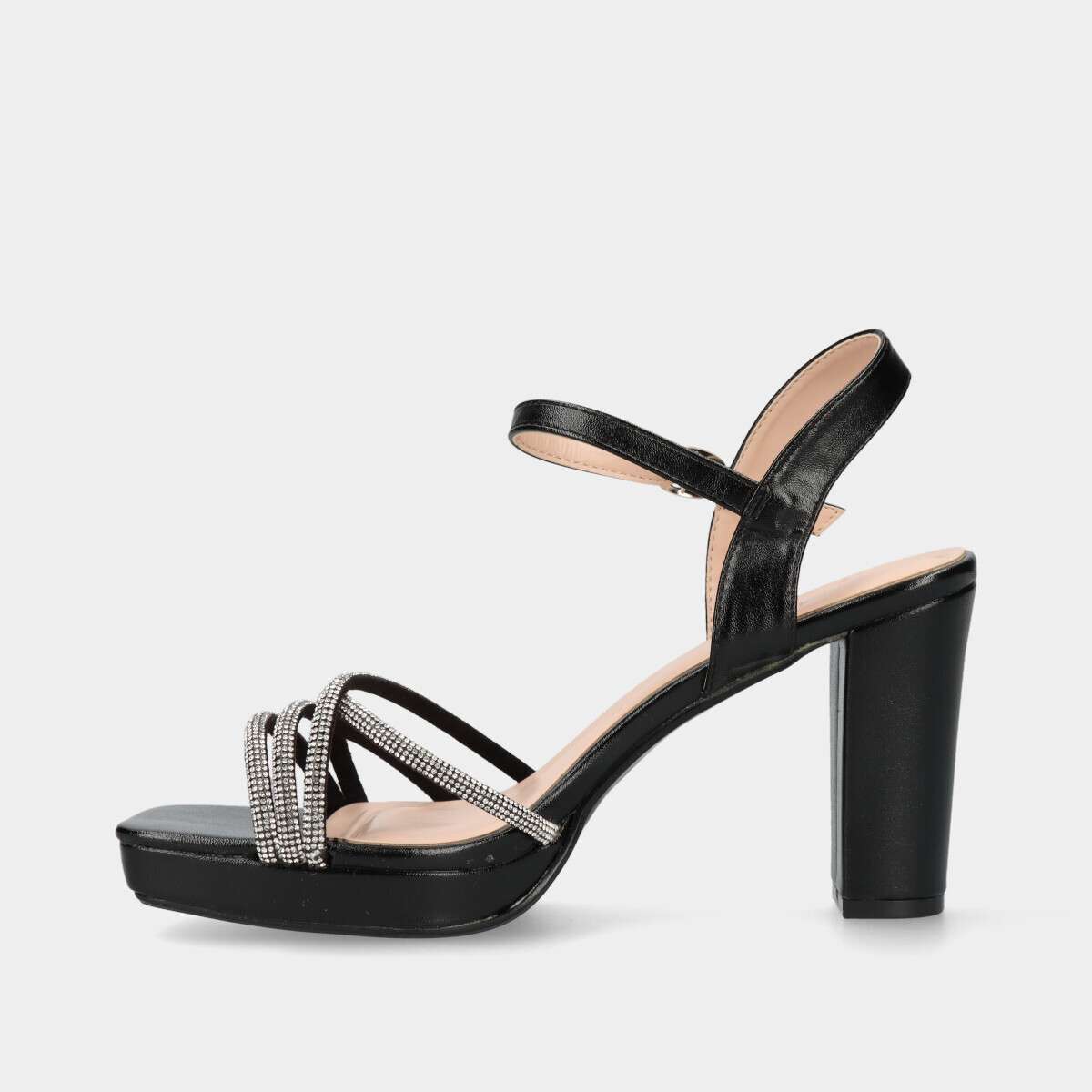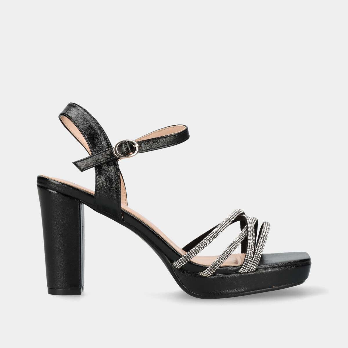 SANDÁLIA DE SALTO COM TIRAS EM CRISTAIS