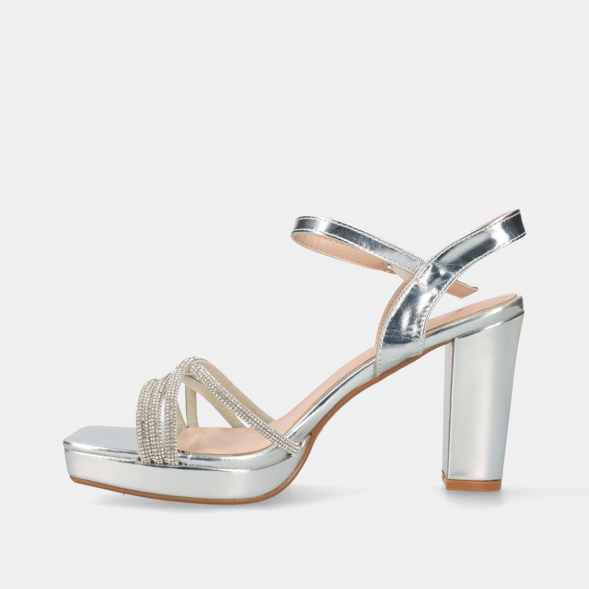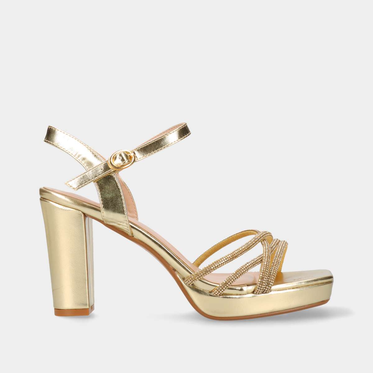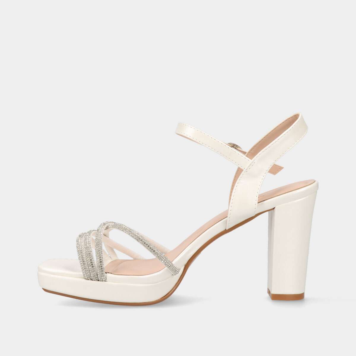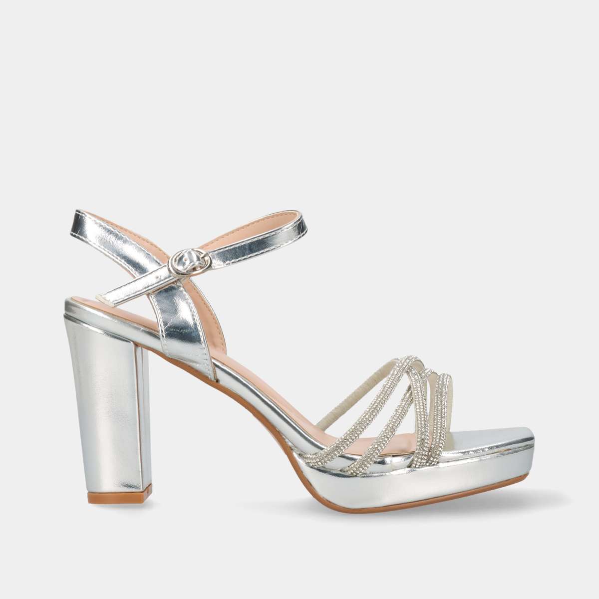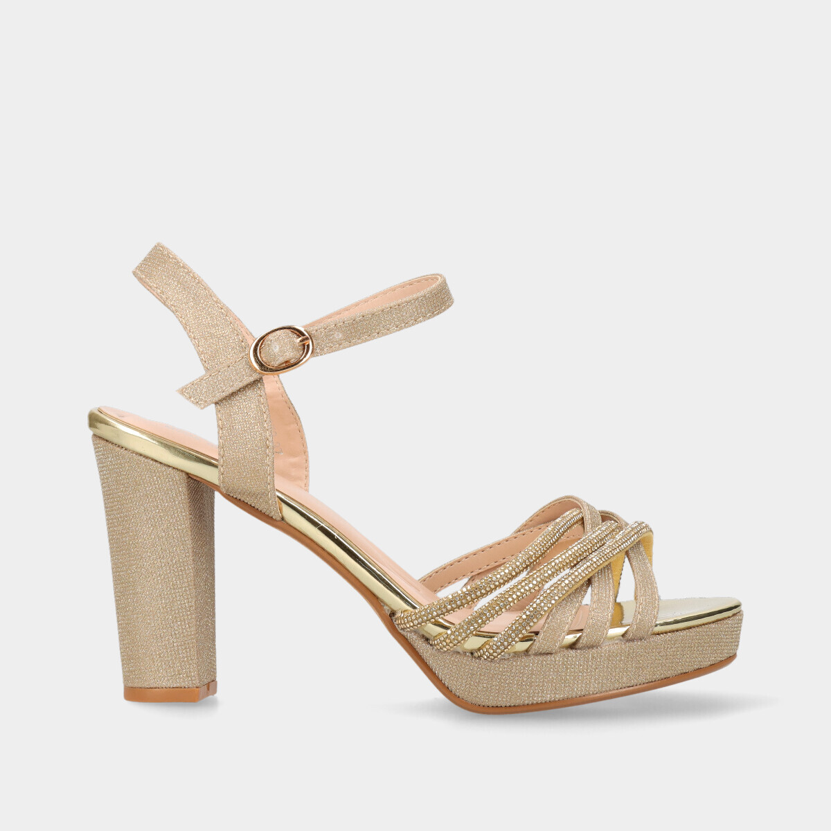 SANDÁLIA DE SALTO COM TIRAS EM CRISTAIS