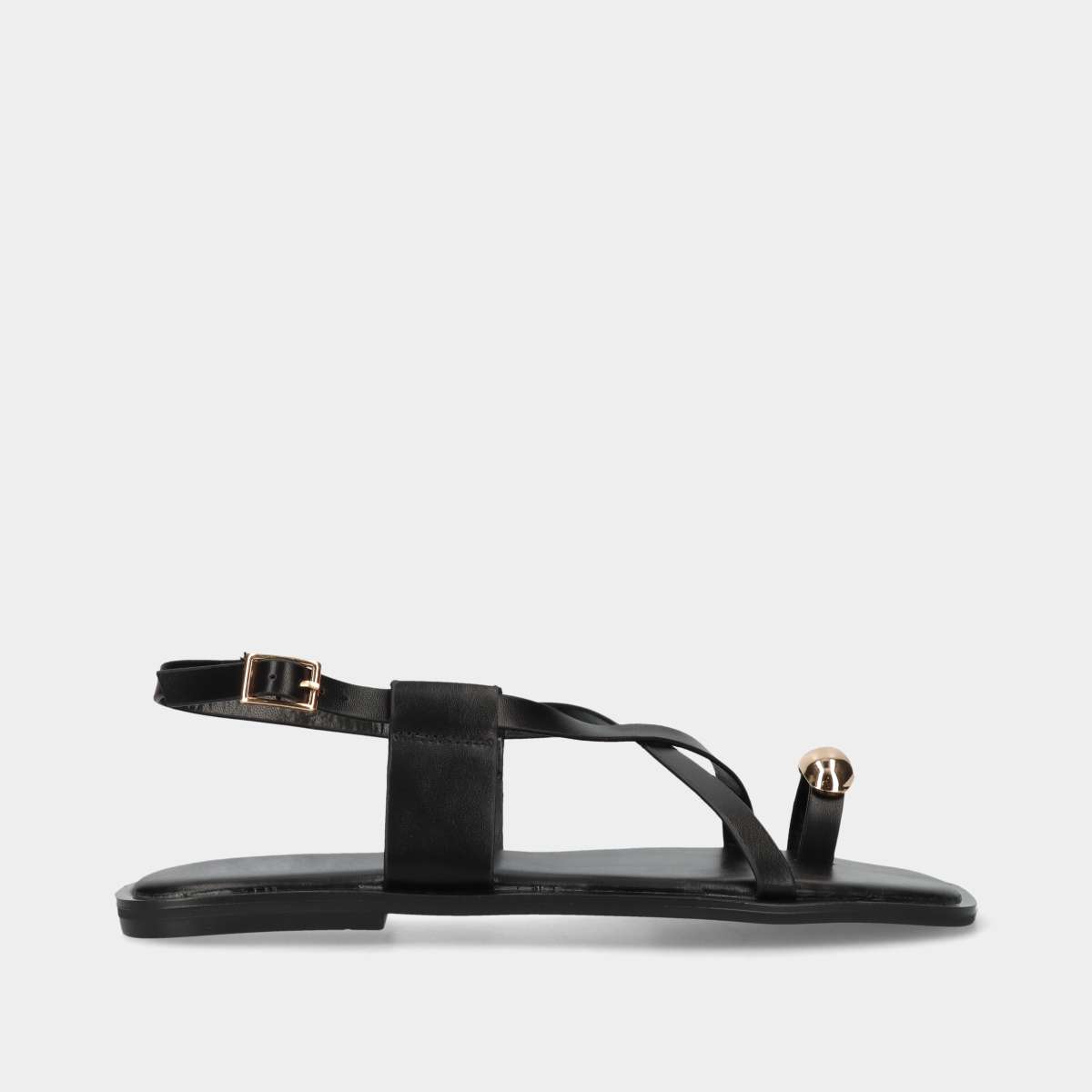 SANDÁLIA DE DEDO COM APLICAÇÃO METÁLICA E FIVELA