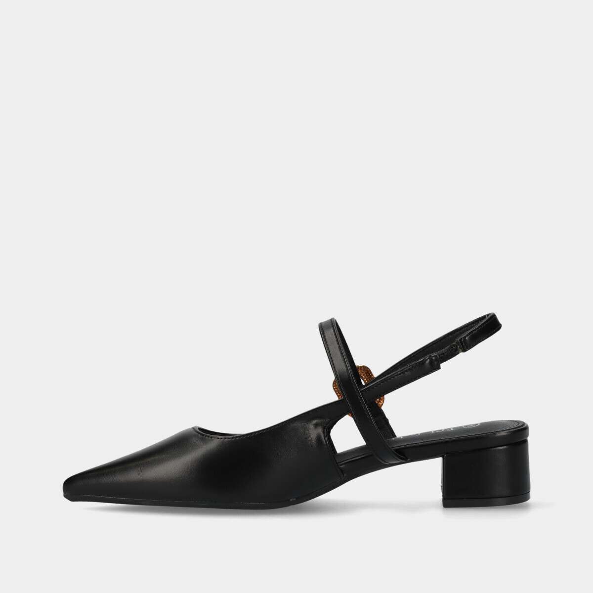 SAPATO MULE DE SALTO COM ELÁSTICO E FIVELA