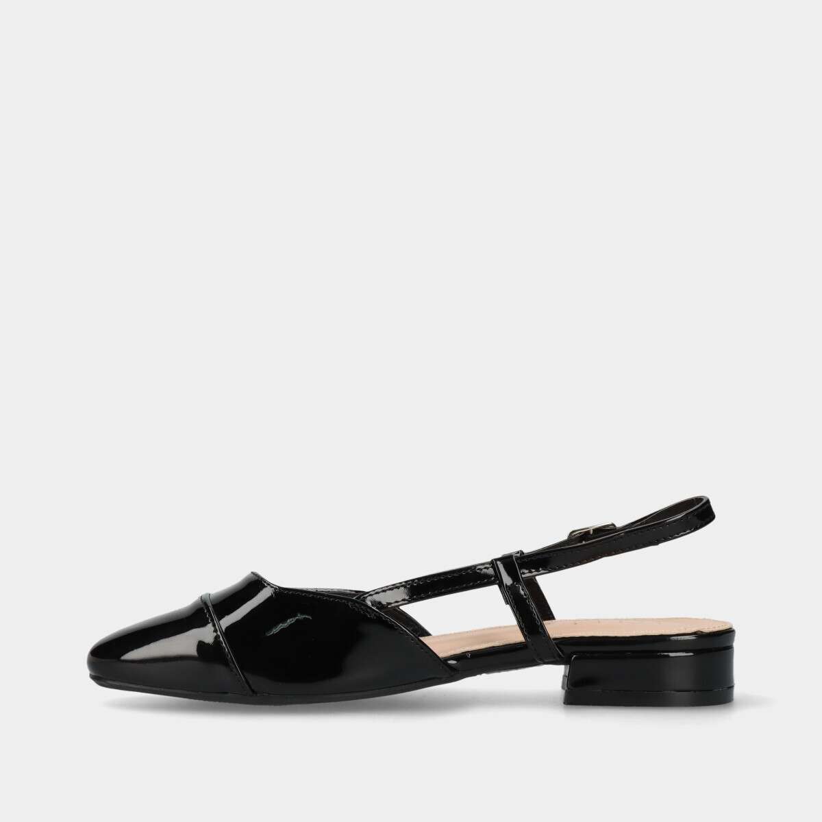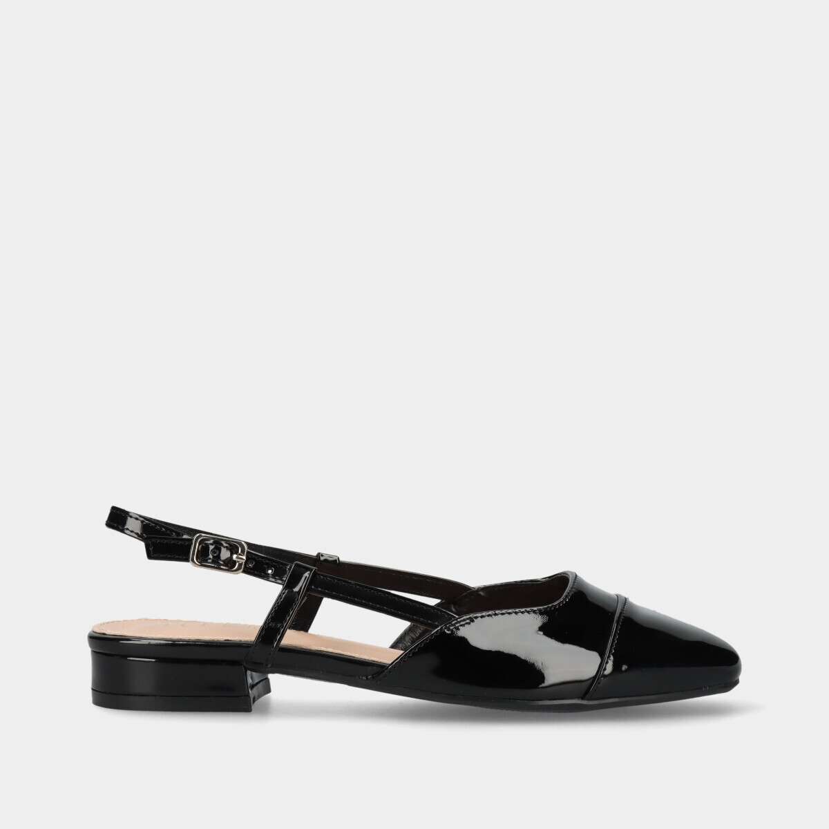 SAPATO MULE COM EFEITO VERNIZ E FIVELA