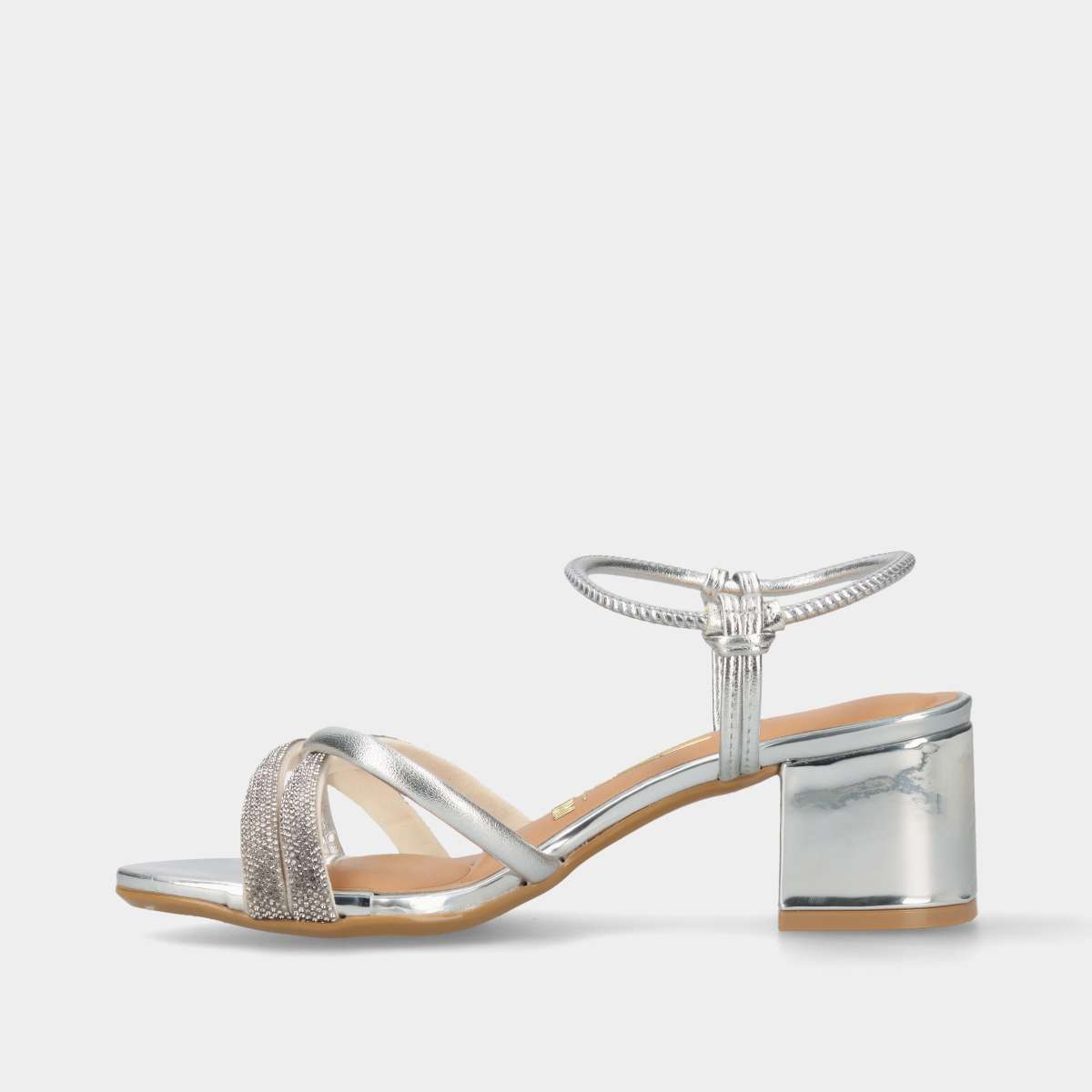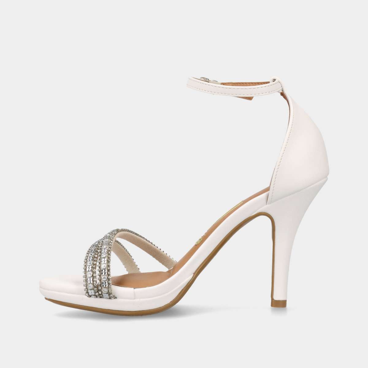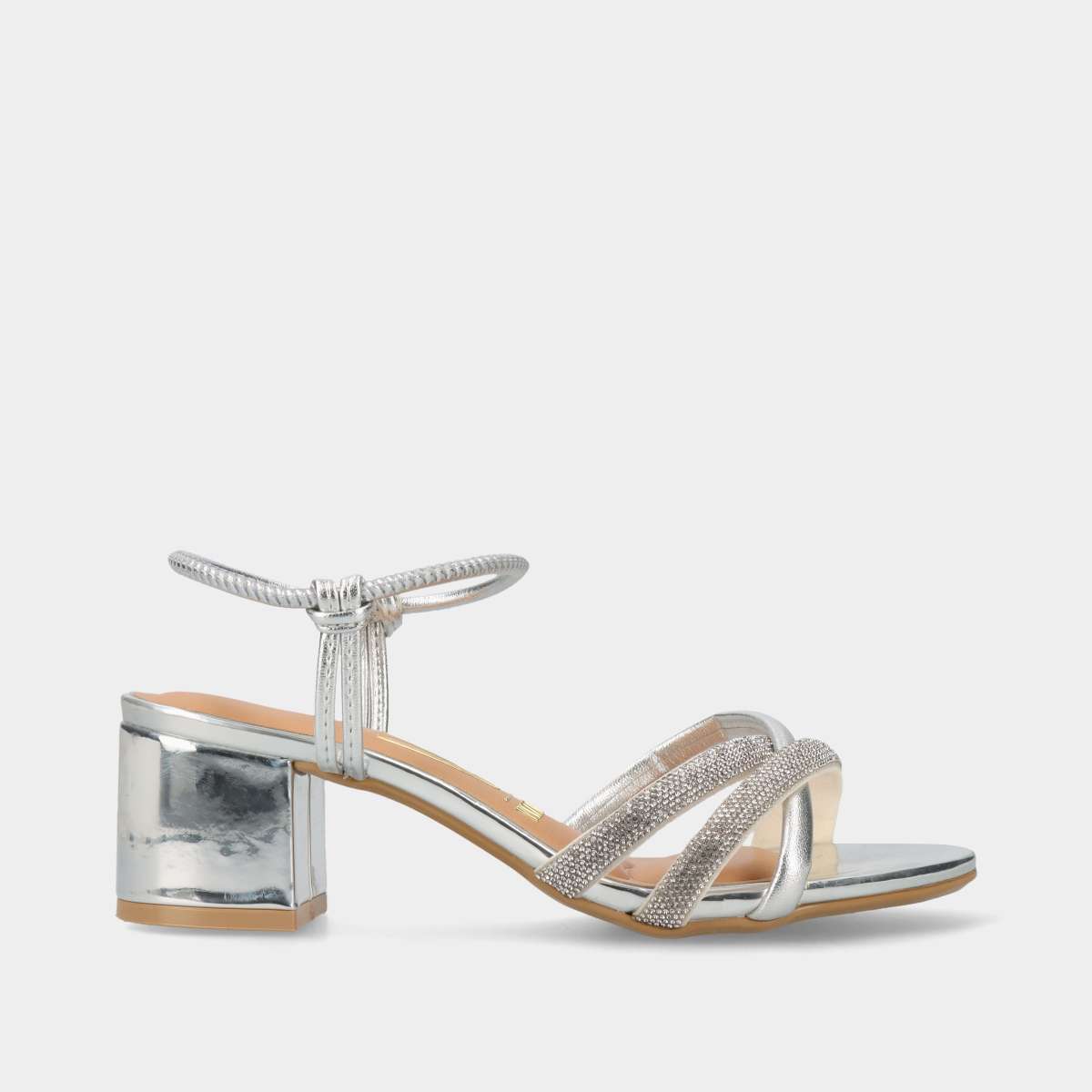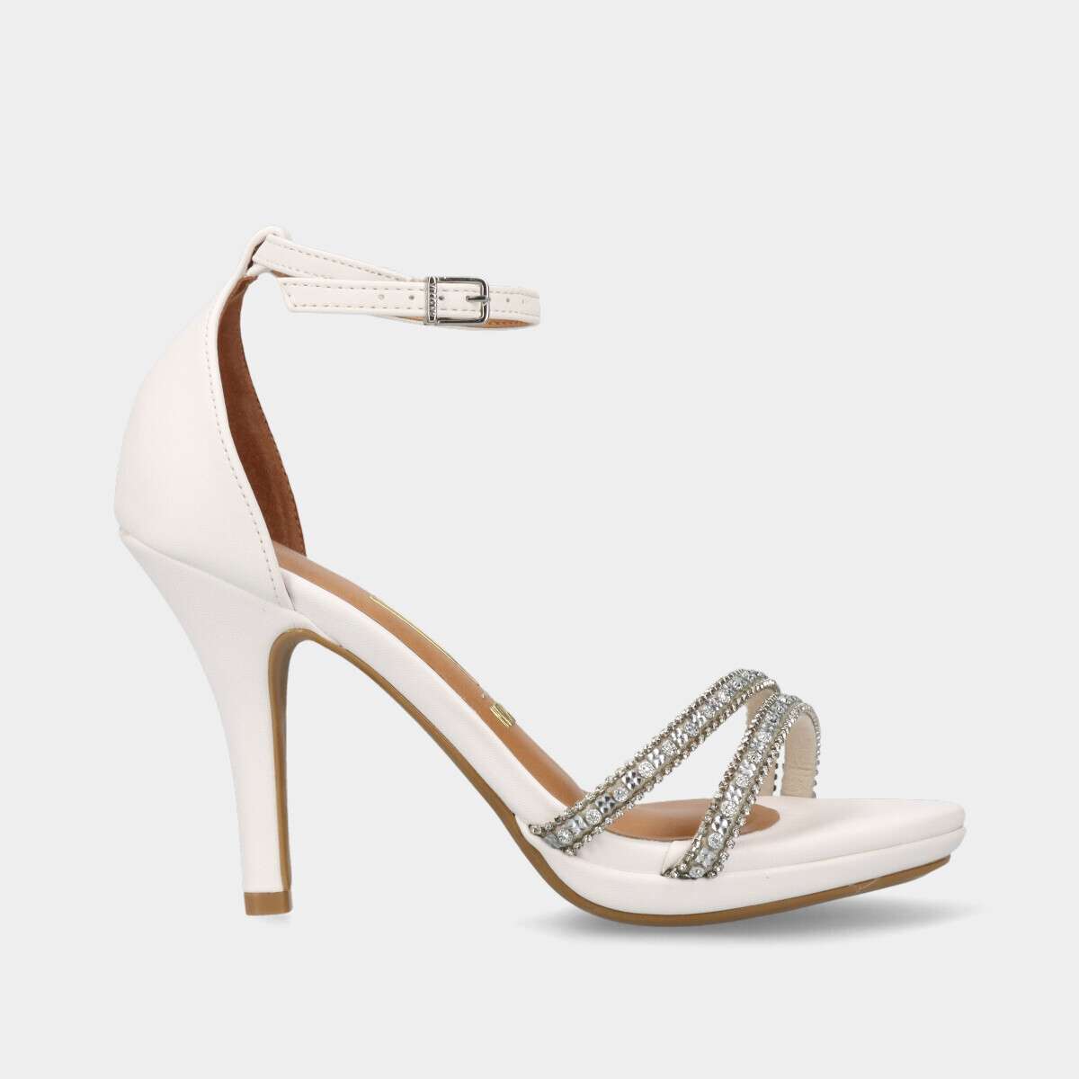 SANDÁLIA DE SALTO COM TIRAS EM CRISTAIS