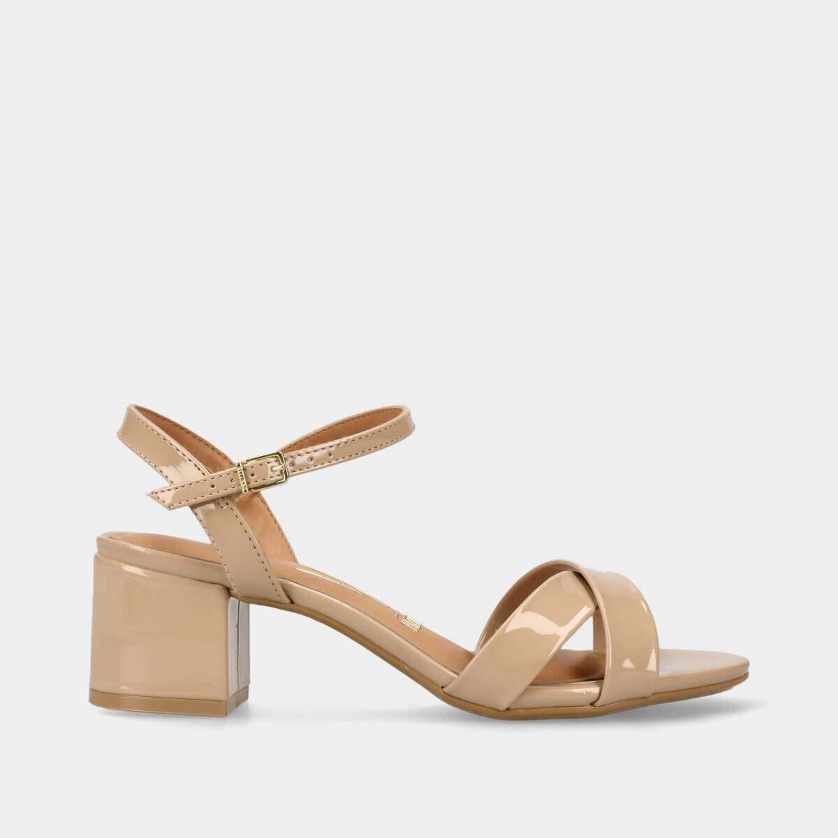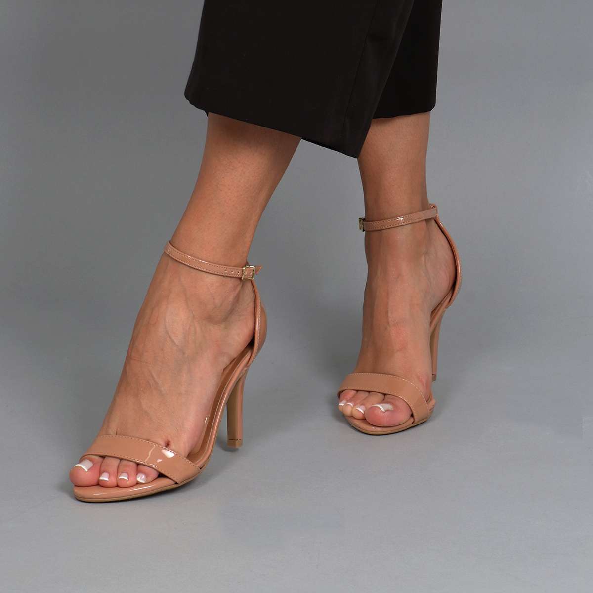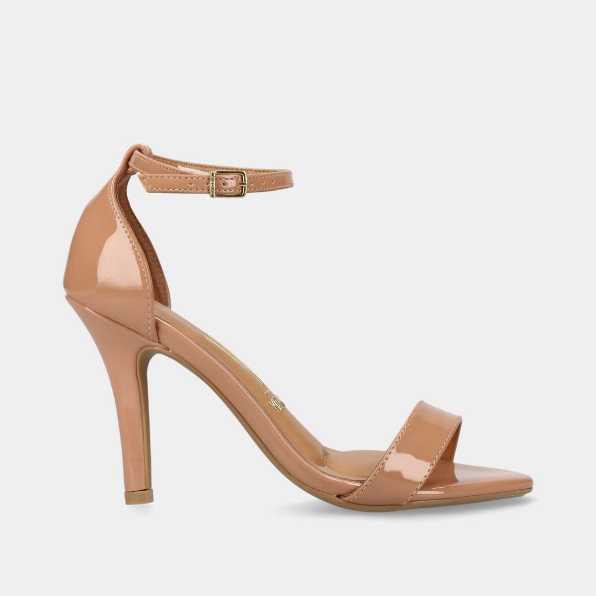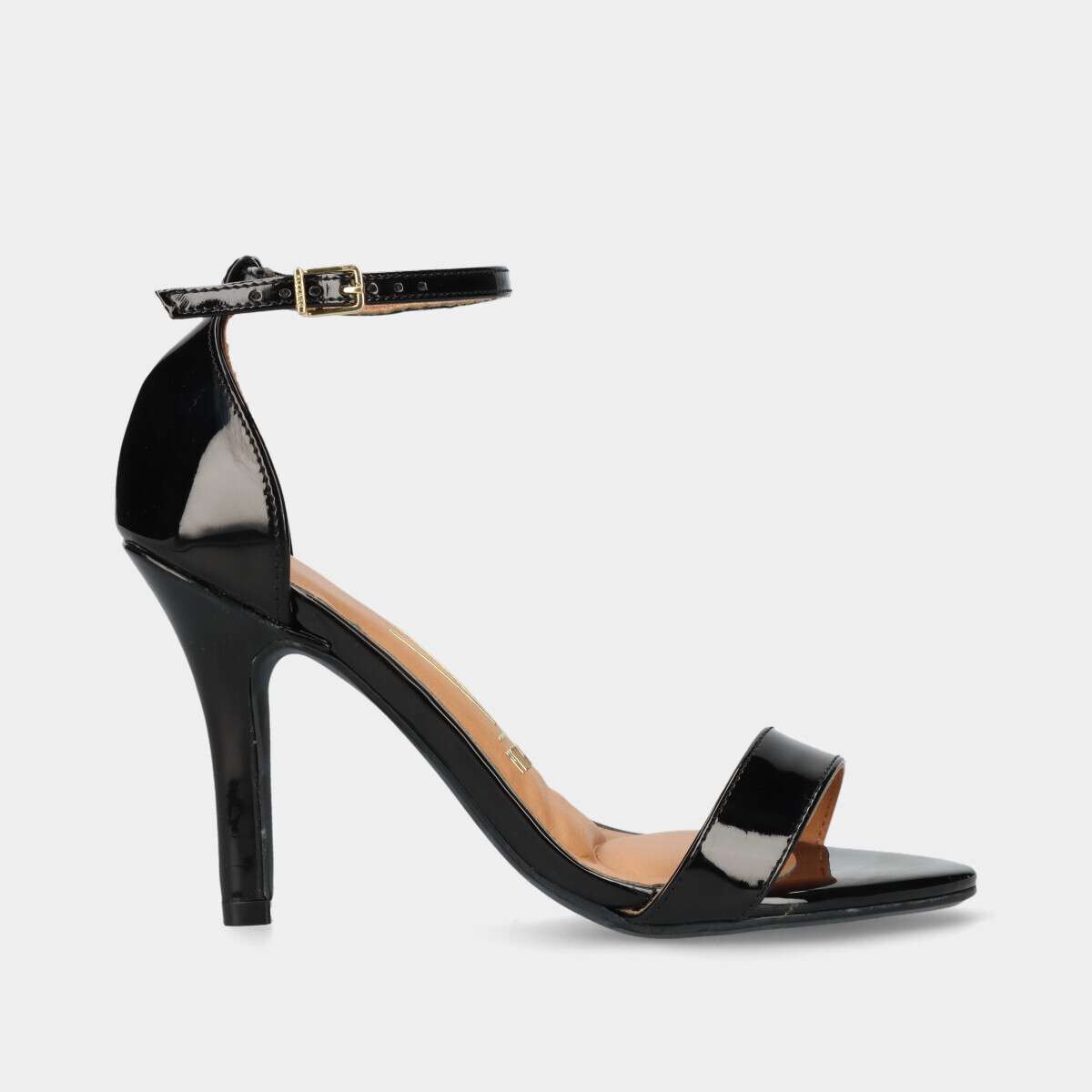 SANDÁLIA DE SALTO COM EFEITO VERNIZ E FIVELA