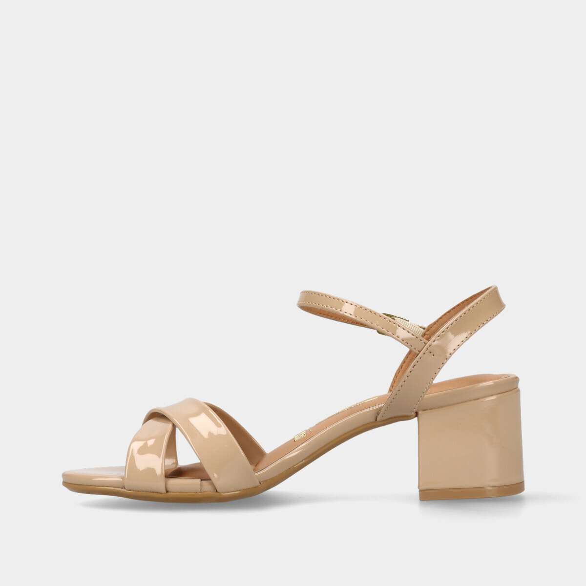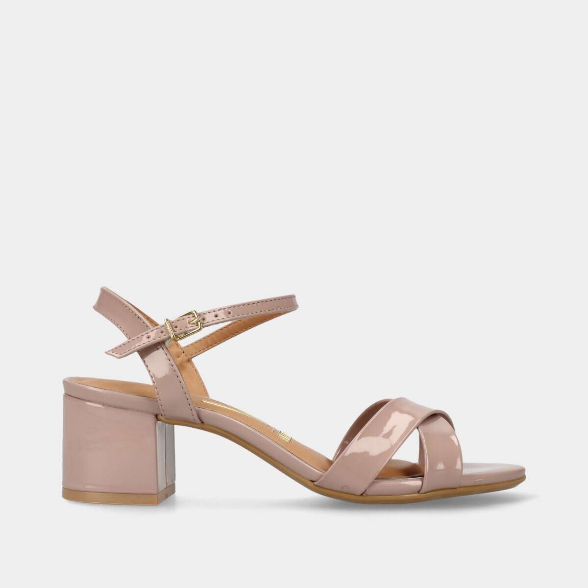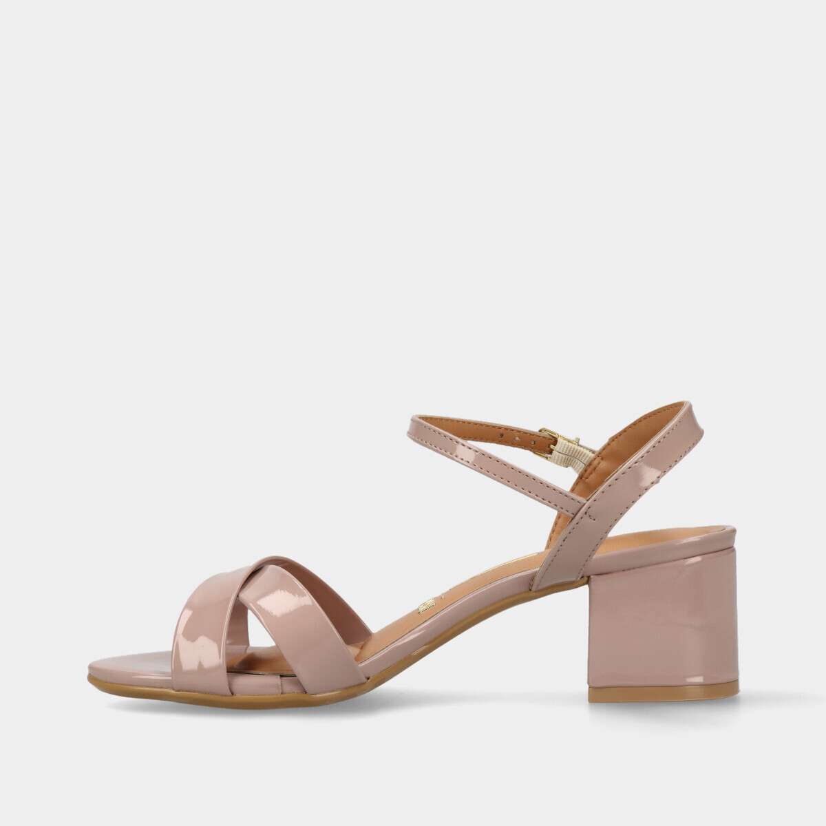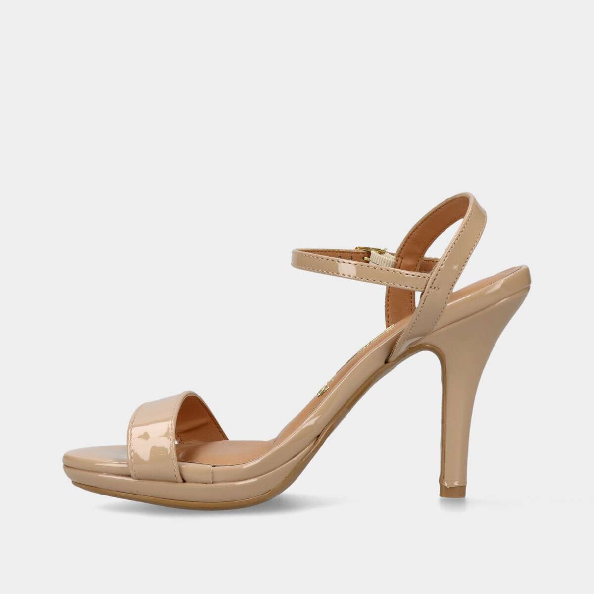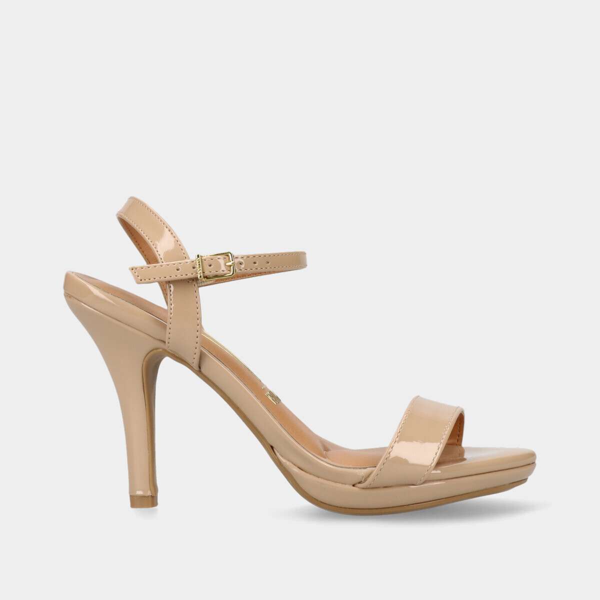 SANDÁLIA DE SALTO COM EFEITO VERNIZ E FIVELA