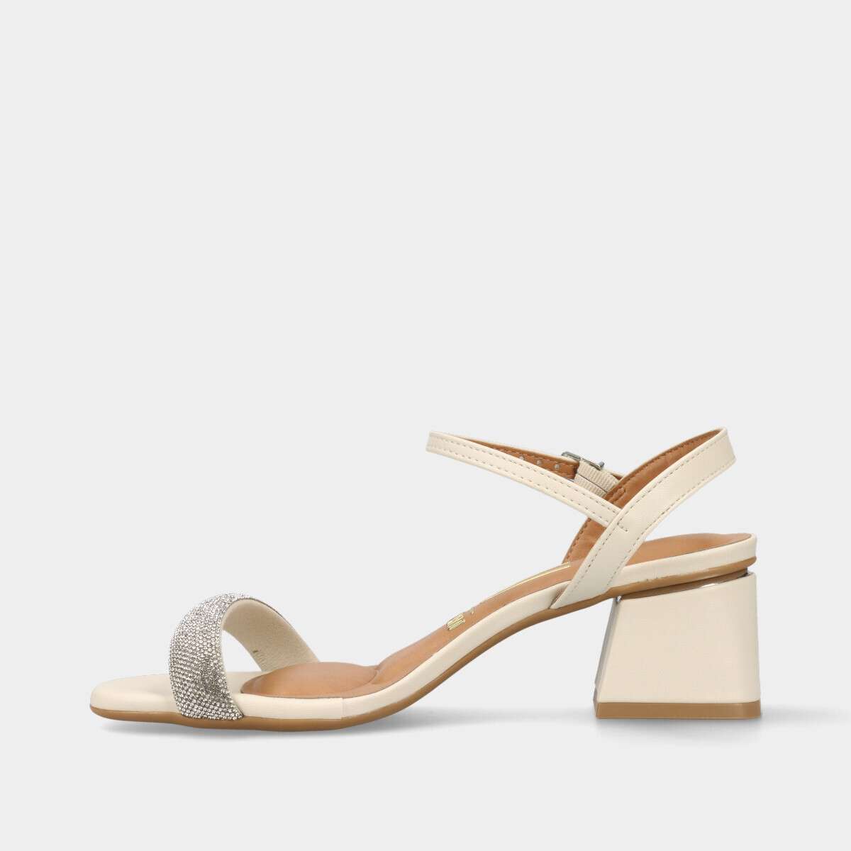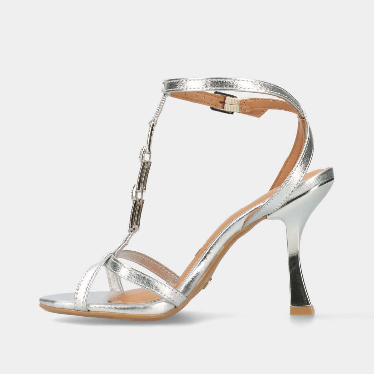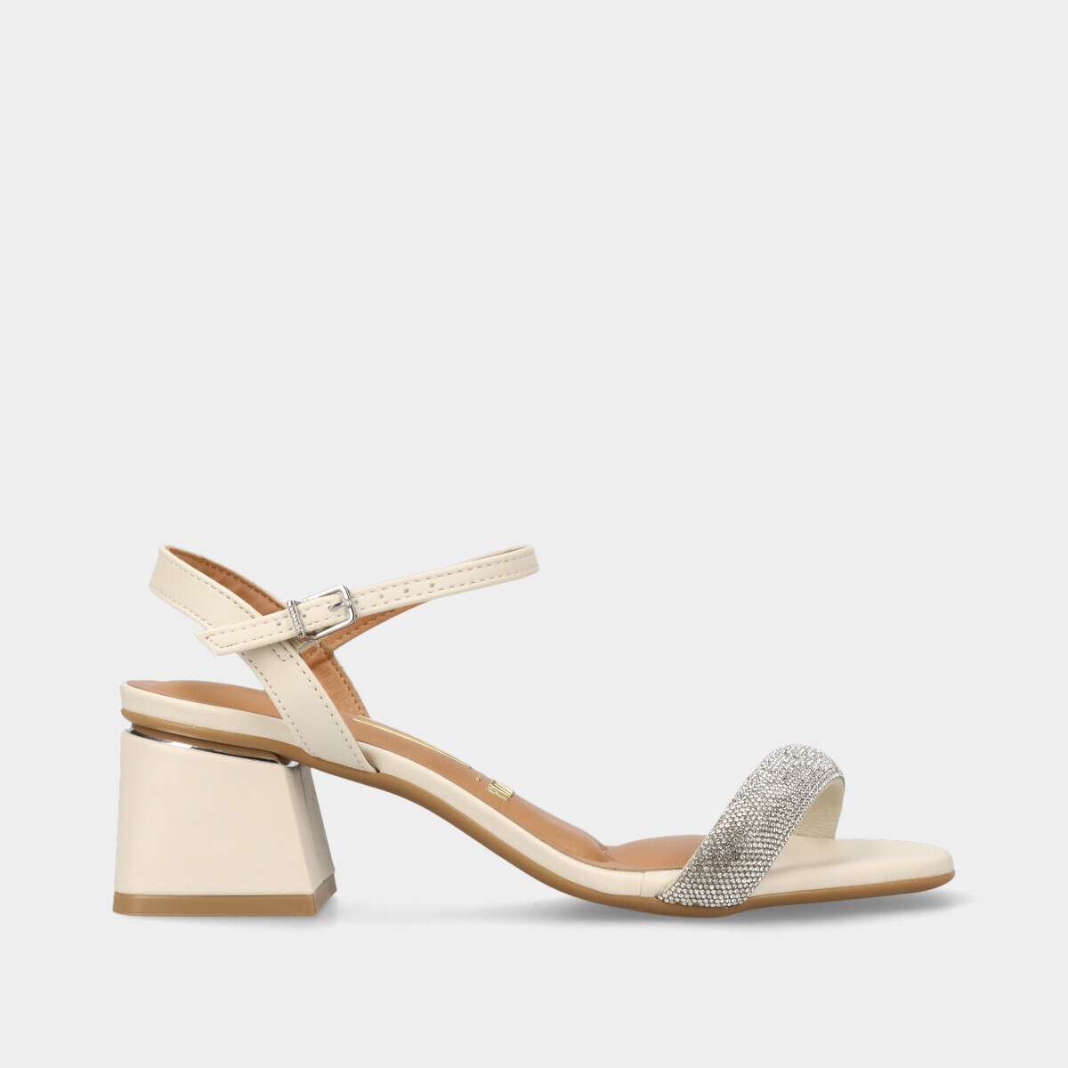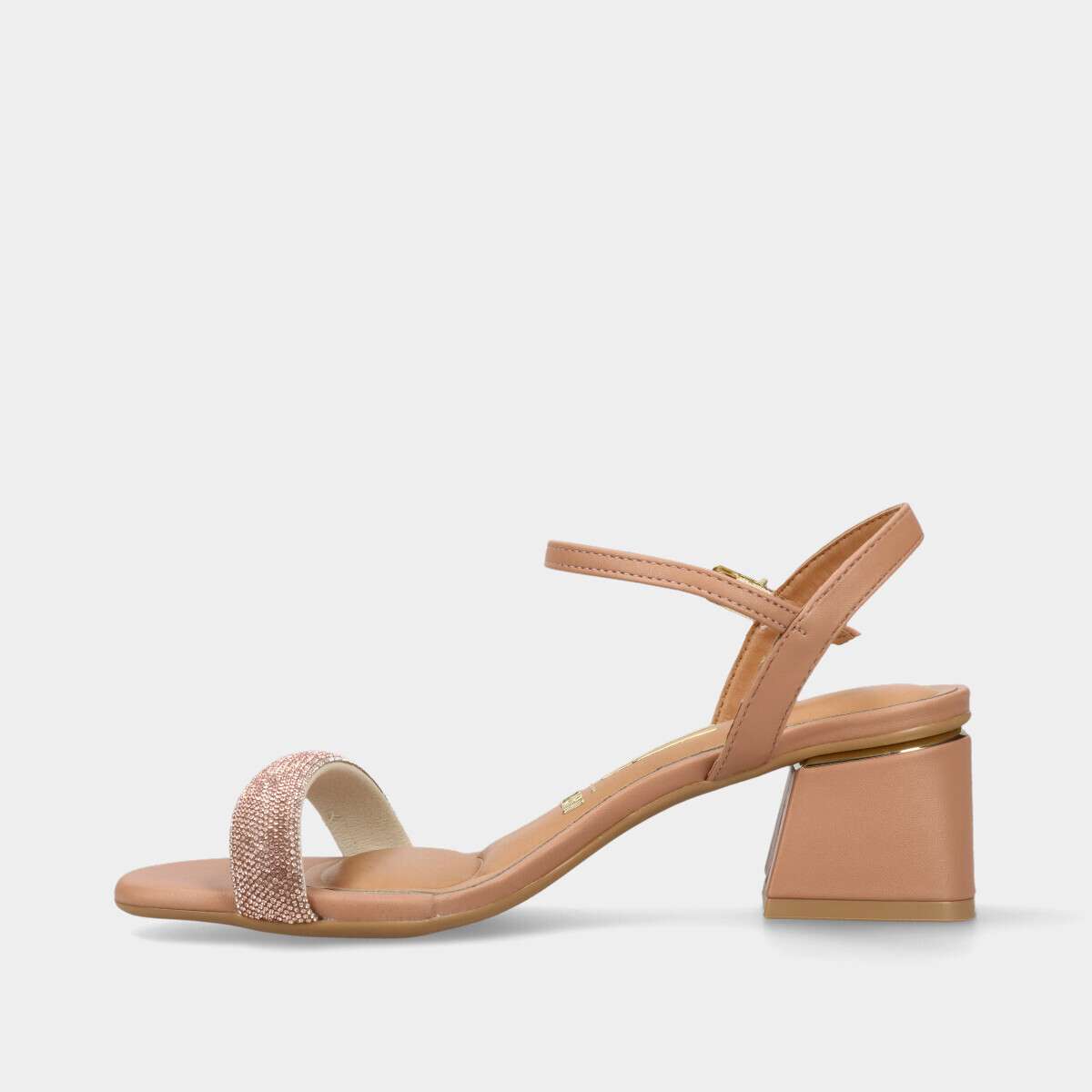 SANDÁLIA DE SALTO COM TIRA DE BRILHANTES E FIVELA