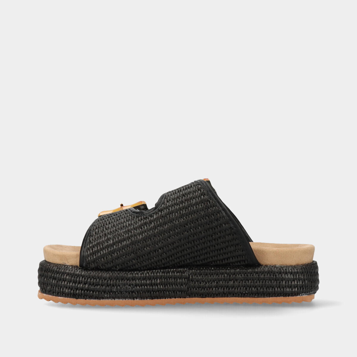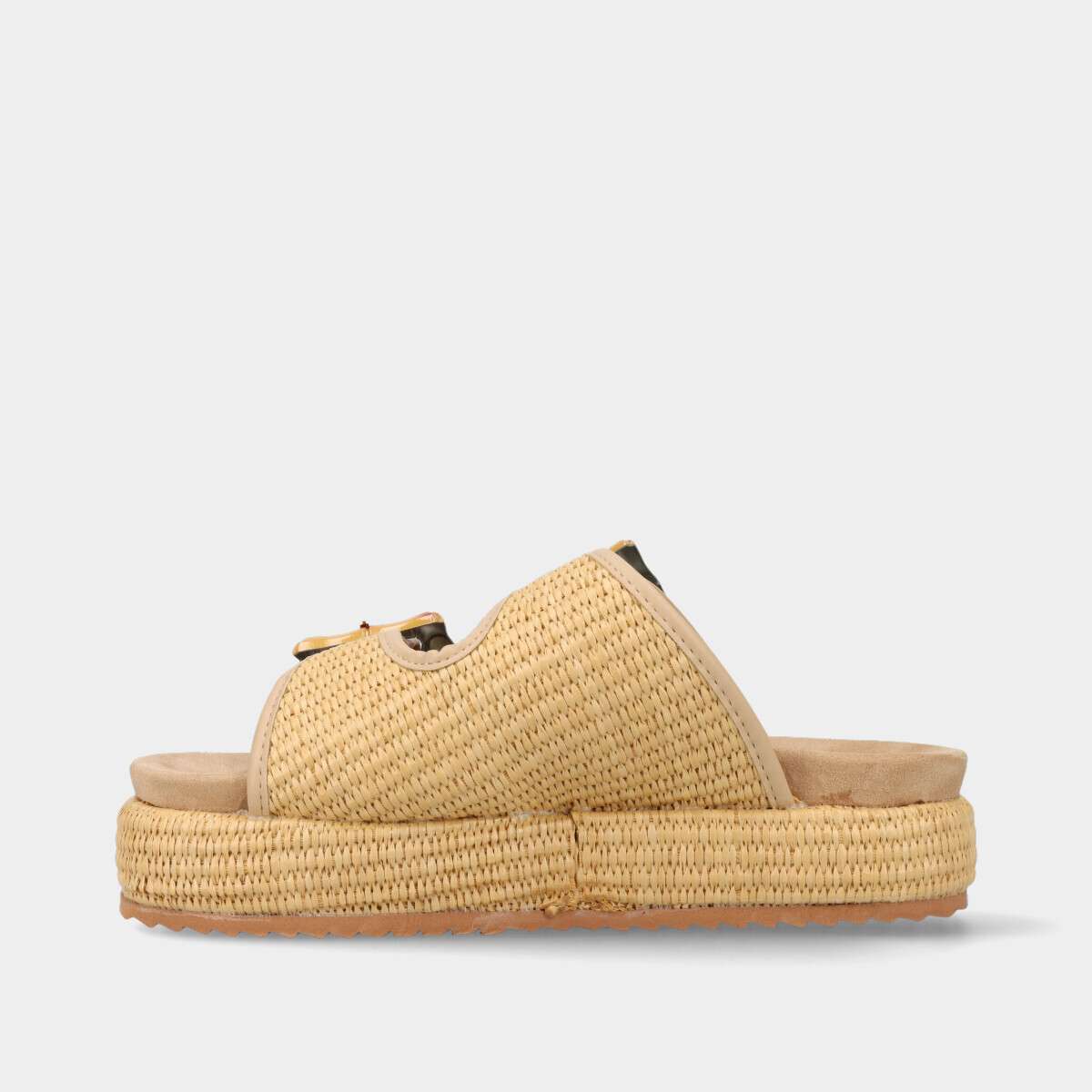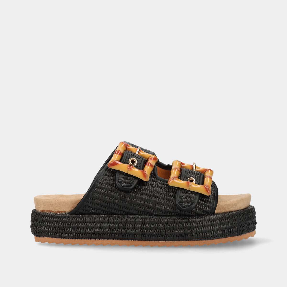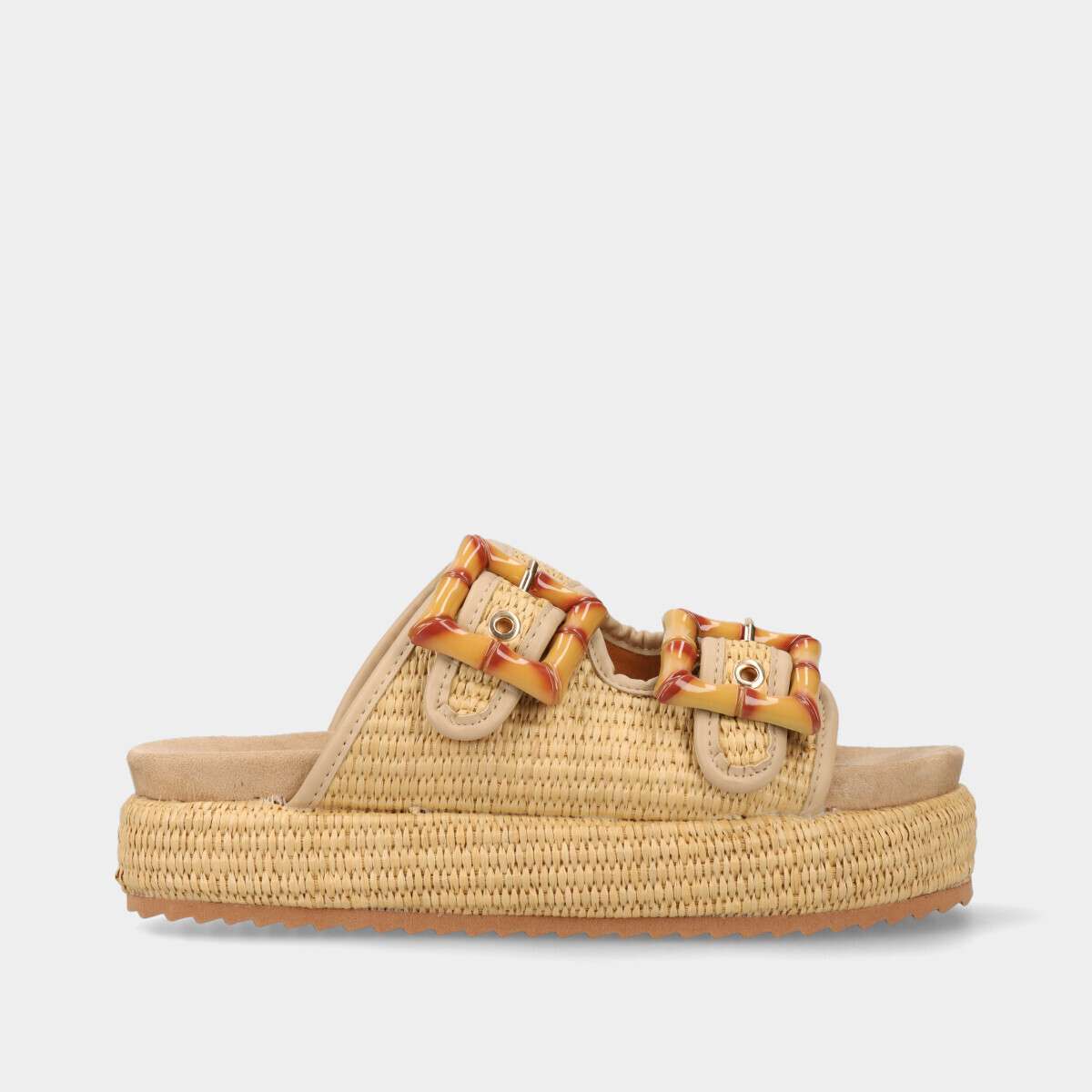 CHINELO DE PLATAFORMA COM EFEITO PALHA E FIVELAS