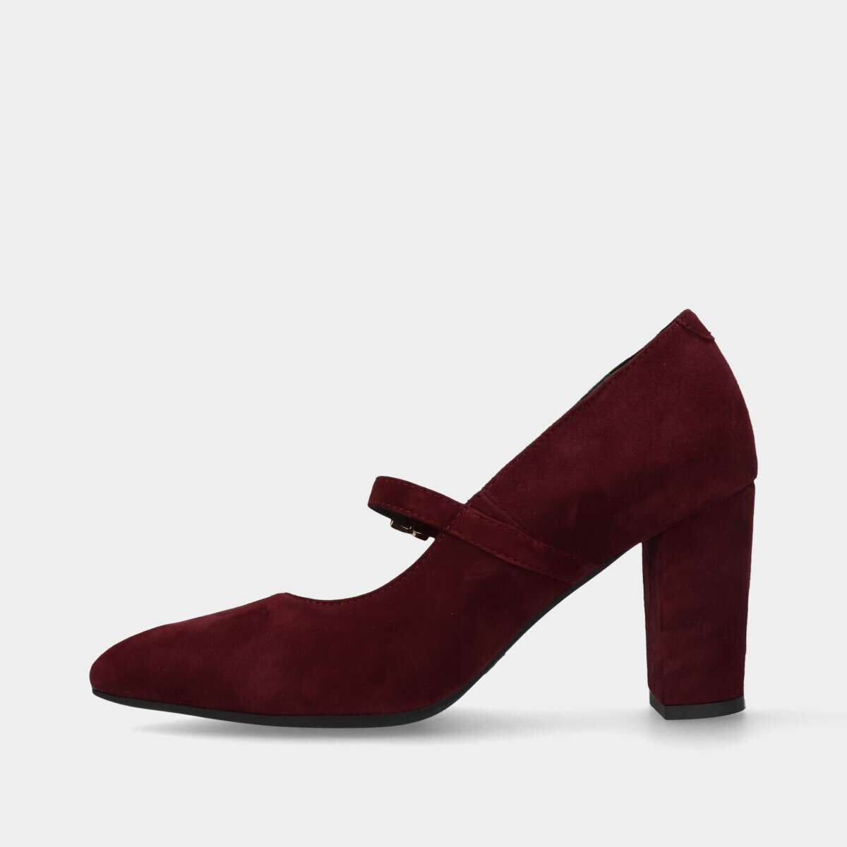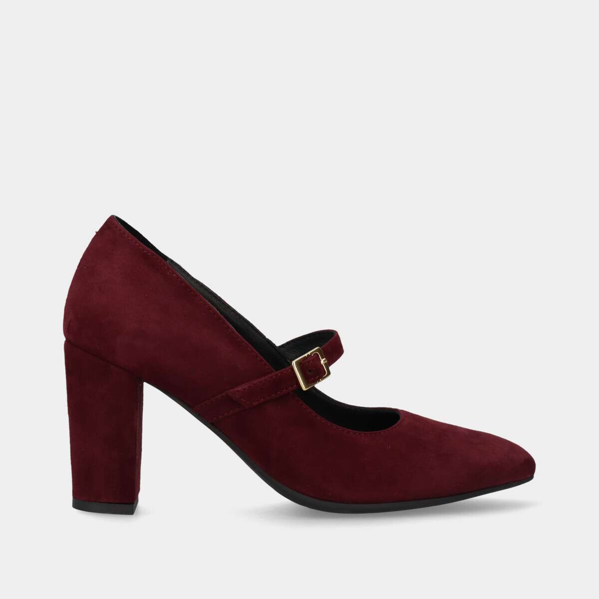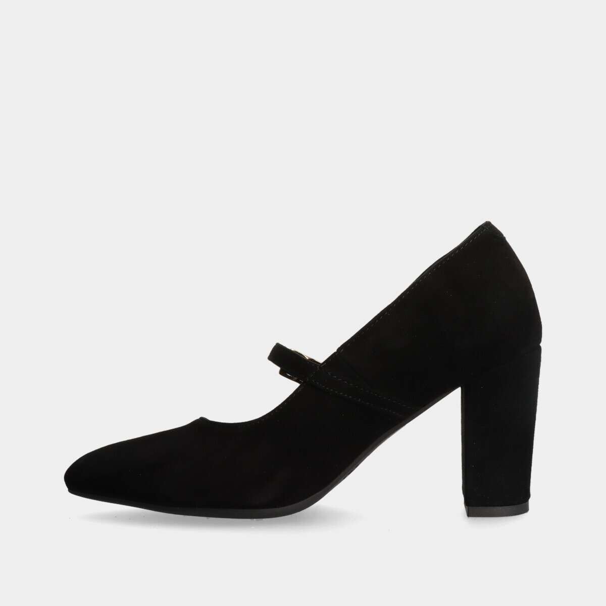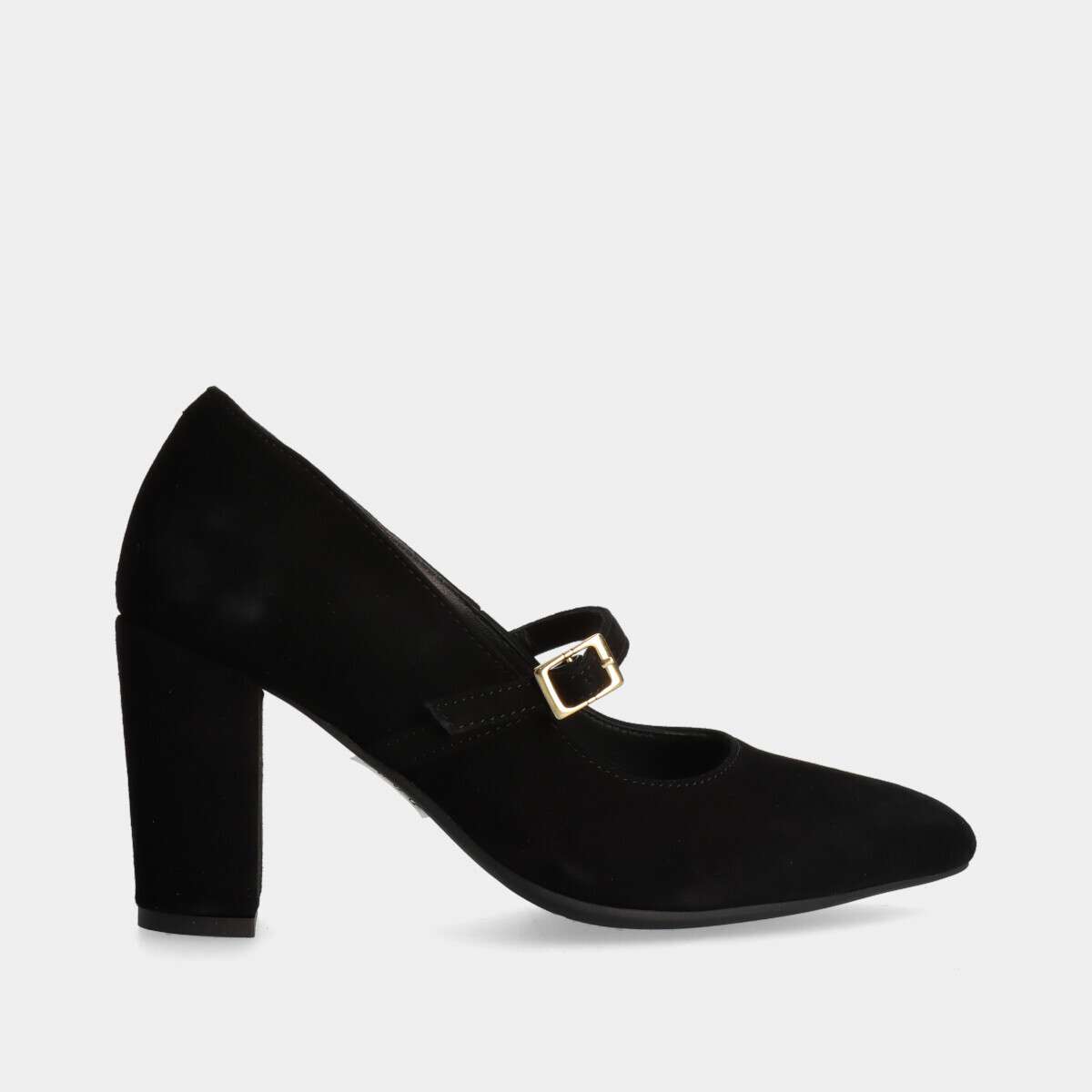 54,99 €42,99 €Sapato Mary Jane em pele nobuk com tacão de 8cm e sola em borracha. -