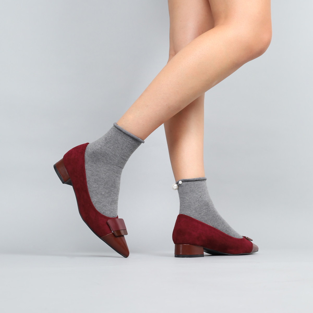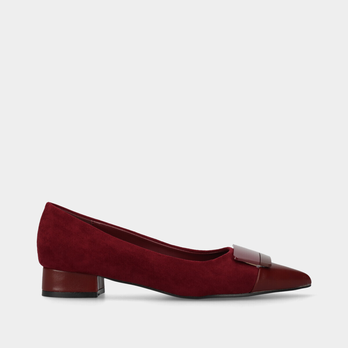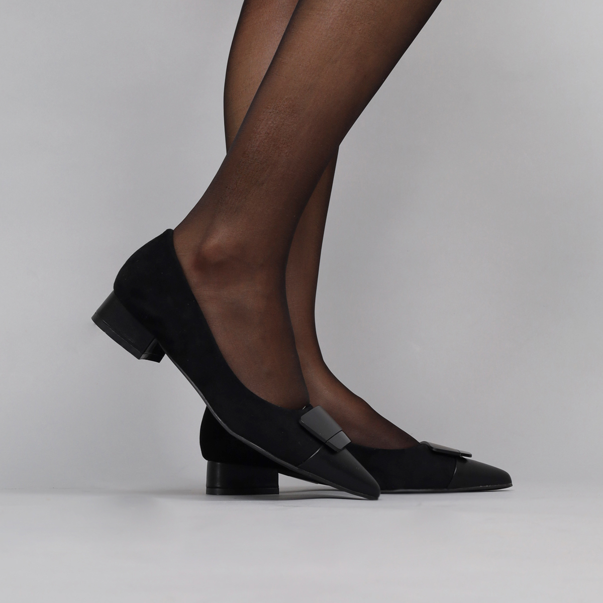 SAPATO DE SALTO BAIXO COM APLICAÇÃO NA BIQUEIRA