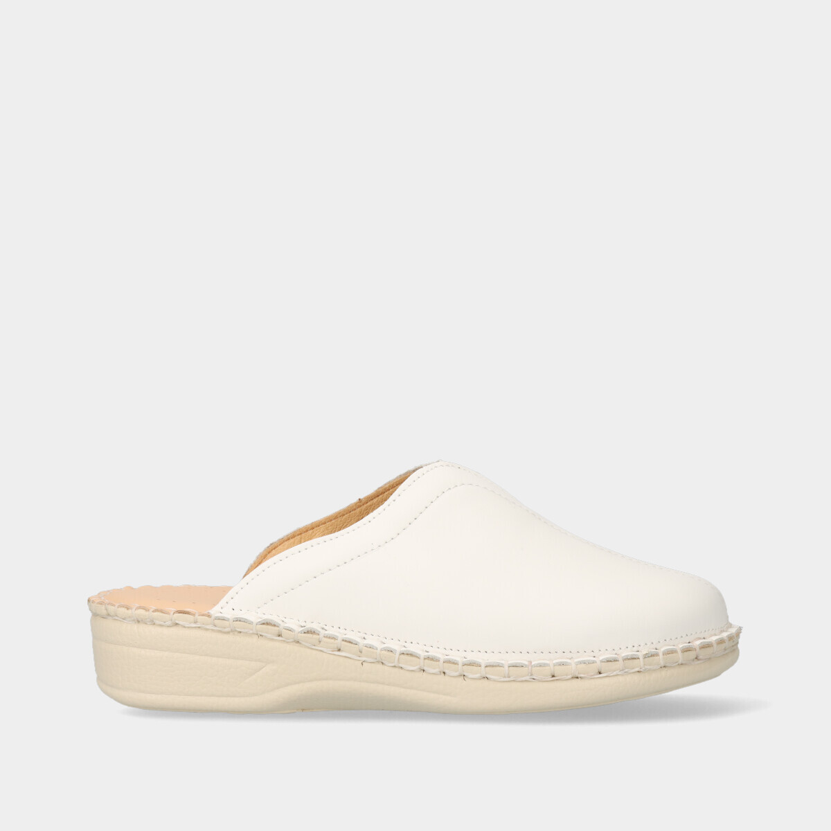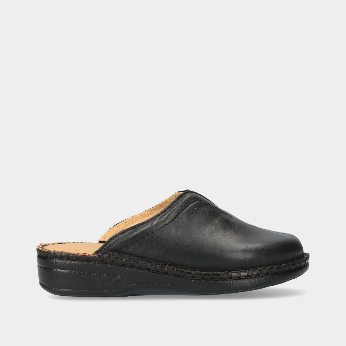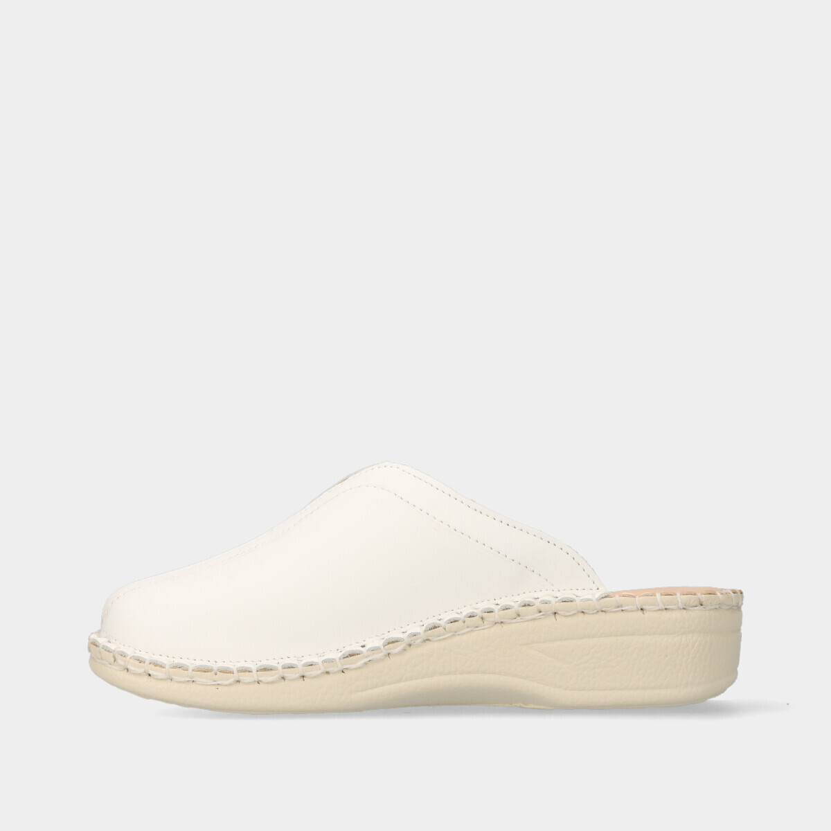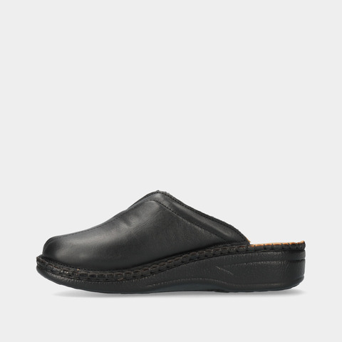 Chinelo de conforto para mulher, leve, com pequena cunha de 3,5 cm, parte superior em pele macia e palmilha confortável. Fabricado em Portugal.