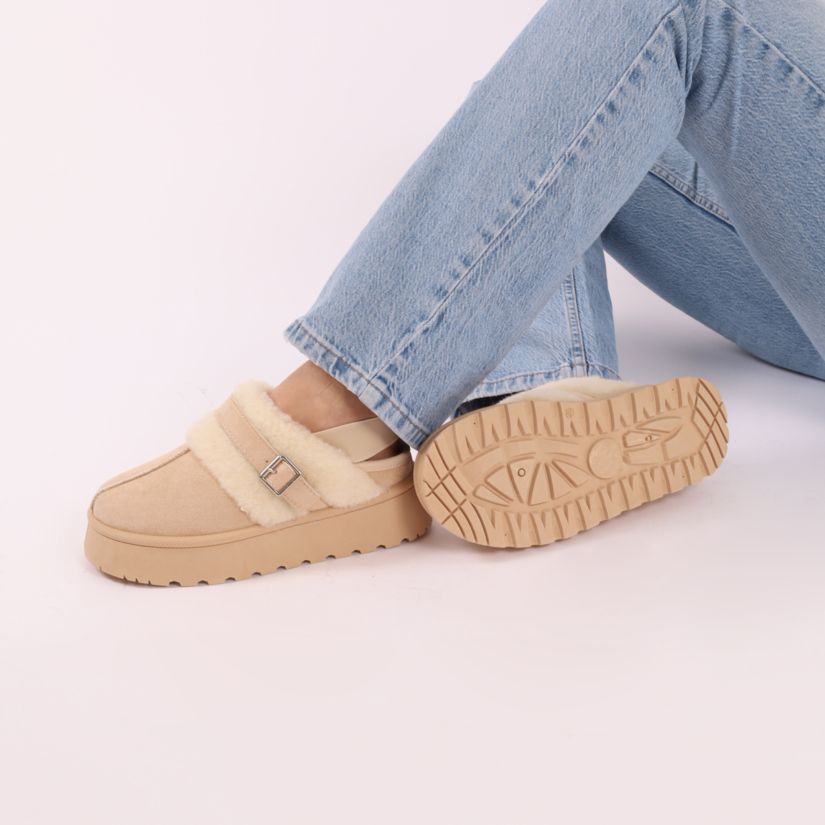 23,99 €14,99 €Chinelos de pelo para mulher, com elástico traseiro, interior em pelo quente, sola de plataforma, biqueira redonda e fivela decorativa. Ideais para os dias frios,… -