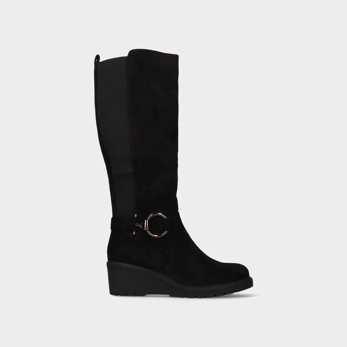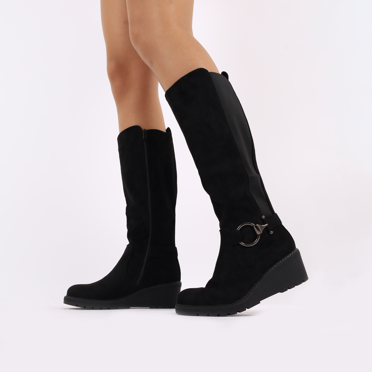 BOTA DE CUNHA E CANO ALTO COM ELÁSTICO FECHO