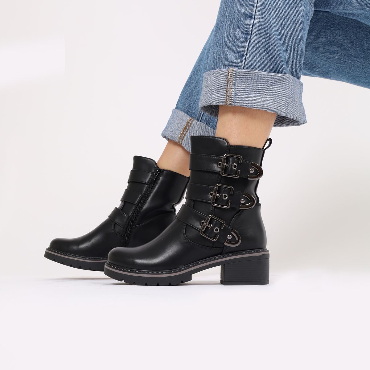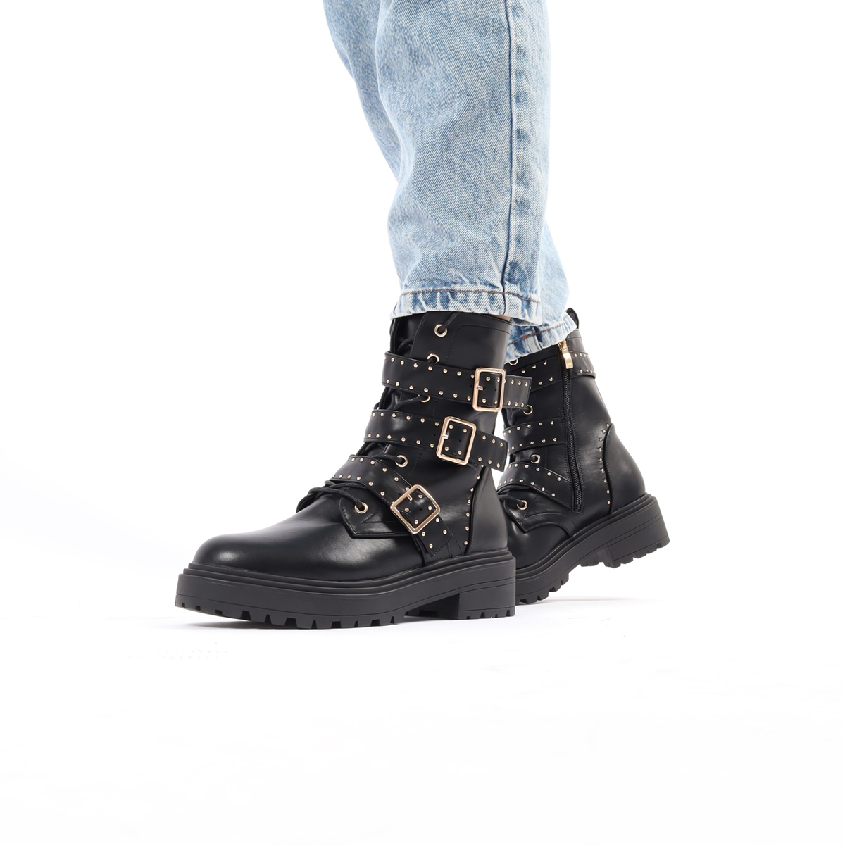 BOTA CASUAL COM FIVELAS DECORATIVAS E FECHO