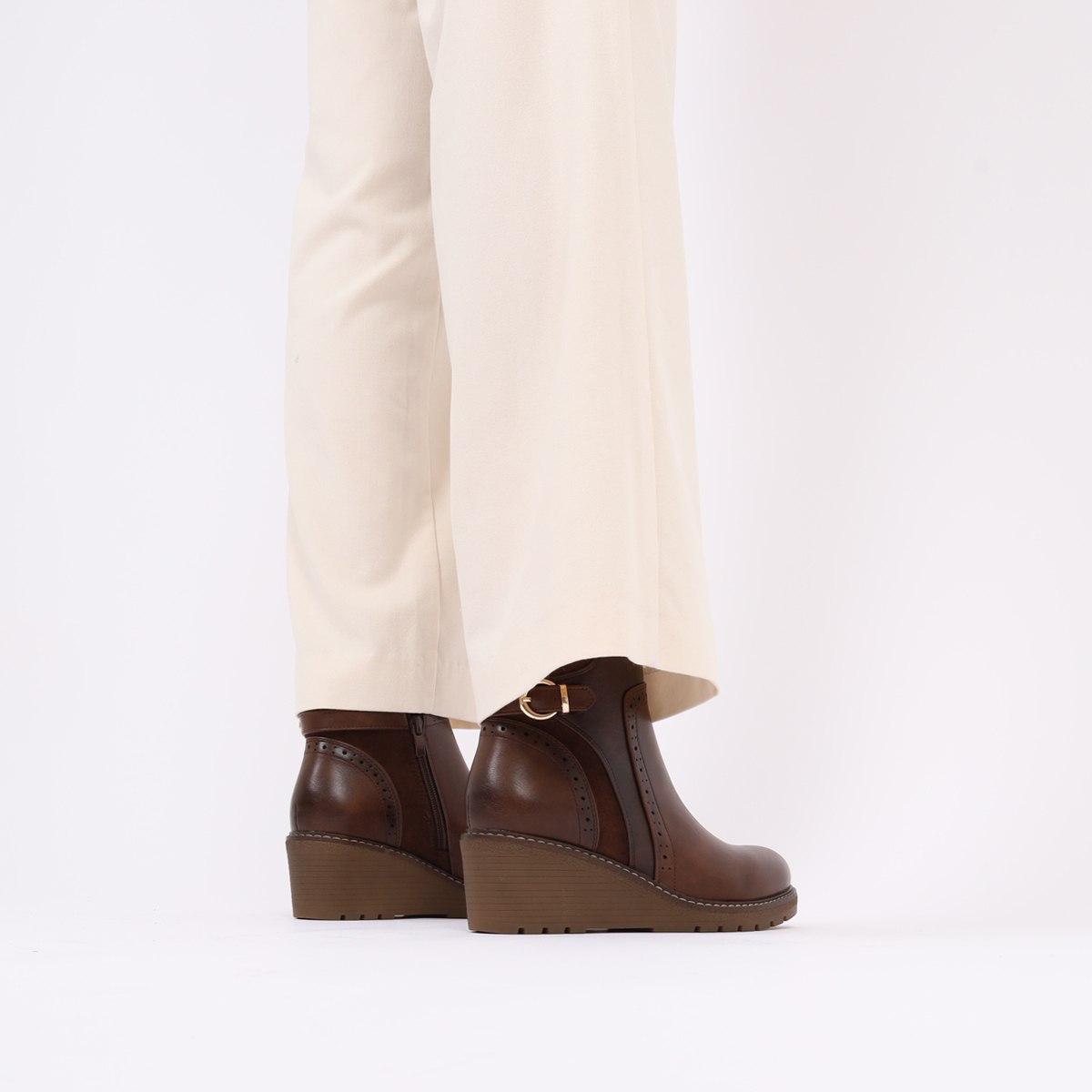 BOTIM DE CUNHA COM FIVELA DECORATIVA E FECHO