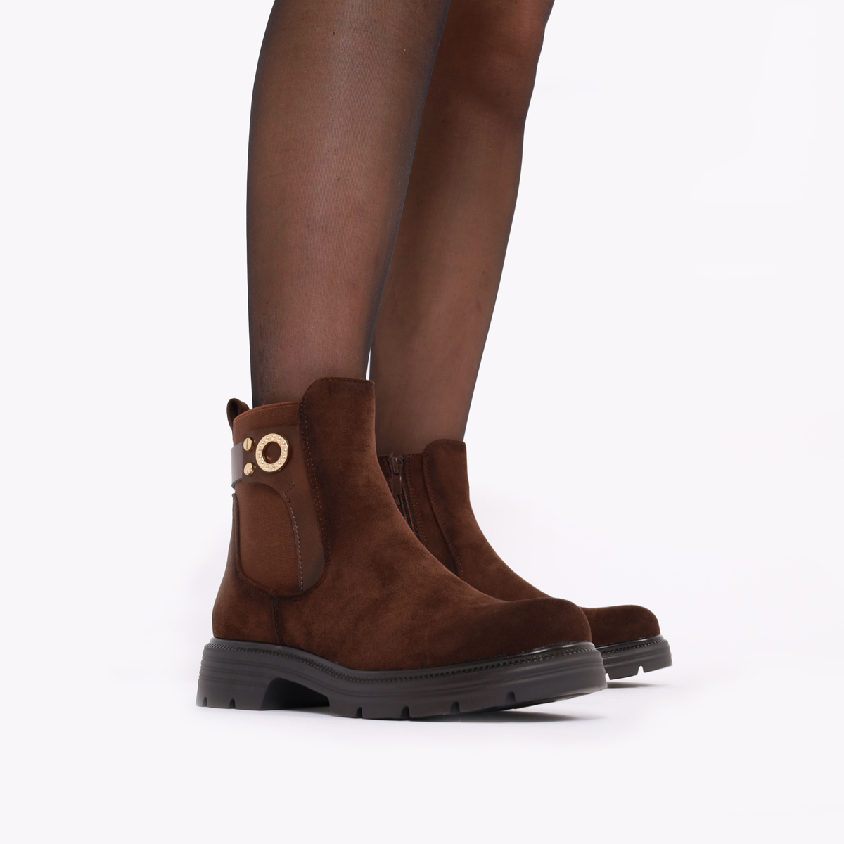BOTA CHELSEA EM PELE CAMURÇA DE ELÁSTICO E FECHO