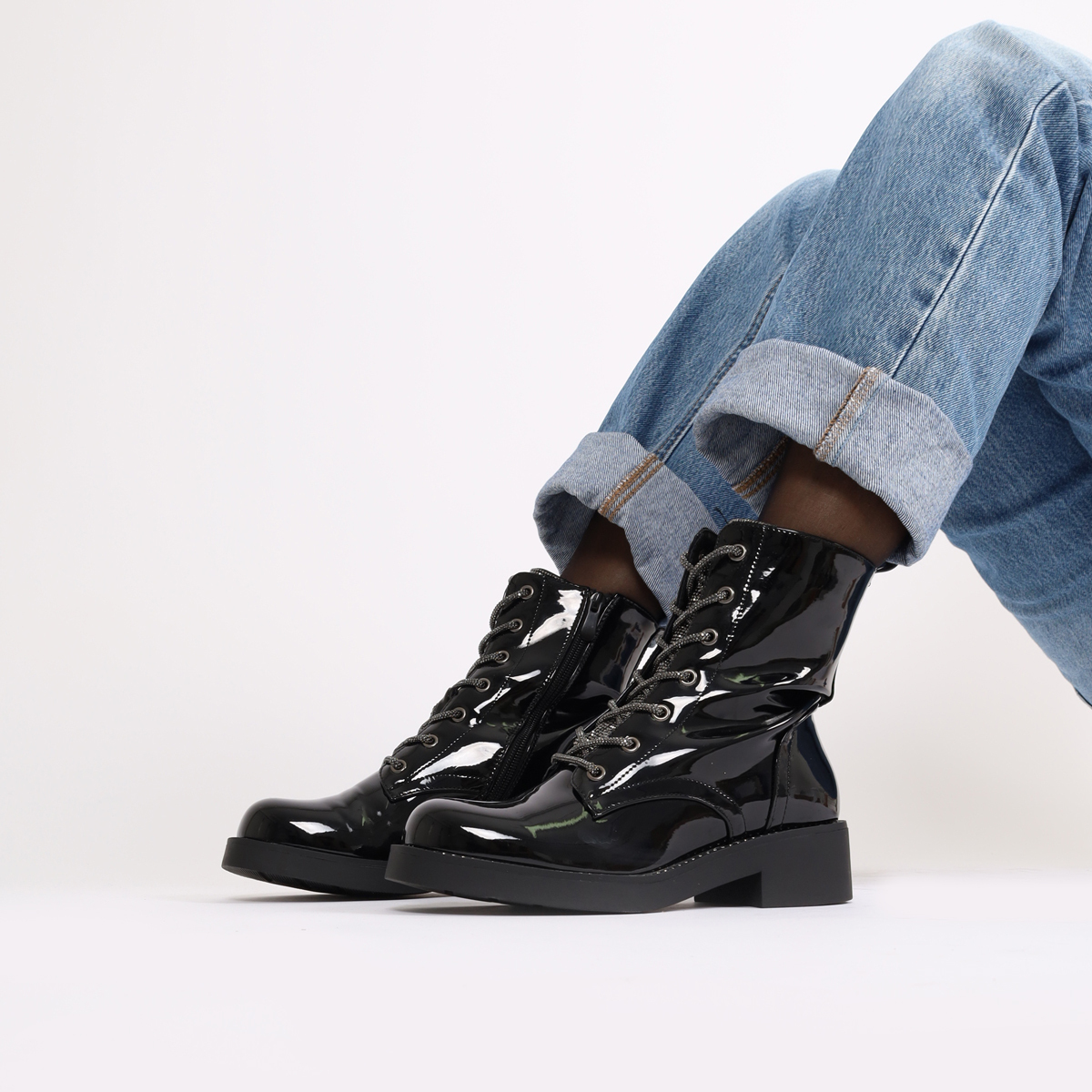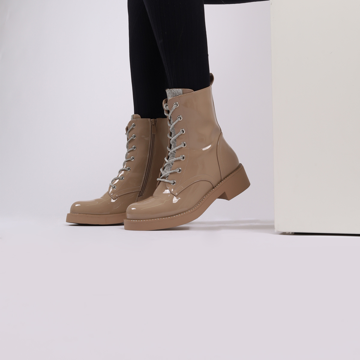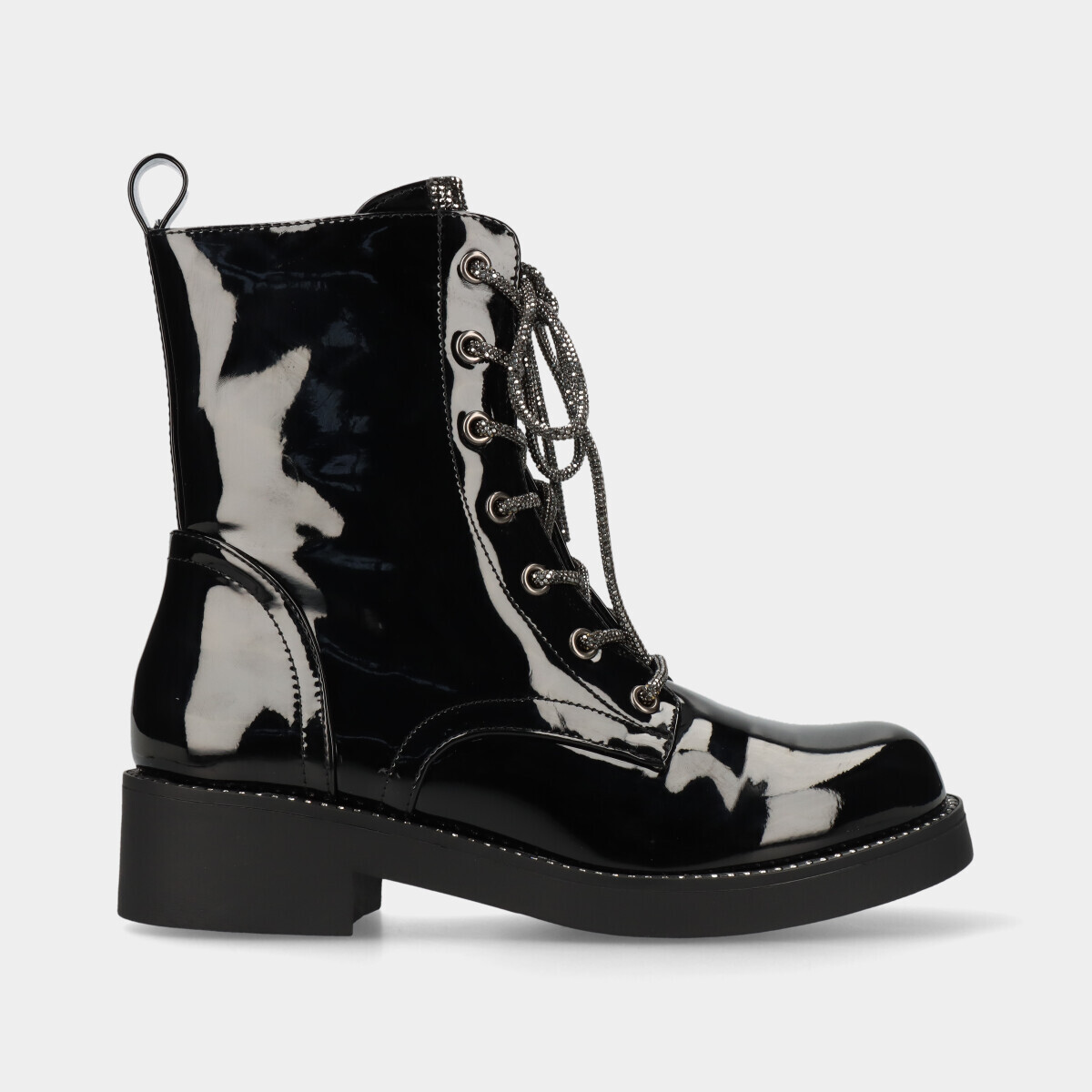 BOTA CASUAL COM EFEITO VERNIZ DE CORDÃO E PALA DE BRILHANTES