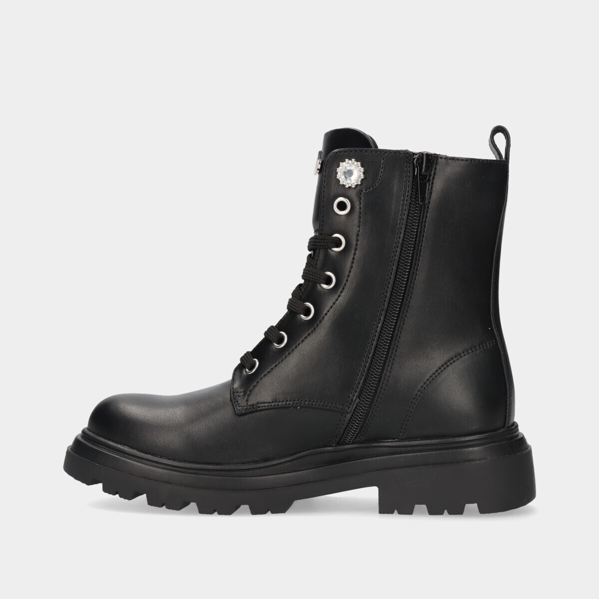 BOTA ESTILO MILITAR EM PELE COM CORDÃO