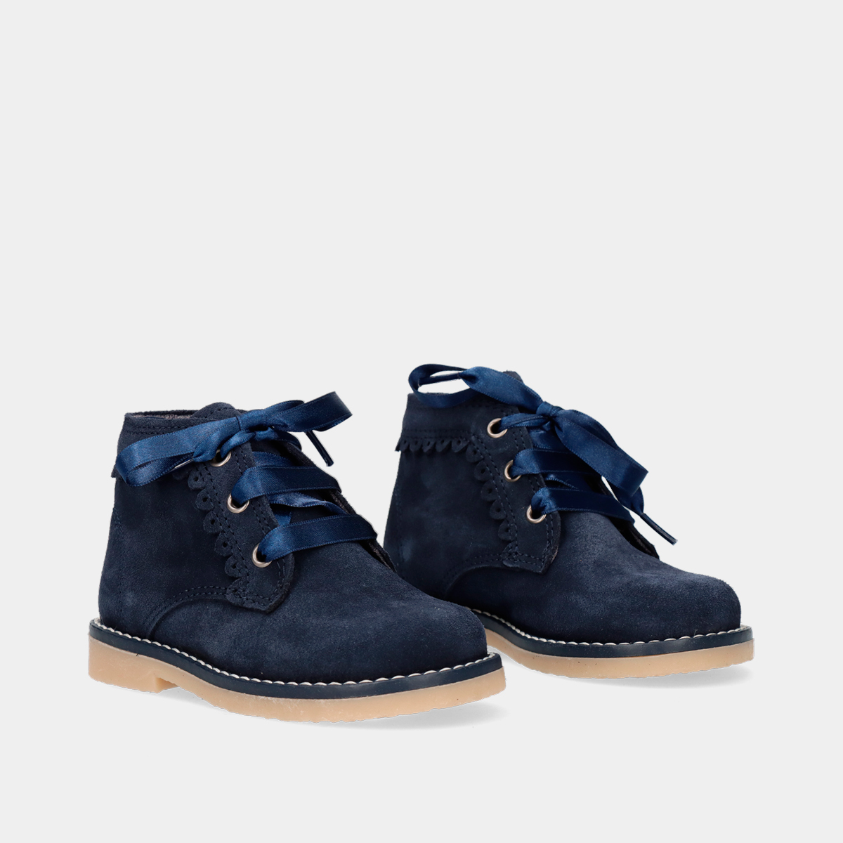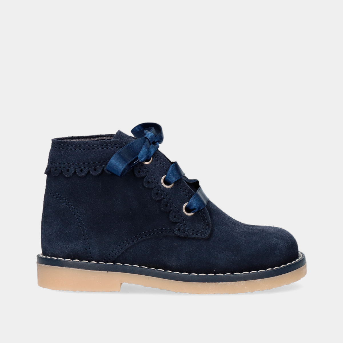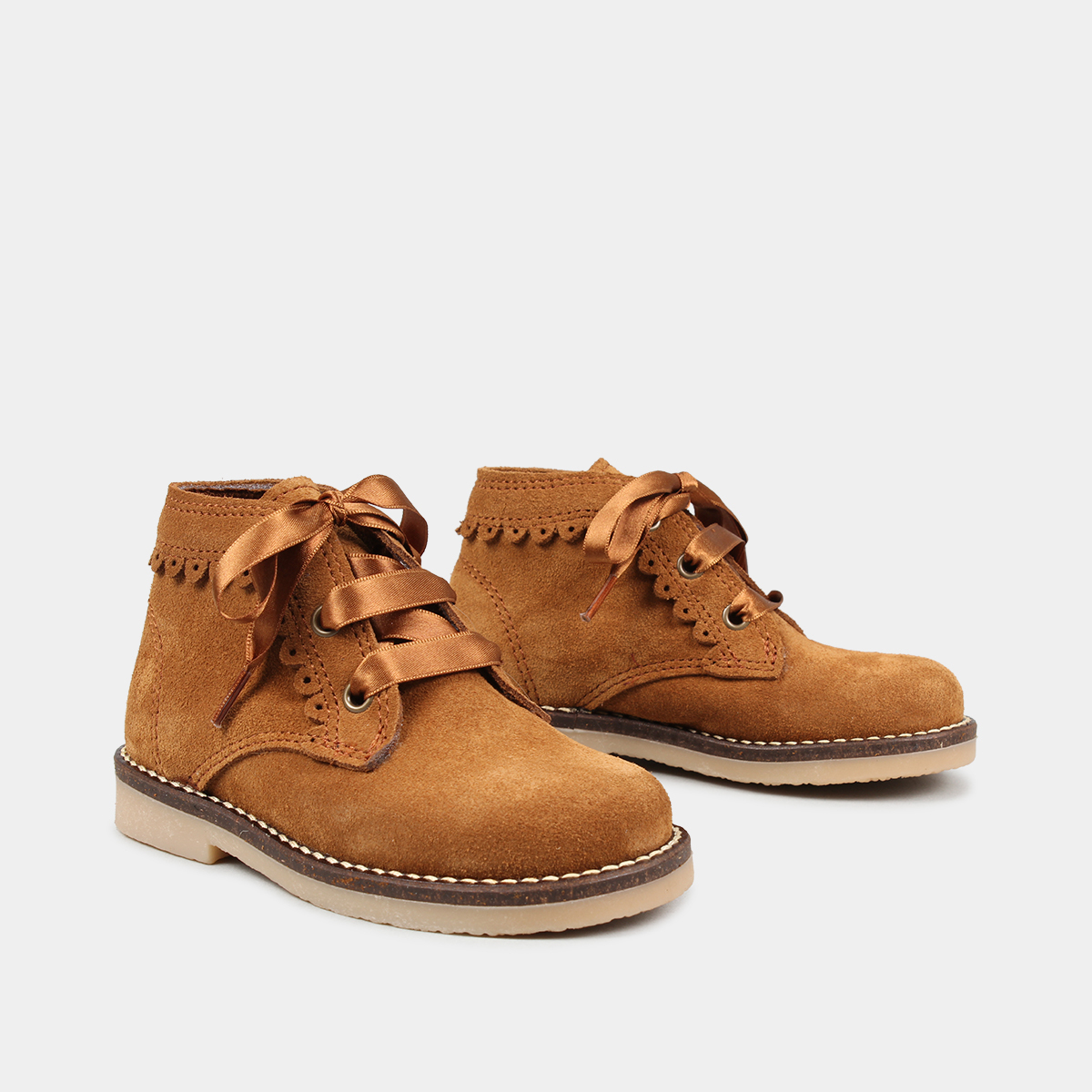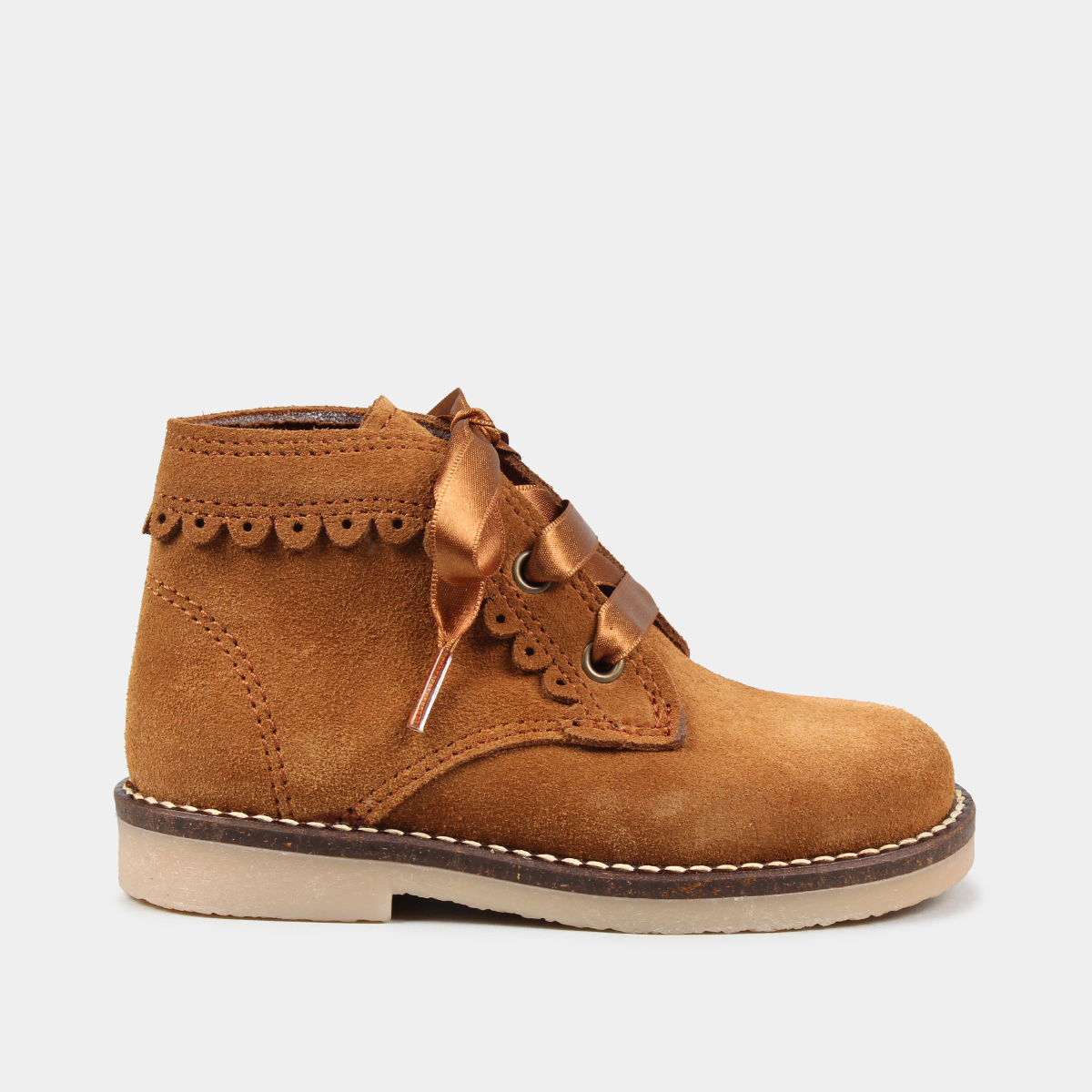 BOTIM EM PELE CAMURÇA DE CORDÃO COM PORMENORES EM RENDA US