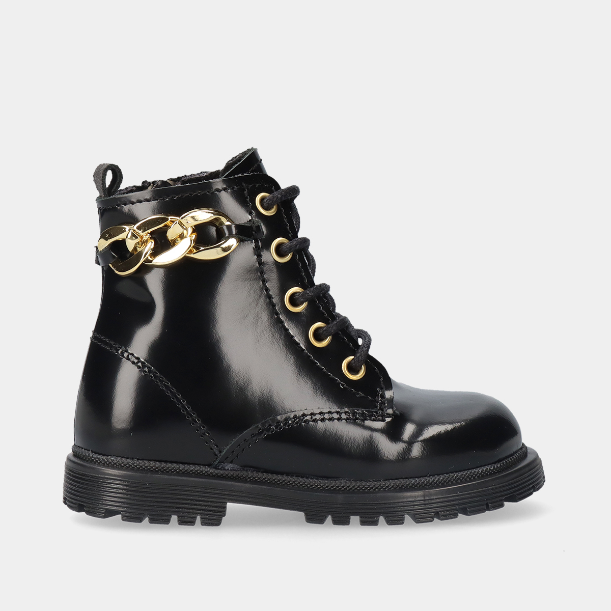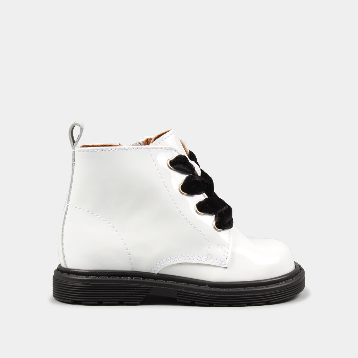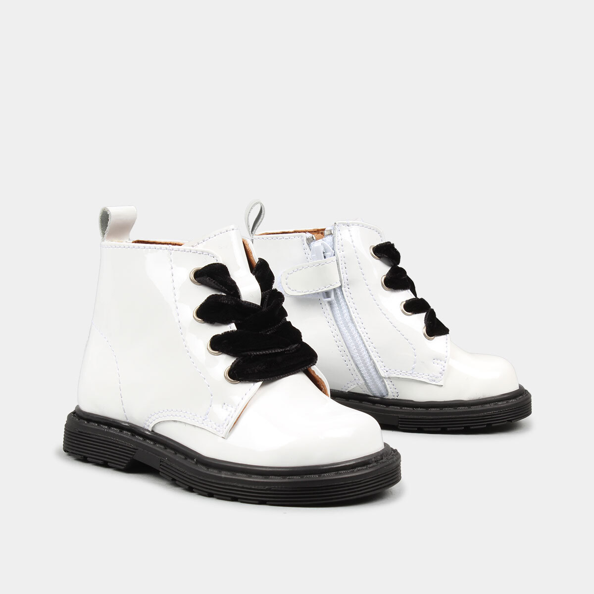 BOTA EM PELE VERNIZ COM CORDÕES DE VELUDO BABYCOOL