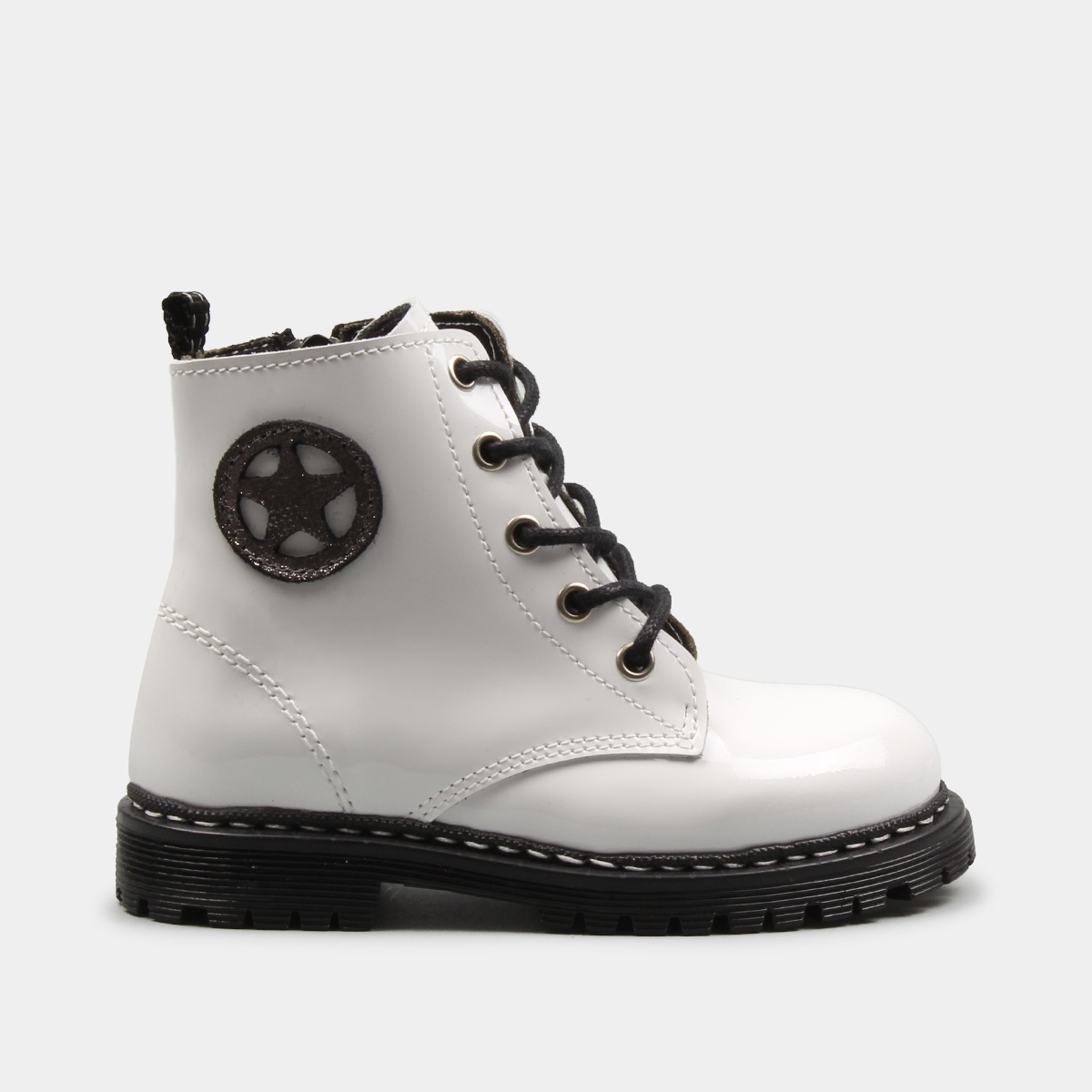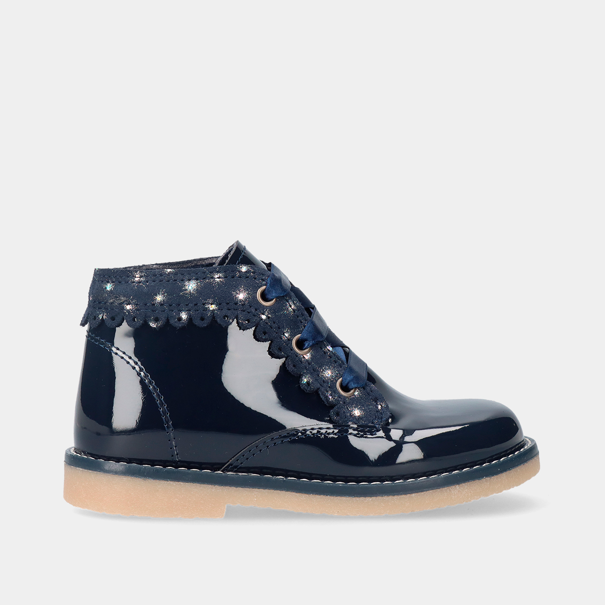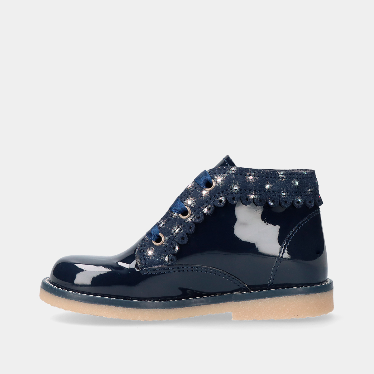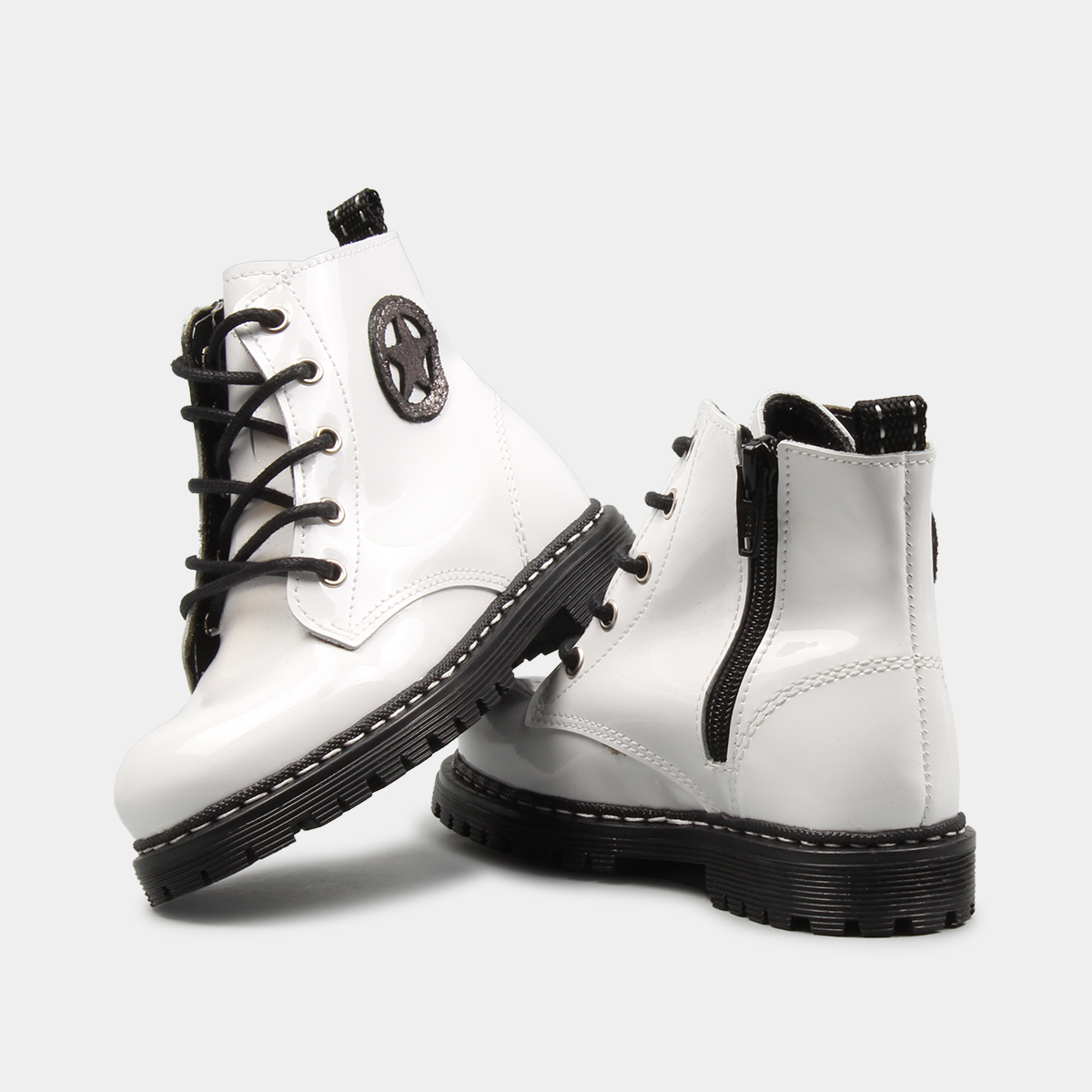 BOTA EM PELE VERNIZ COM CORDÕES DE VELUDO BABYCOOL
