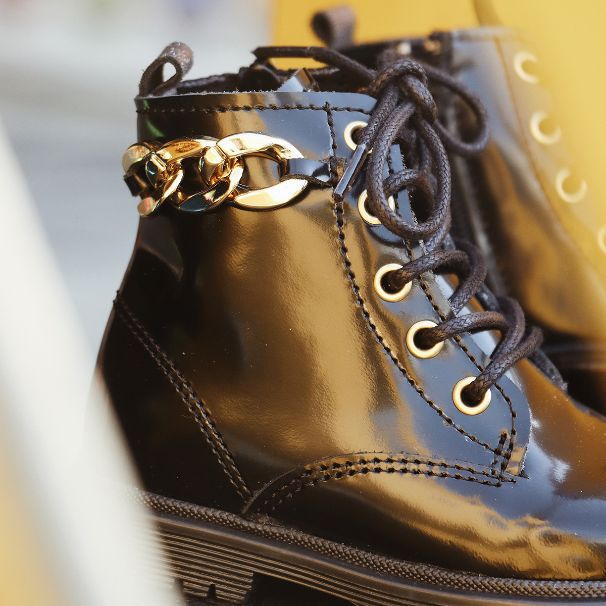 BOTA MILITAR EM PELE COM PORMENOR EM CORRENTE US