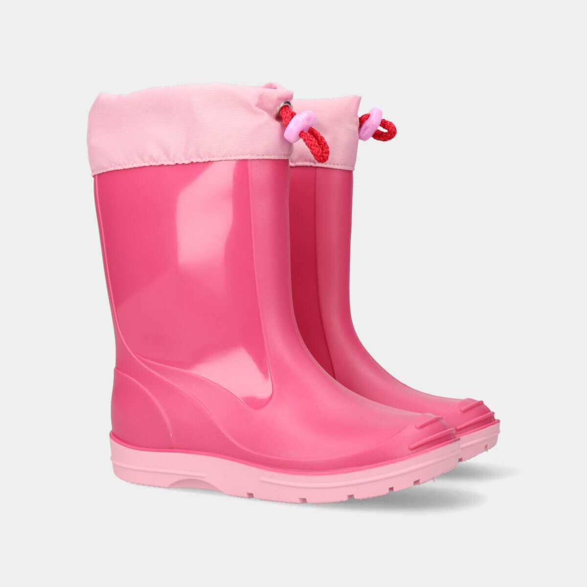 Galocha na cor rosa com ajuste na perna.