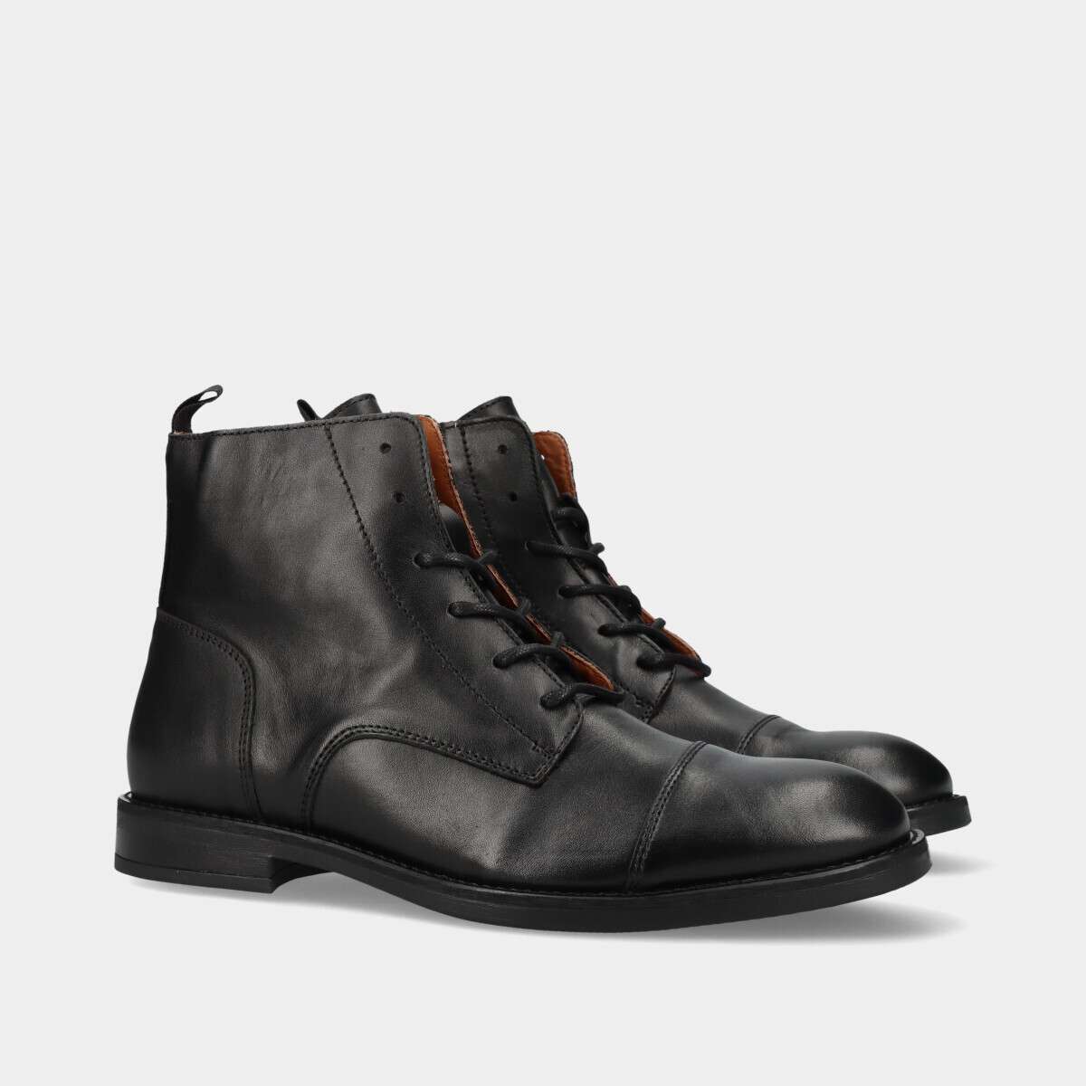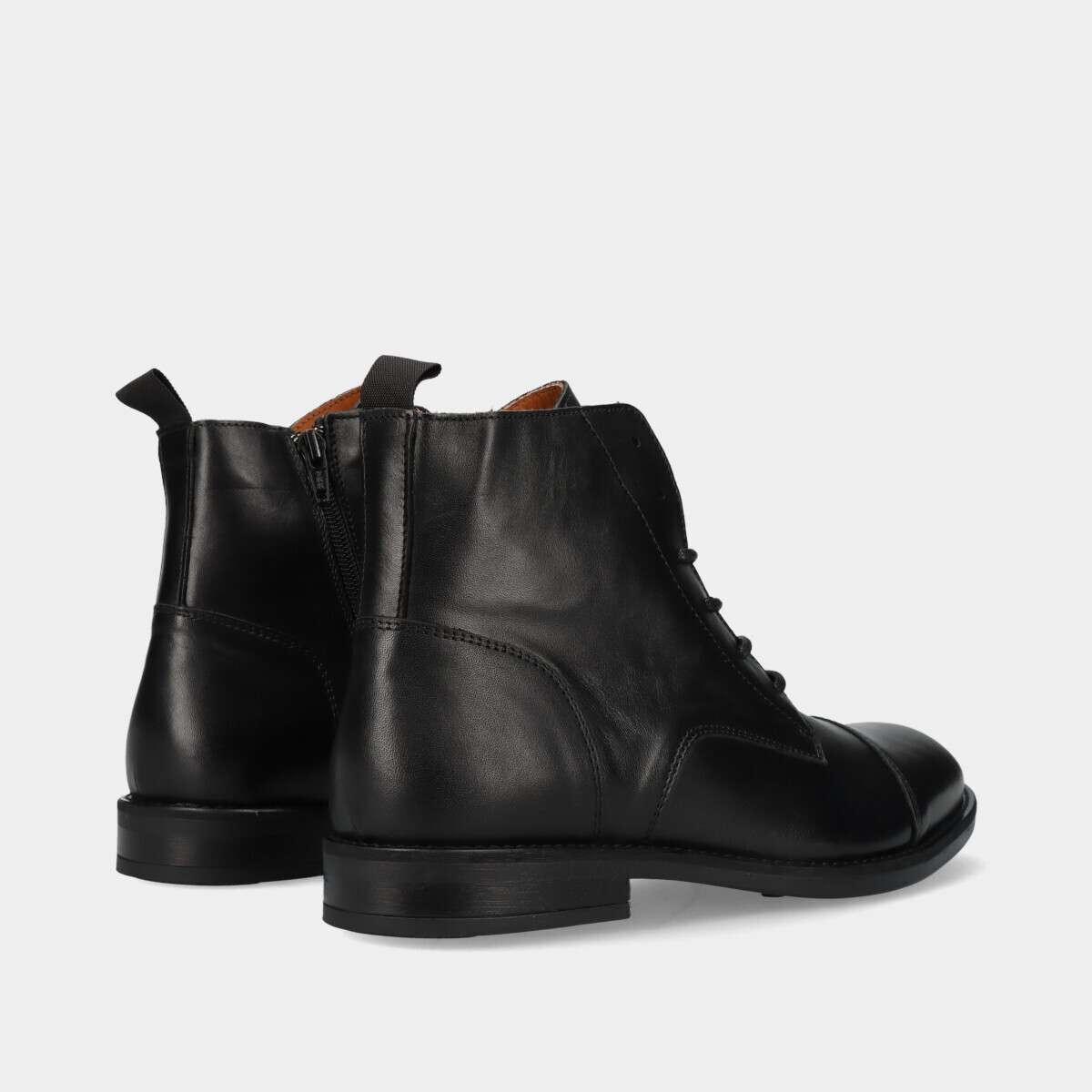Botim em pele na cor preta com cordão e fecho lateral.