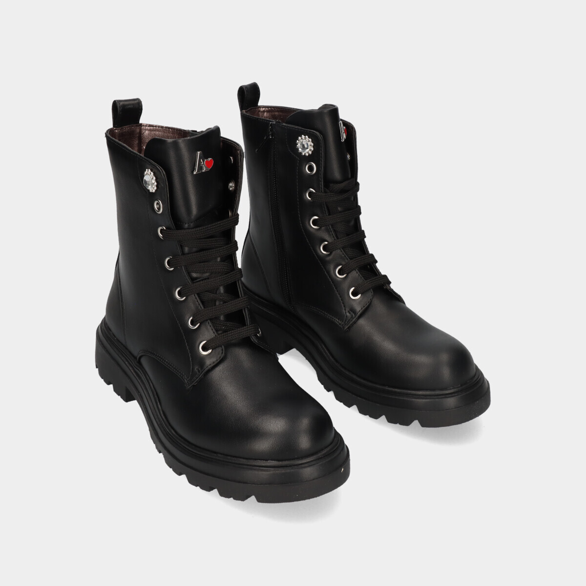 Adiciona um toque de glamour ao teu visual com as botas pretas de cordão e fecho da marca Asso, com aplicações de diamantes nos ilhós!