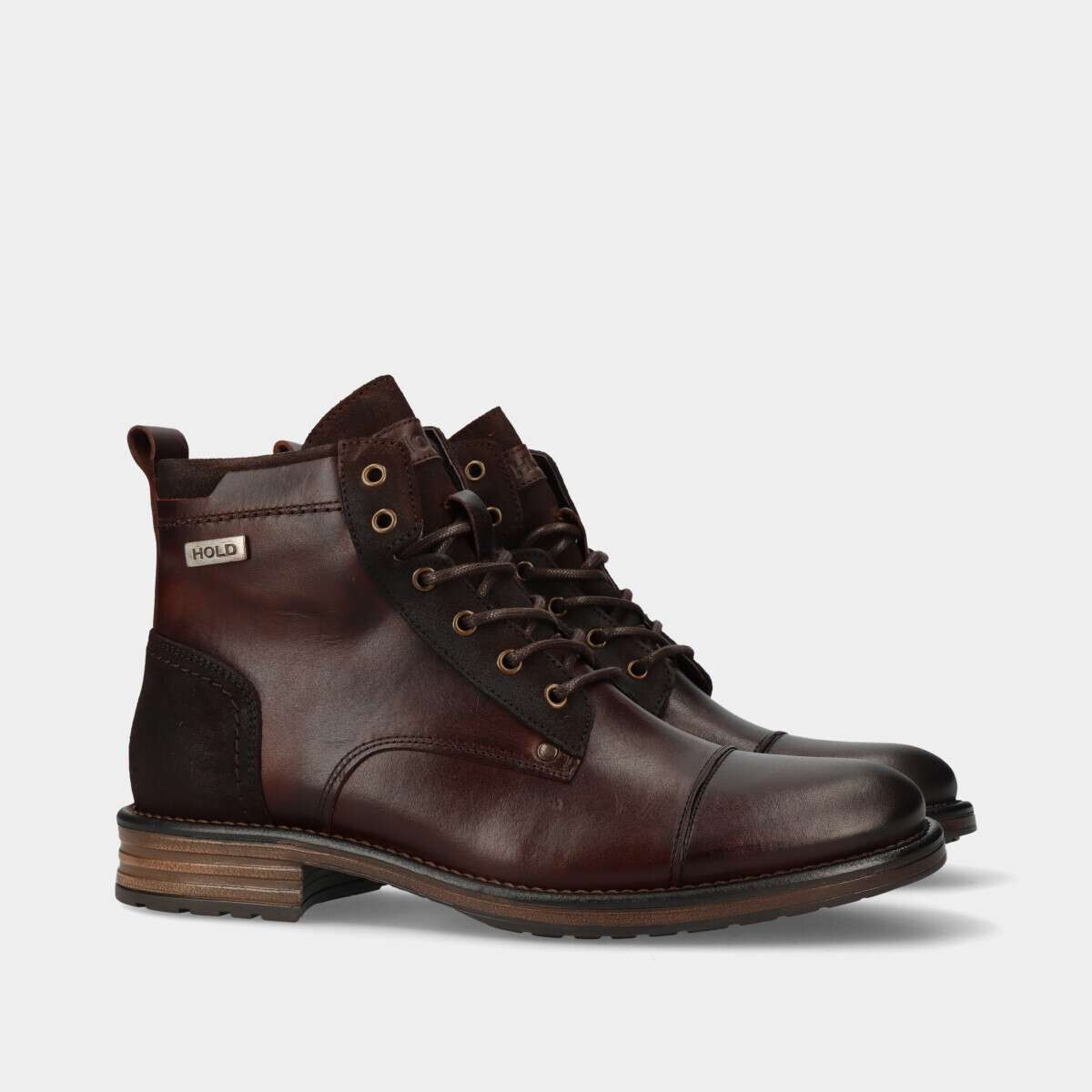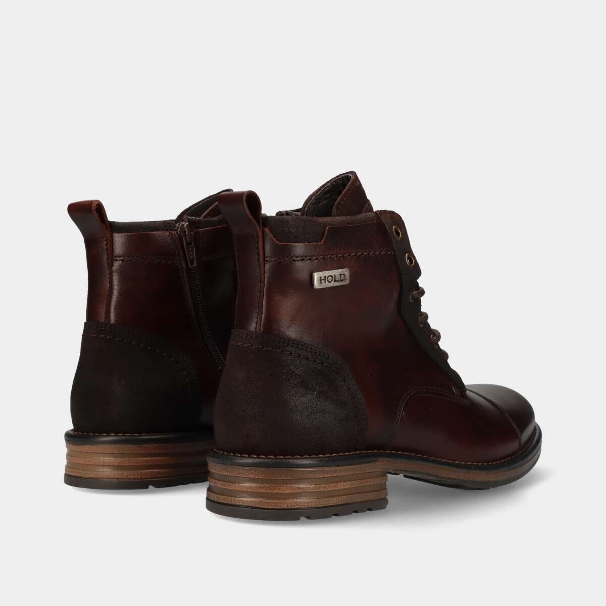 Botim em pele na cor castanha com cordão e fecho lateral.