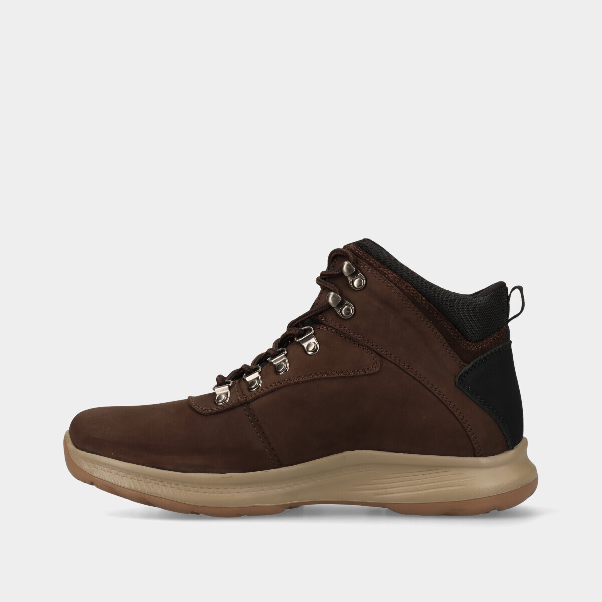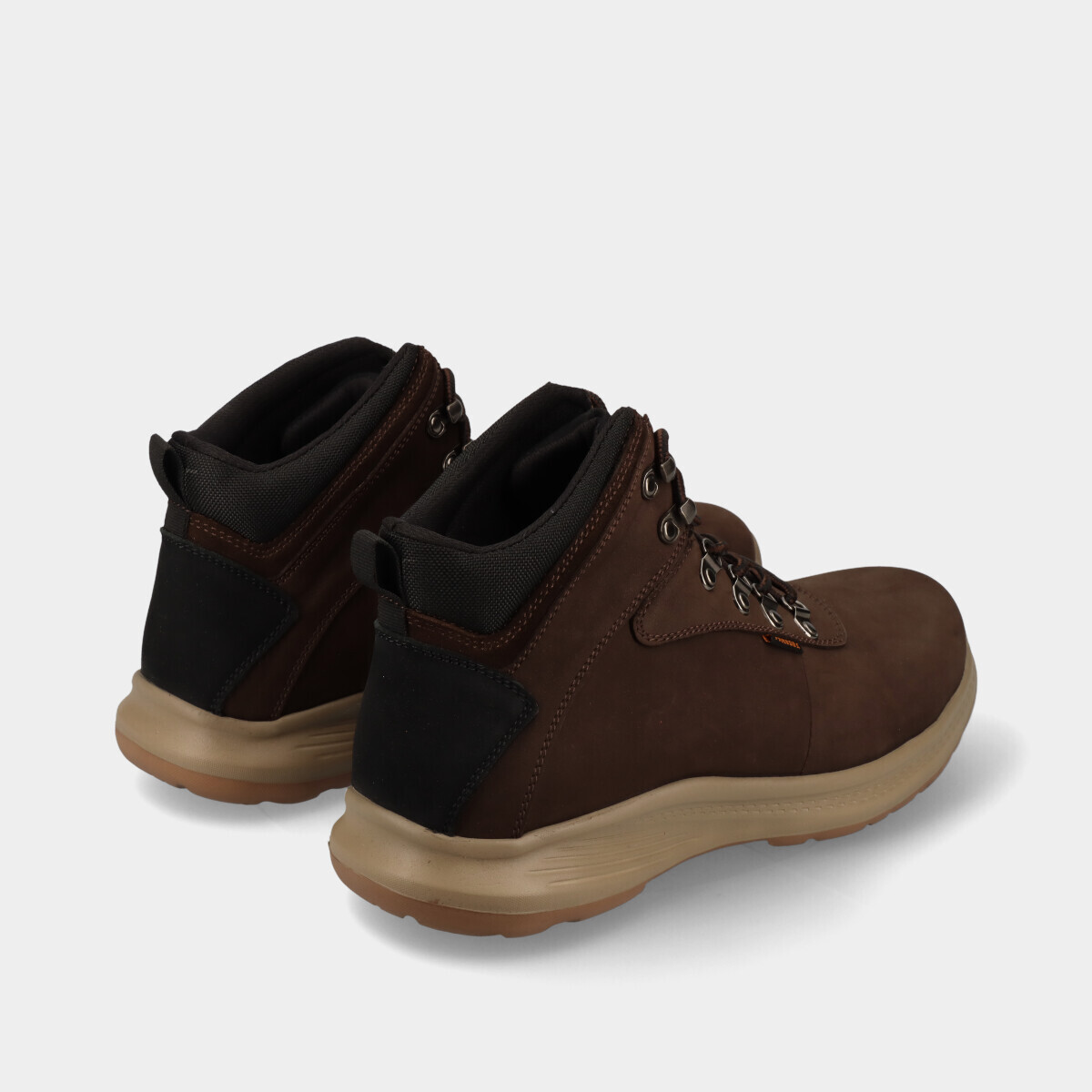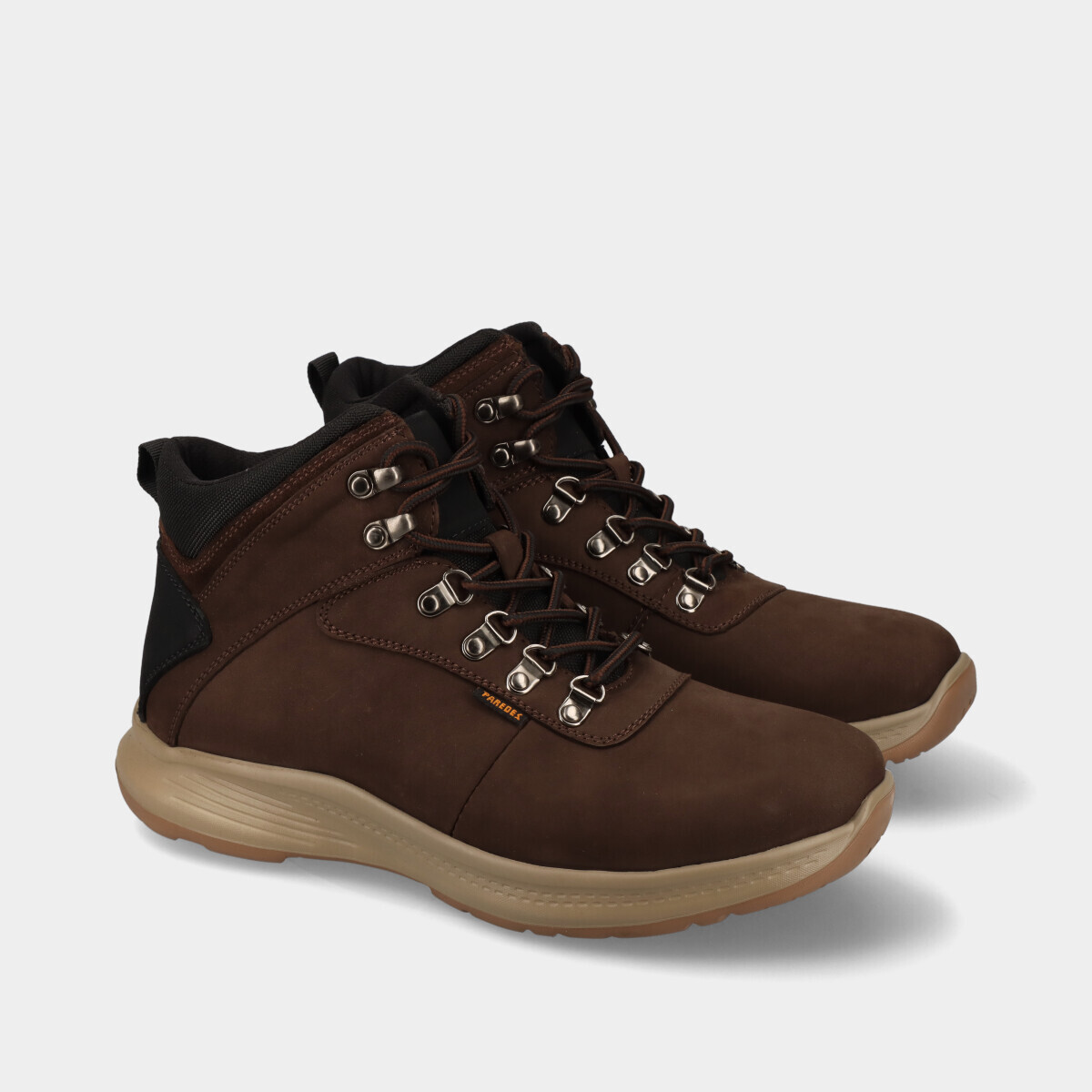 Botas para homem em pele nobuck castanho, desenhadas para oferecer conforto total, com materiais suaves e flexíveis, palmilha de espuma e cano médio que proporciona bom suporte ao tornozelo sem adicionar peso. Ideal para quem procura máximo conforto no dia a dia.