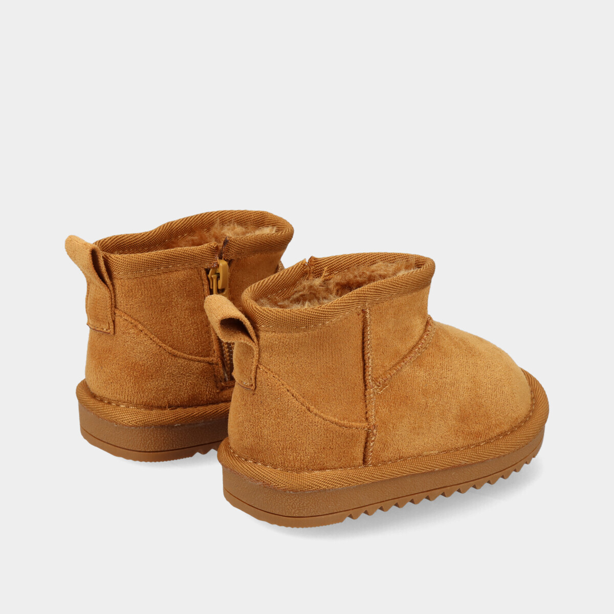 Botim em camel para menina, com interior em pelo quente fecho lateral e sola flexível, perfeito para um look de inverno confortável e prático.